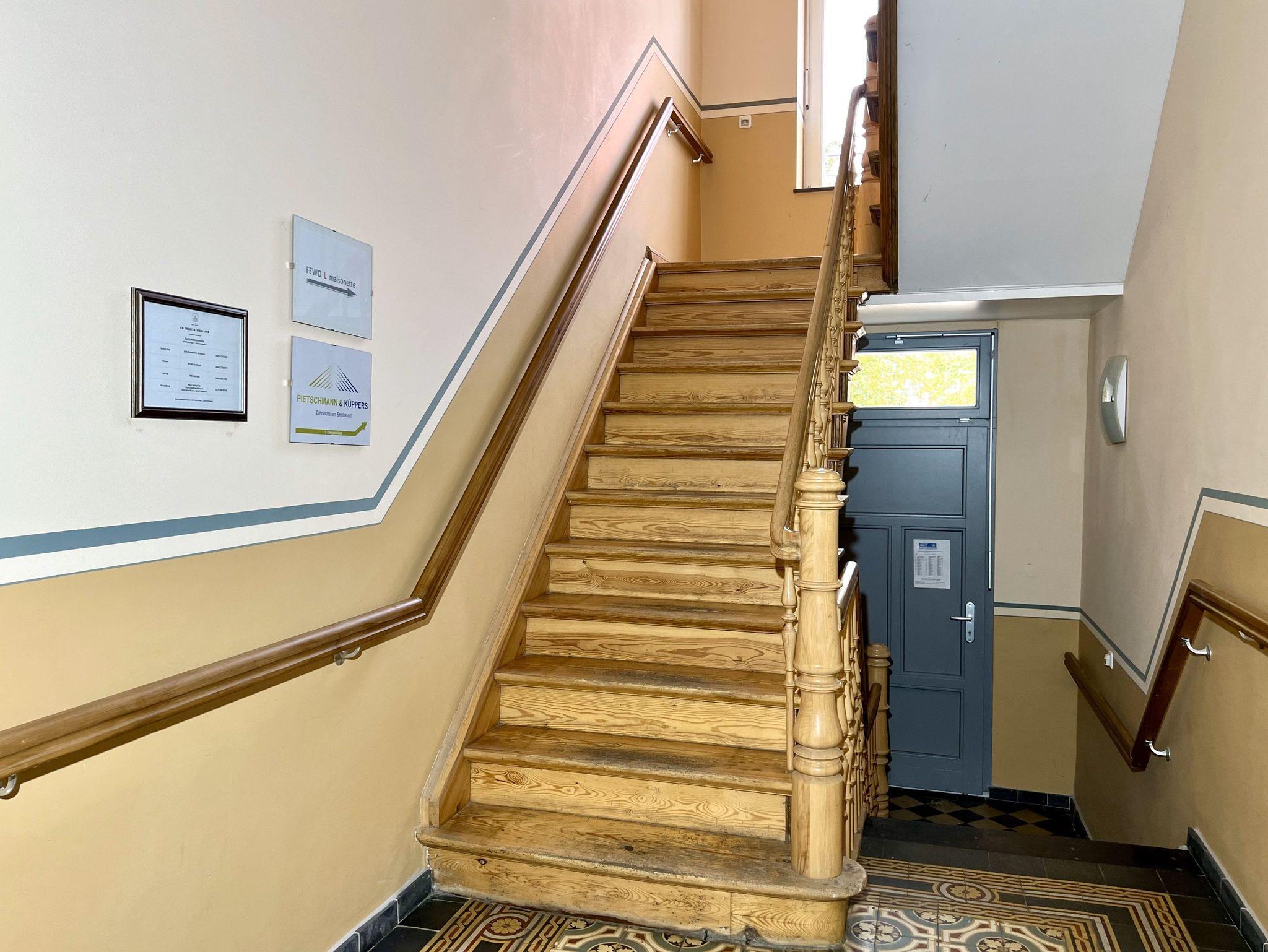 Das modern eingerichtete, markante Jugendstil-Haus liegt auf der Altstadtinsel und am Strelasund, umgeben vom frisch renovierten Theater, vom Kniepertor und von der mittelalterlichen Stadtmauer.