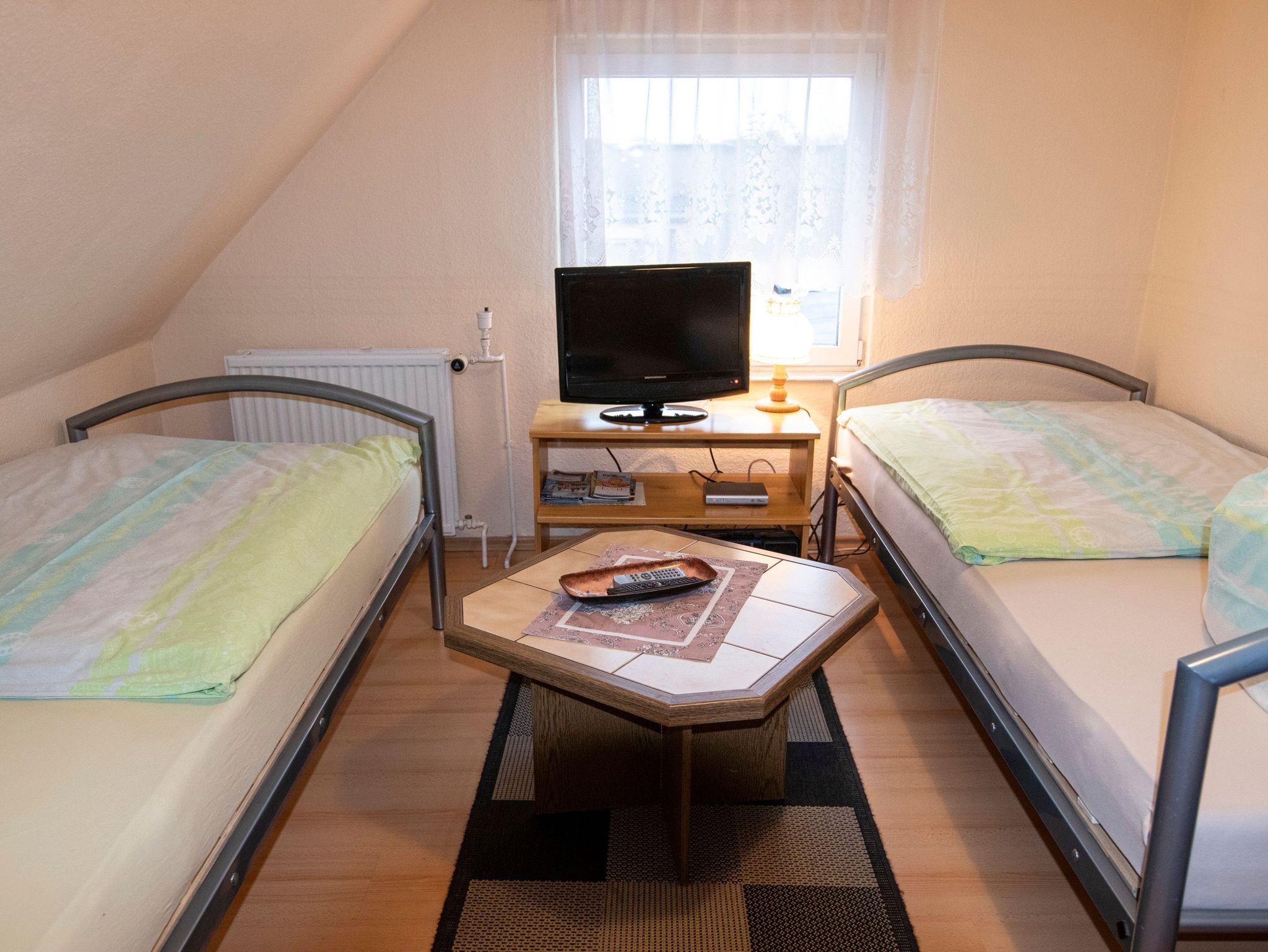 Es stehen eine kleine 1-Raum-Maisonettewohnung und eine 2-Raum-Ferienwohnung zur Verfügung. Im Garten gibt es eine sonnige Sitzecke mit Grillmöglichkeit und Hollywoodschaukel.