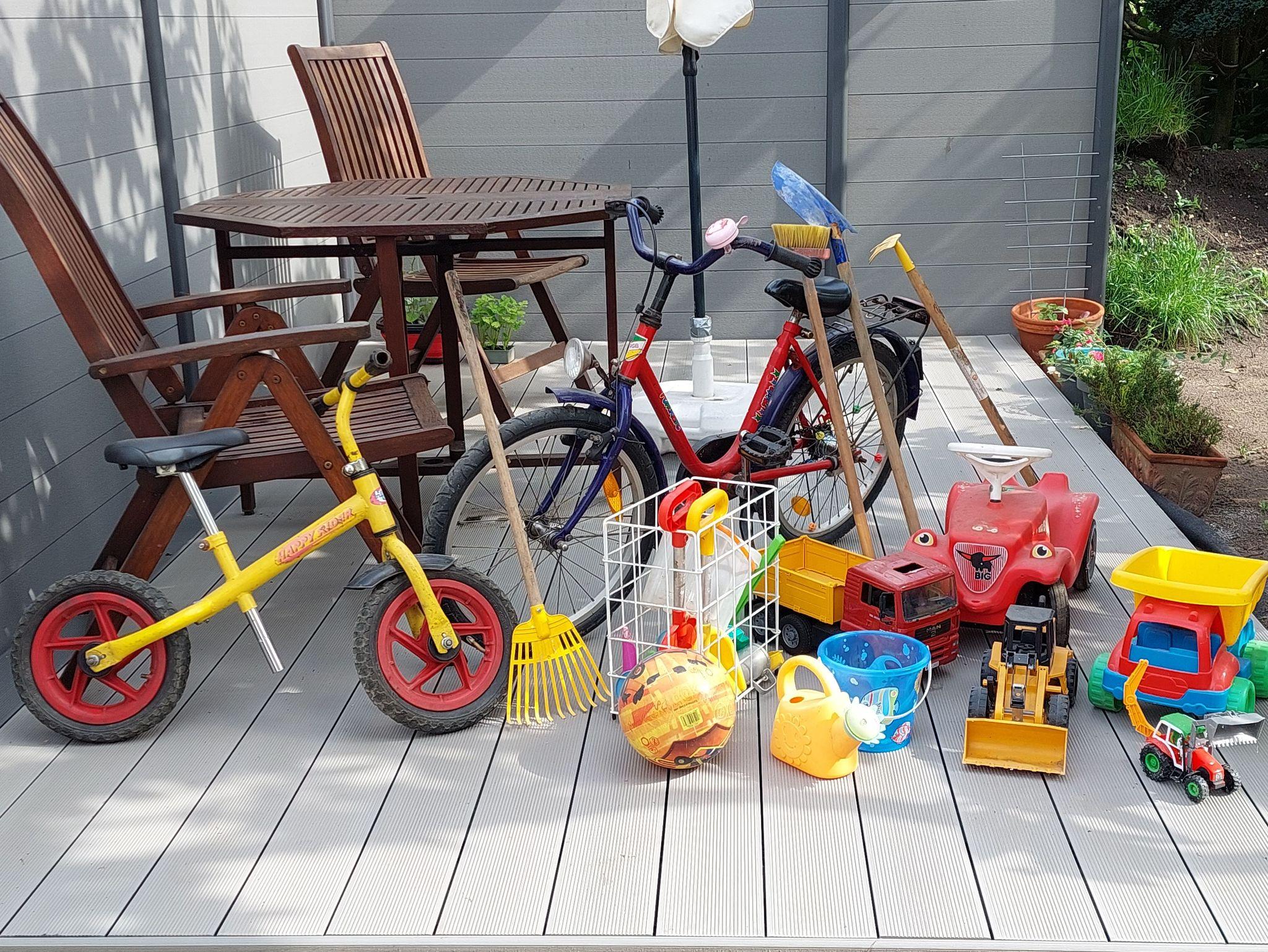 • Kinderbett, Hochstuhl, Babyphone, Tritt, WC-Kindersitz und ausreichend Spielzeug für drinnen und draußen vorhanden