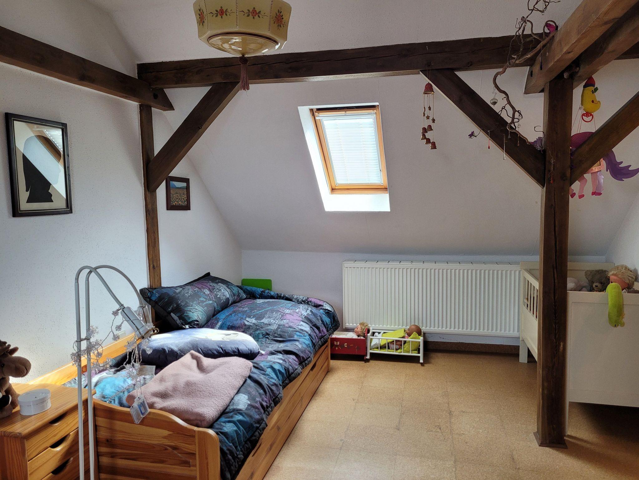 • 1.Schlafraum in der 1. Etage mit Doppelbett (Breite 1,40 m), 2.Schlafraum im Dachgescoss mit einem Einzelbett und einem Mansardenbett (2. Bett ist ausziehbar) - Breite je 0,90m