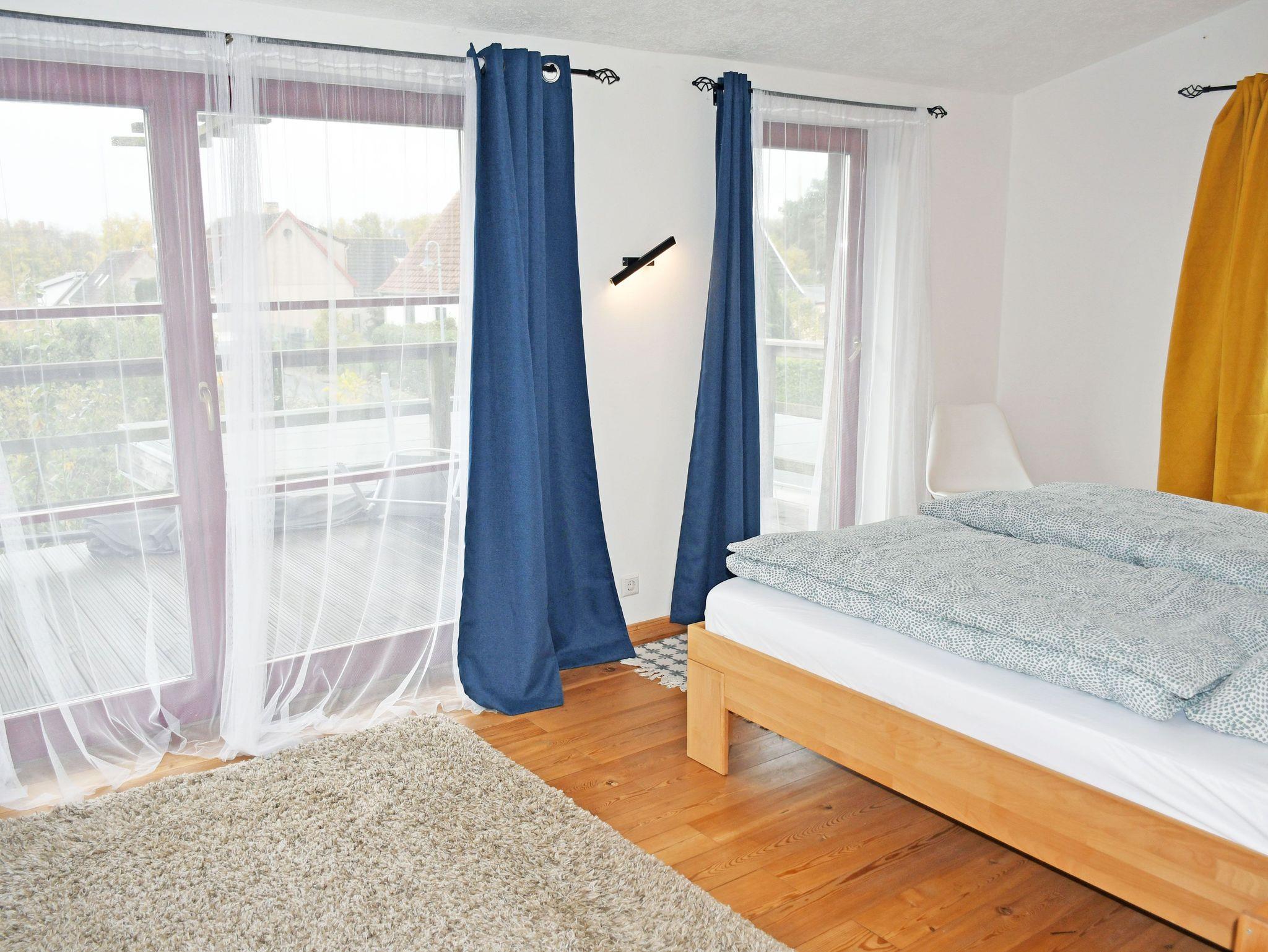 Sie befindet sich mit separatem Eingang im Obergeschoss eines Wohnhauses, das nur ca. 600 m vom Strelasund, einem Meeresarm der Ostsee, entfernt liegt. Von hier aus können Sie die vorbeiziehenden Segelboote beobachten, die frische Meeresluft genießen und einfach die Seele baumeln lassen.