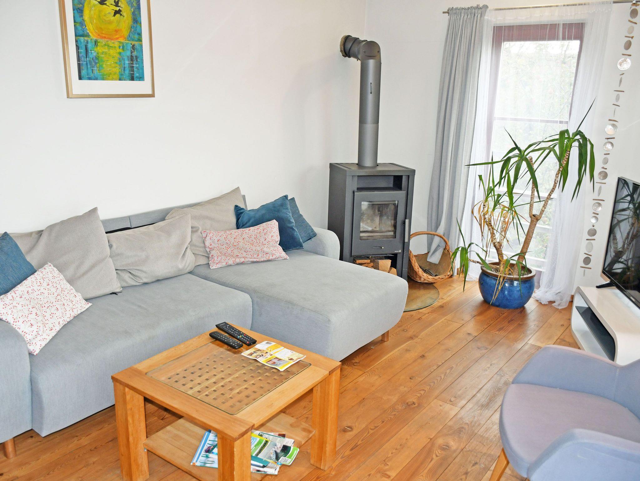 Sie ist ca. 75 qm groß, hat Platz für maximal 4 Erwachsene und zwei Kinder bis 3 J. im Kinderreisebett. Sie wurde modern und liebevoll eingerichtet. Im Wohnraum befinden sich eine bequeme Sitzcouch mit Tisch und ein modernes Flachbild-TV-Gerät. Ein Kamin sorgt auch in der kühleren Jahreszeit für Behaglichkeit.