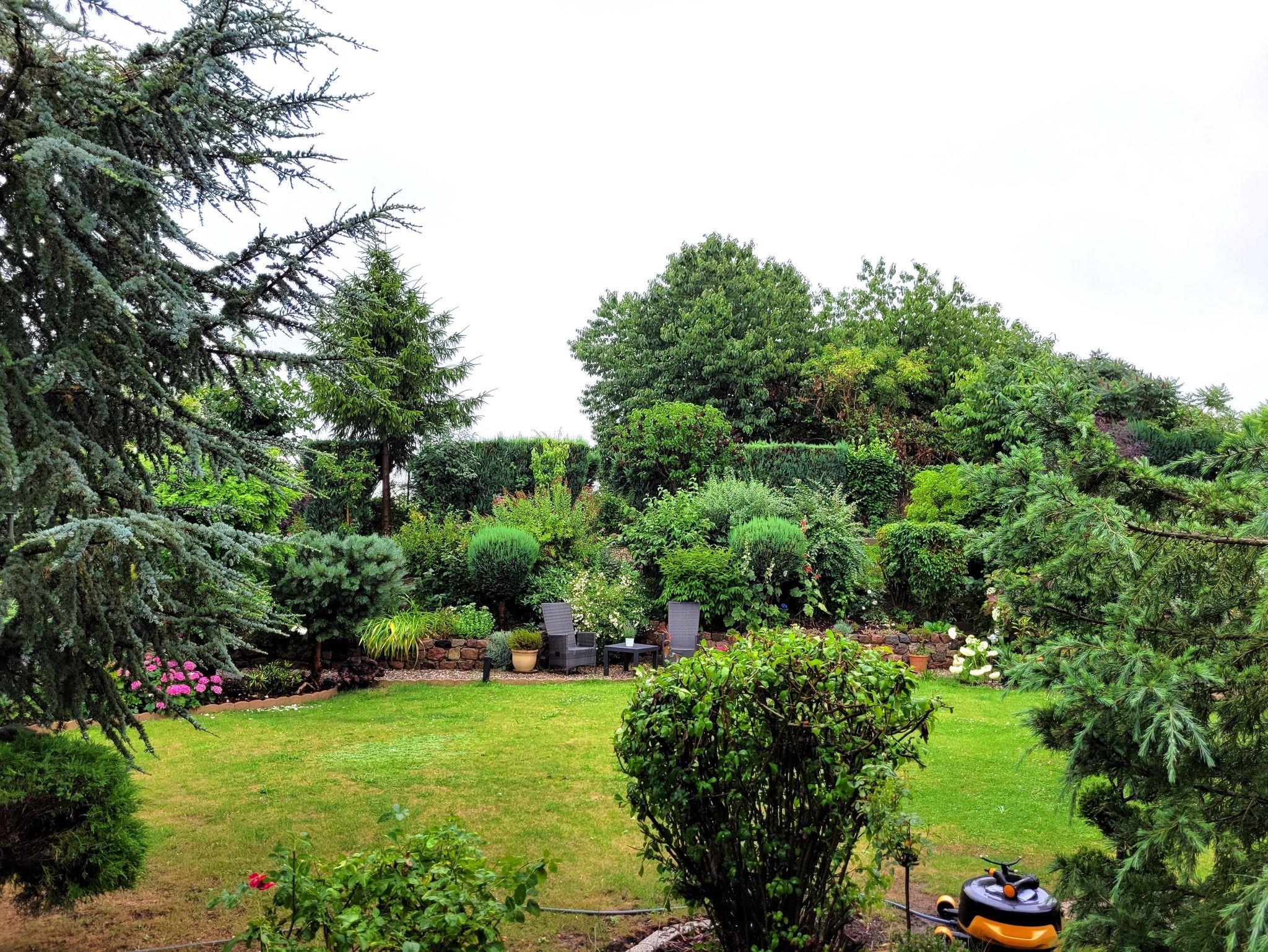 Genießen Sie die frische Luft und einen atemberaubenden Blick auf den gepflegten Garten. Die möblierte Terrasse bietet den perfekten Platz für ein Frühstück im Freien oder zum Entspannen nach einem langen Tag.