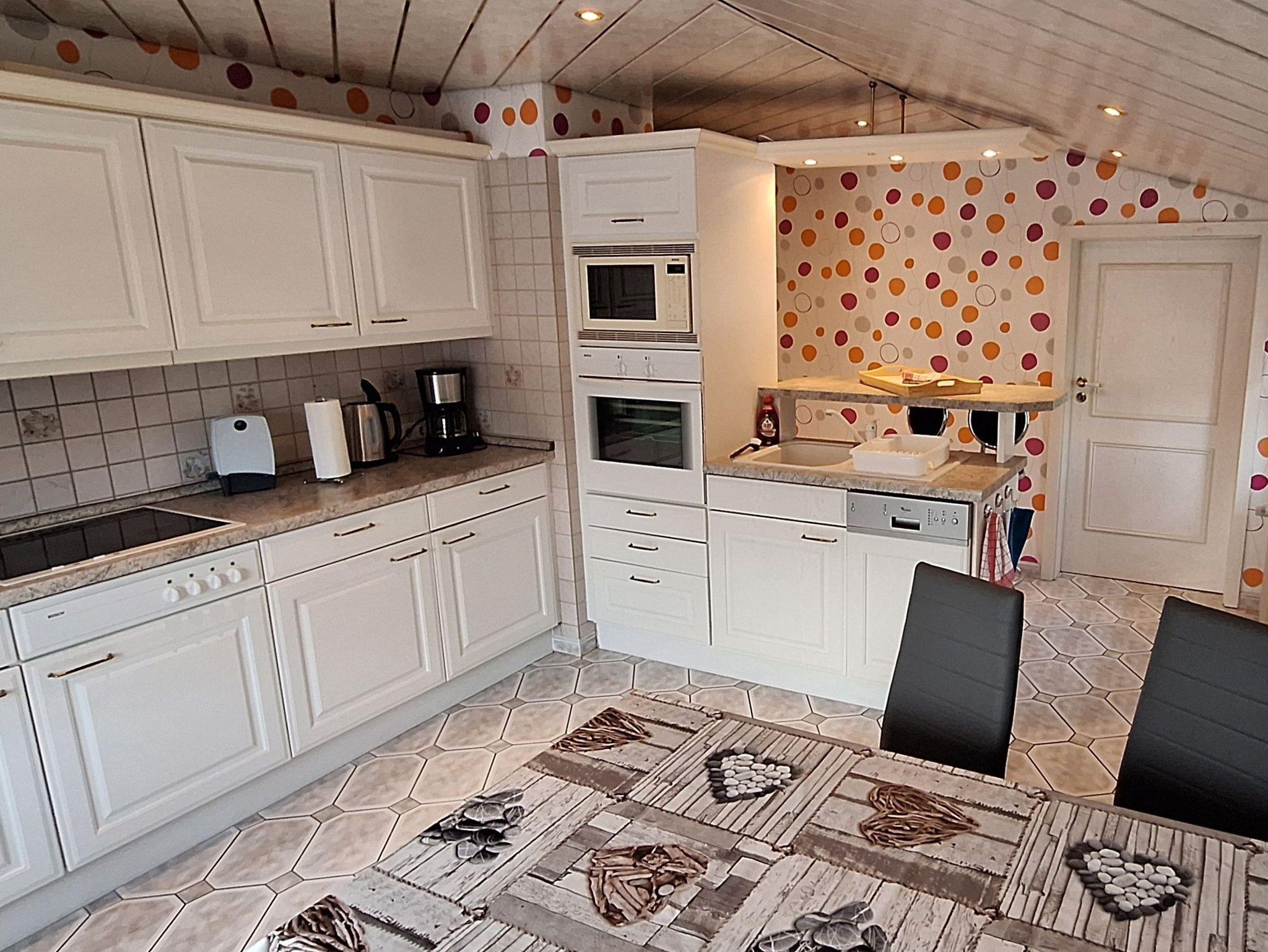 Auf 66 qm² Wohnfläche stehen Ihnen für erholsame Tage im Erdgeschoss ein Bad mit ebenerdiger Dusche; ein Schlafzimmer mit einem Boxspringbett (1,80 m breit), im Obergeschoss eine komplett eingerichtete Küche sowie ein Wohnzimmer (Schlafcouch vorhanden) zur Verfügung.