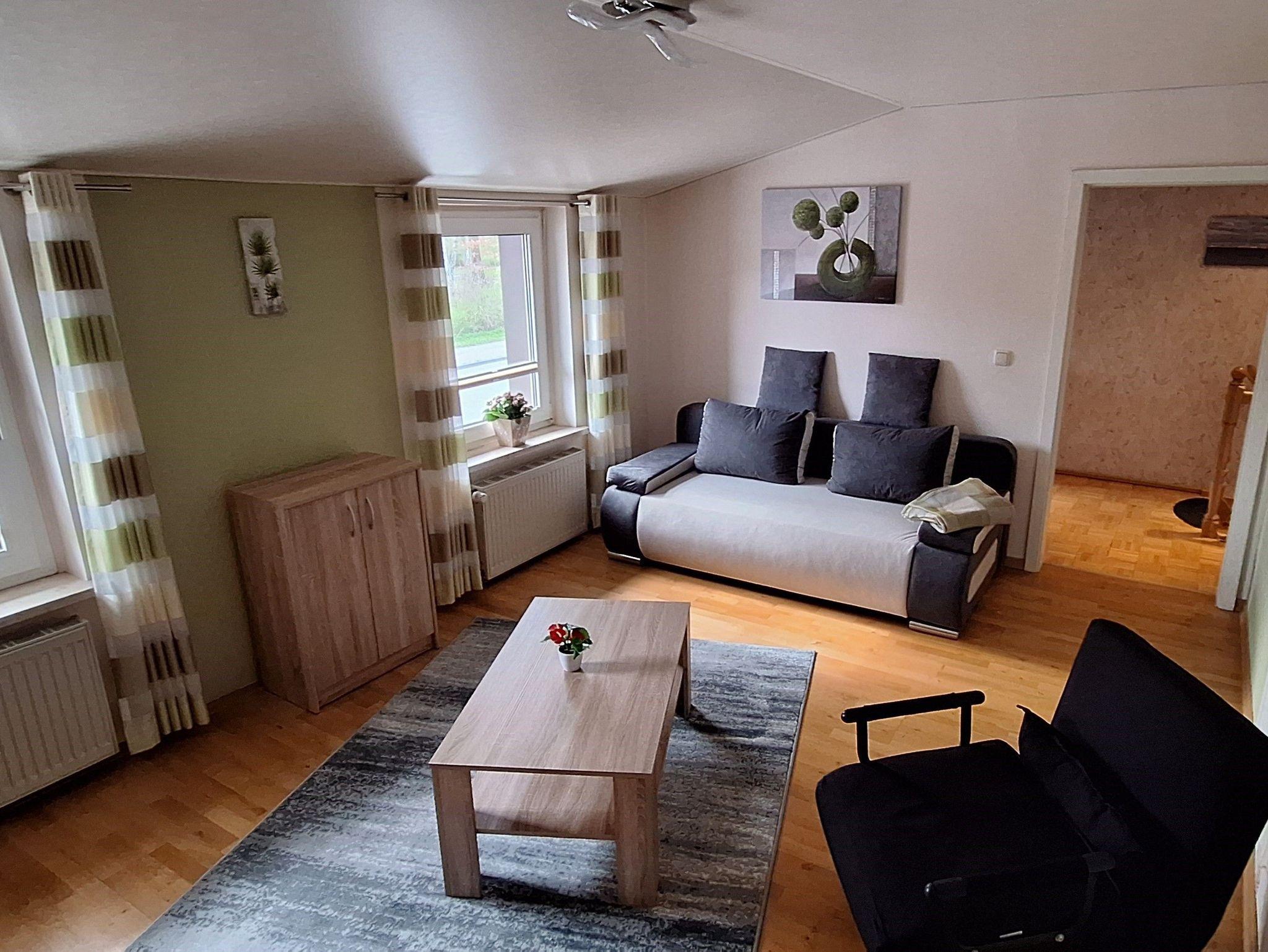 Die 2-Raum Maisonette-Ferienwohnung (2 Etagen mit Küche, Schlafzimmer, Wohnzimmer, Bad, Flur) befindet sich in einem privat genutzten 3-Familienhaus.