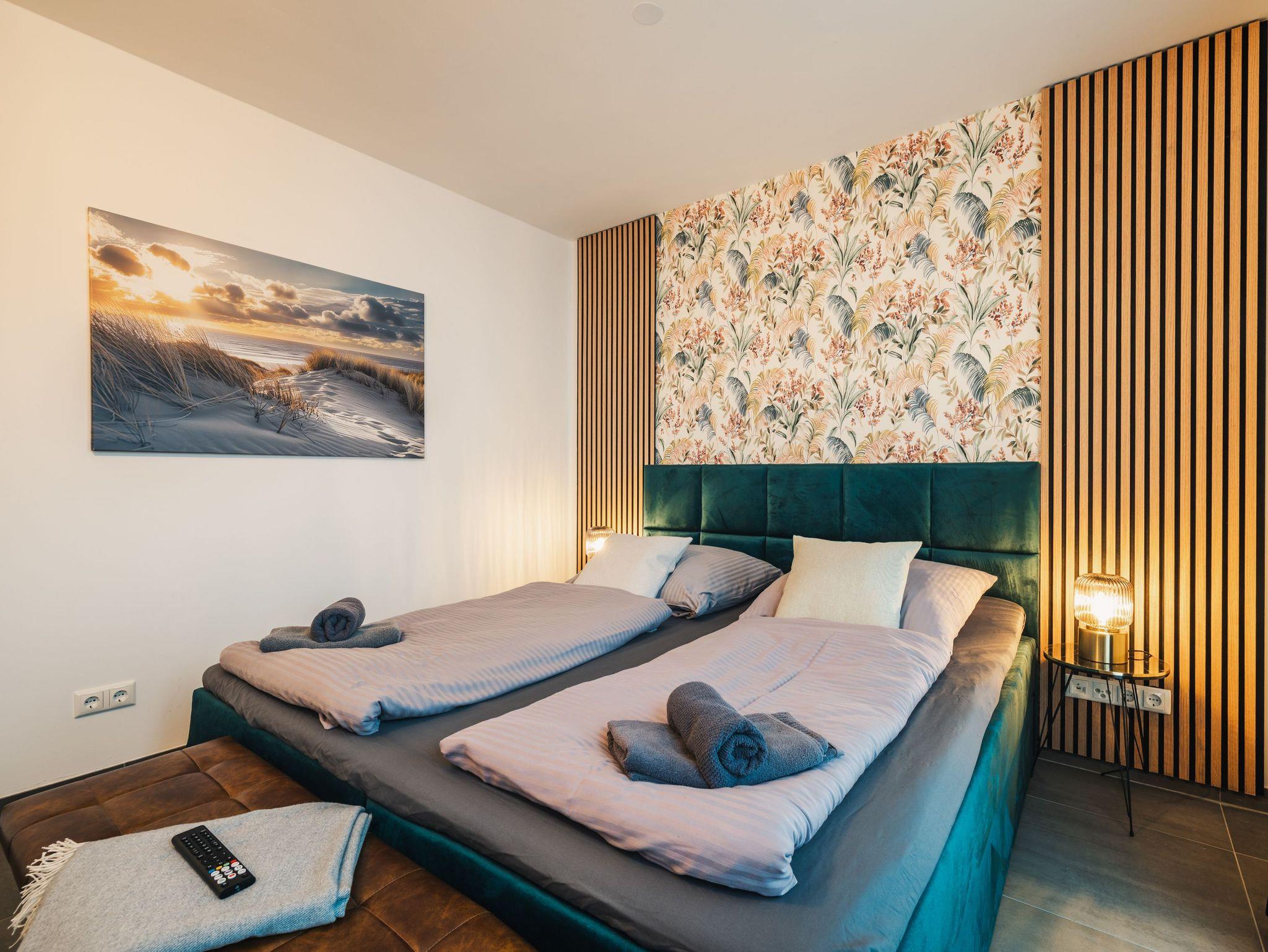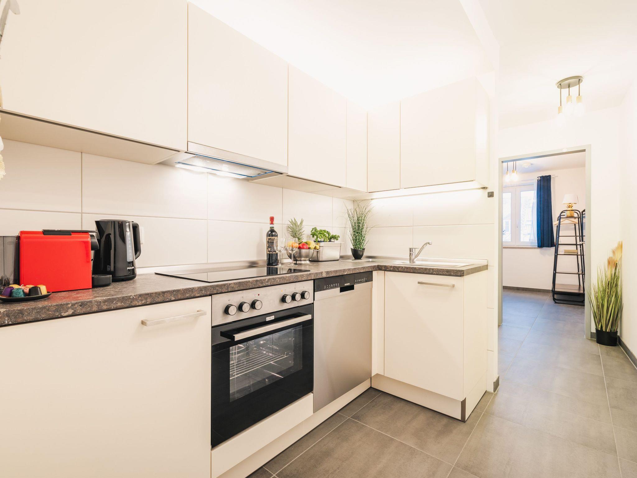 Das Altstadt-Studio 8 erstreckt sich über zwei Etagen, die durch einen privaten Hausflur verbunden sind und bietet mit 100 m² viel Platz für bis zu 8 Personen. Zwei Schlafzimmer mit bequemen Doppelbetten und zwei moderne Bäder mit Dusche sorgen für zusätzlichen Komfort. Der Wohnbereich mit offener Küche lädt zu gemeinsamen Mahlzeiten oder entspannten Abenden ein.