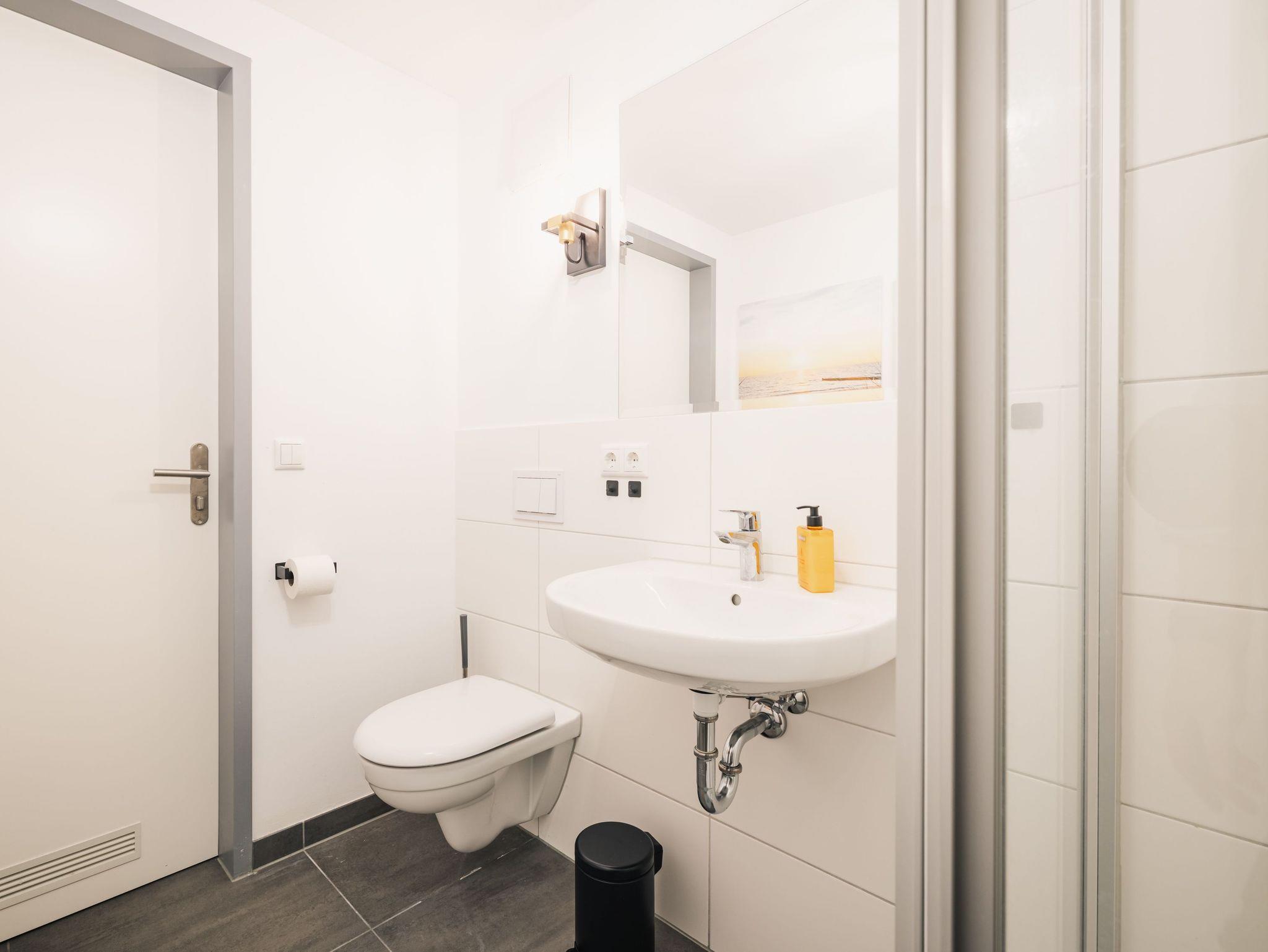 Das moderne Bad ist mit Dusche und WC ausgestattet. Ein überdachter Stellplatz auf dem Hof steht dir ebenfalls gegen Gebühr zur Verfügung und rundet den komfortablen Aufenthalt ab. WLAN ist in der Ferienwohnung selbstverständlich verfügbar, für entspannte Abende, Streaming oder das Planen der nächsten Entdeckungstour durch Stralsund.