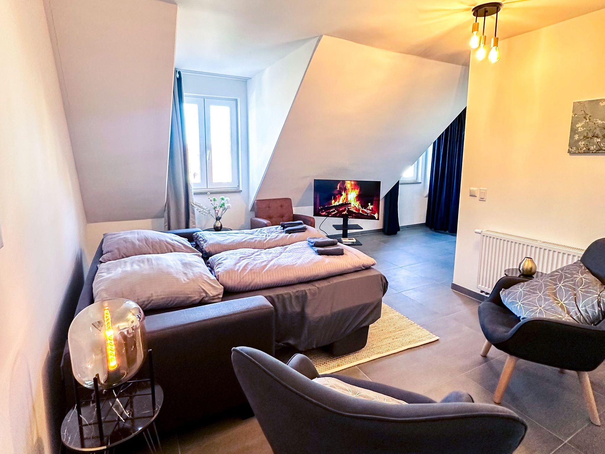 Das Altstadt-Studio 9 ist über einen Aufzug bequem im ersten Stock zu erreichen. Es eignet sich mit seinen beiden Doppelbetten ideal für 4 Personen.