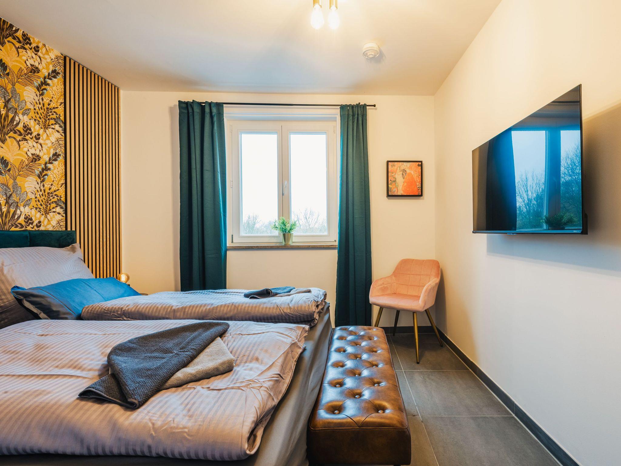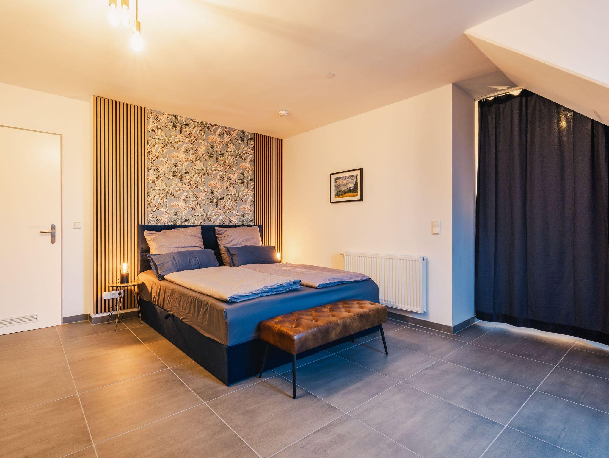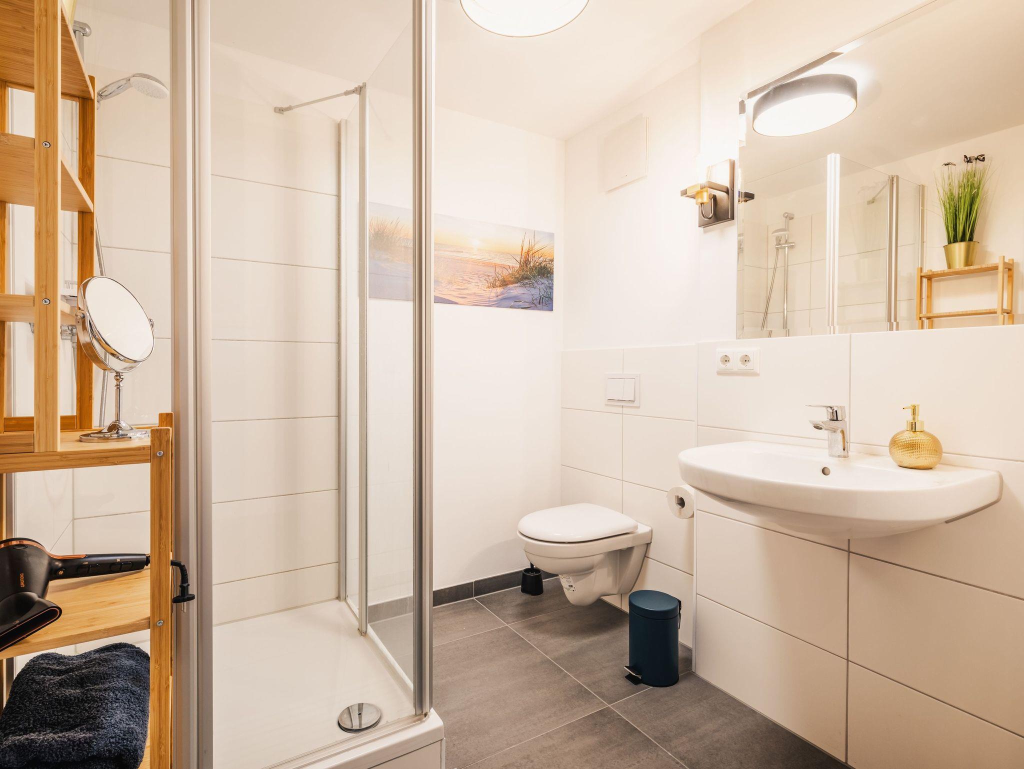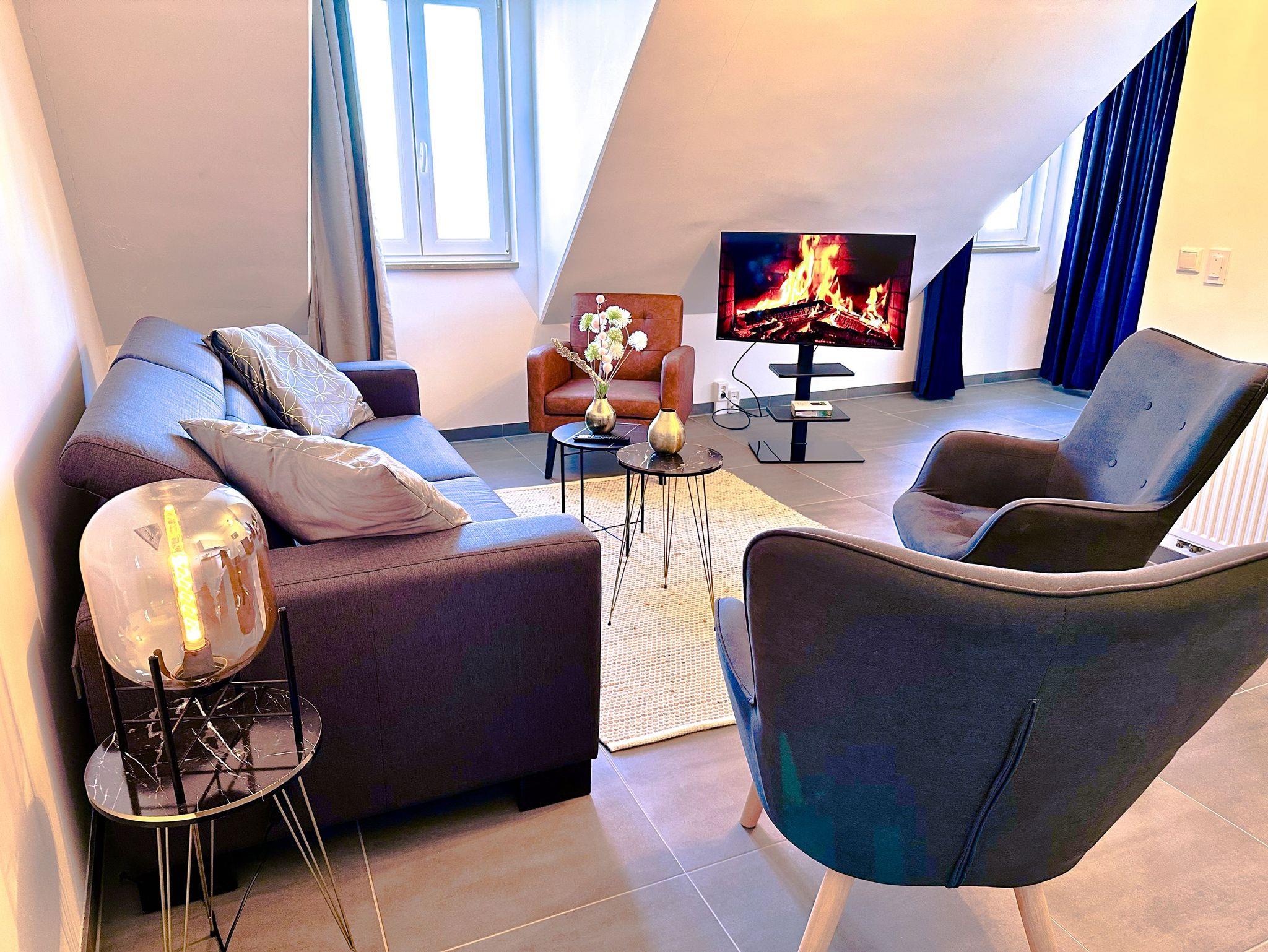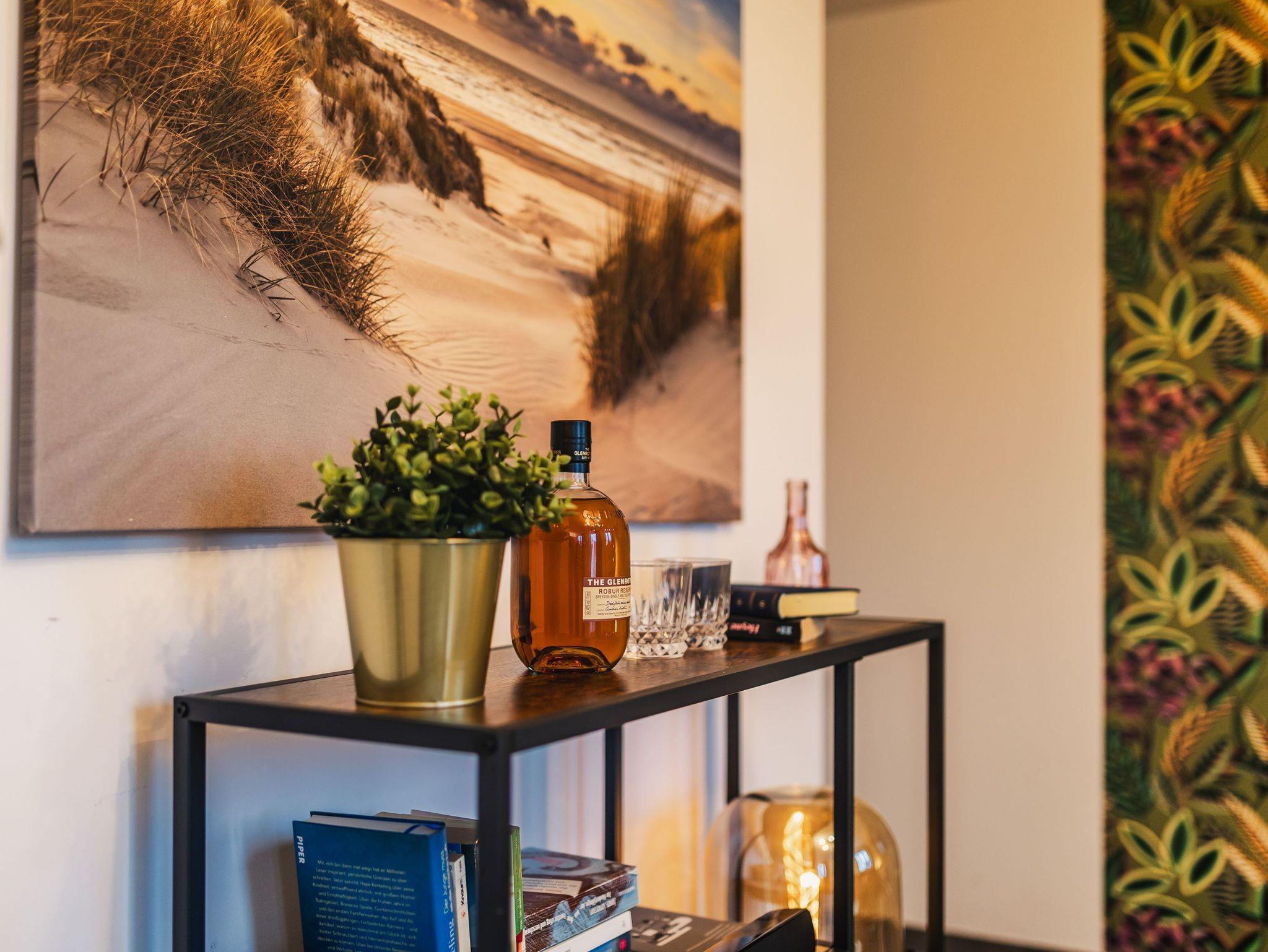 Das Altstadt-Studio 8 erstreckt sich über zwei Etagen, die durch einen privaten Hausflur verbunden sind und bietet mit 100 m² viel Platz für bis zu 8 Personen. Zwei Schlafzimmer mit bequemen Doppelbetten und zwei moderne Bäder mit Dusche sorgen für zusätzlichen Komfort. Der Wohnbereich mit offener Küche lädt zu gemeinsamen Mahlzeiten oder entspannten Abenden ein.