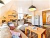 Die Ferienwohnung 4 liegt im 2.OG. Die Wohnung besteht aus einem großen Essbereich mit offener Küche, dem Bad sowie über 2 Schlafzimmer mit Doppelbetten und 1 Couch. Über eine innenliegende Holztreppe kommt man in das dritte Schlafzimmer im DG, welches zusätzlich ebenfalls über 1 Couch verfügt..