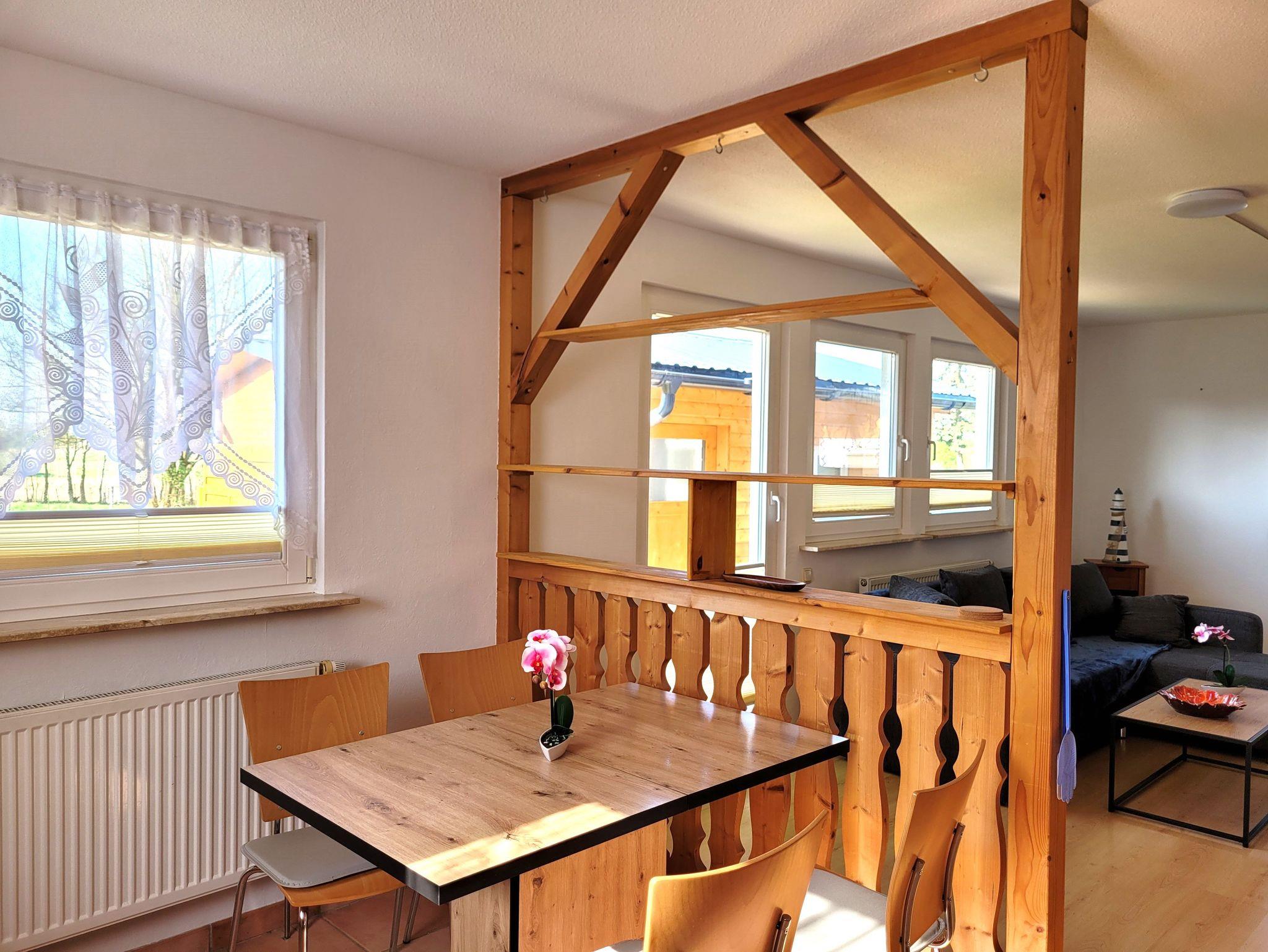 Unser Kleines Ferienhaus ist 63 qm² und besteht aus einem Schlafraum mit einem Doppelbett (1,60 Meter Breite), einem Wohnraum mit Kamin und einer Schlafcouch für 2 Personen, einer offenen Küche im Wohnbereich und einem Badezimmer mit ebenerdiger Dusche.
