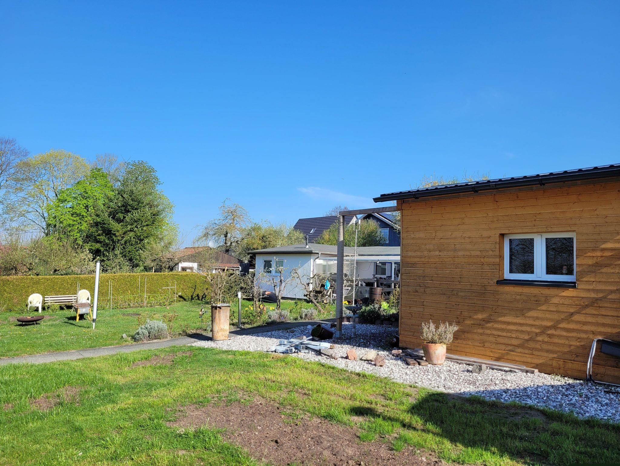 Jedes Ferienhaus hat eine eigene Terrasse. Der Garten steht zur gemeinschaftlichen Nutzung mit den Gästen des anderen Ferienhauses zur Verfügung.