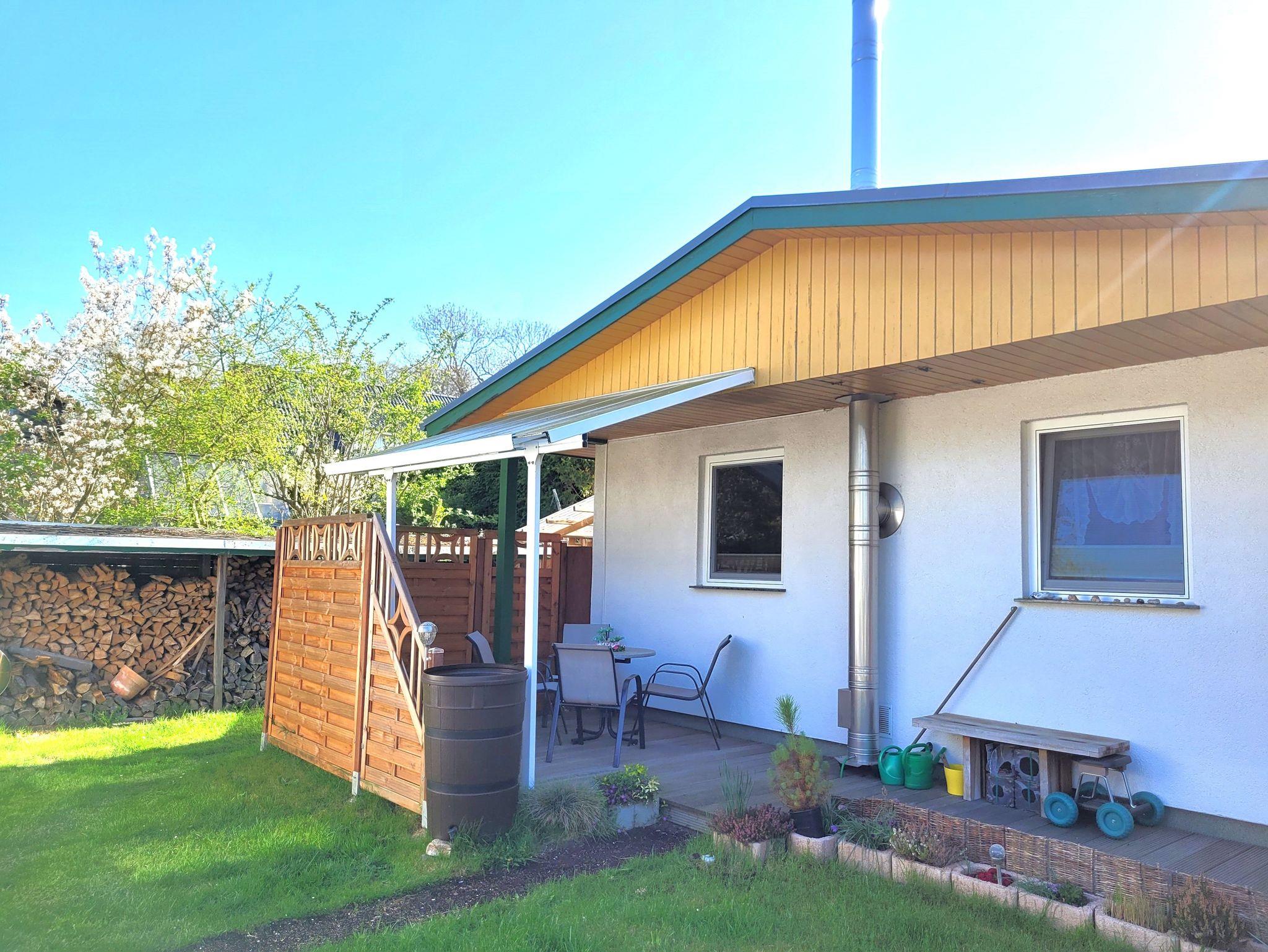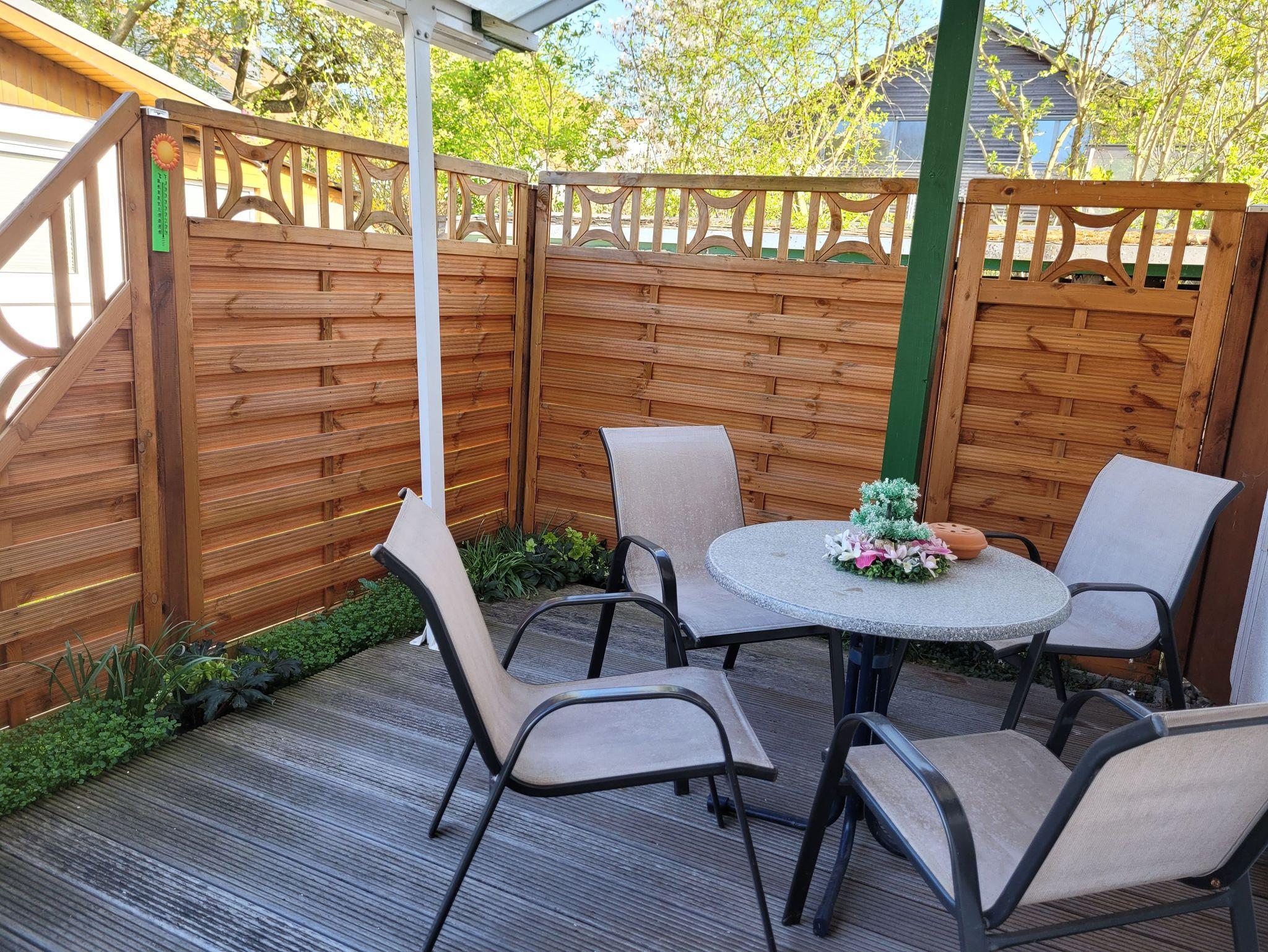 Zum Ferienhaus gehört eine Terrasse zum Verweilen und Entspannen. Vom Wohnzimmer aus können Sie aus dem Haus gehen, die Terrasse befindet sich um die Ecke.