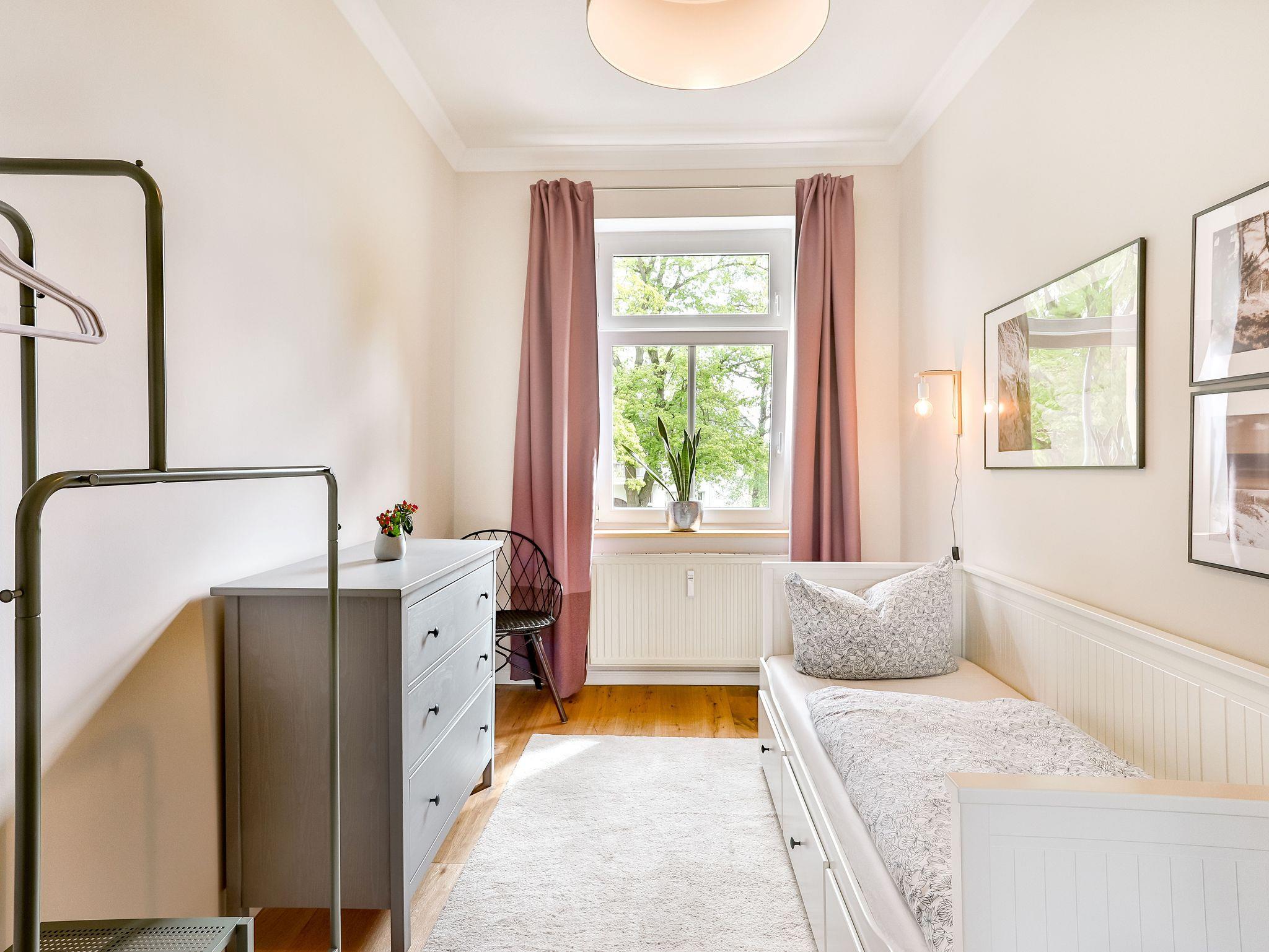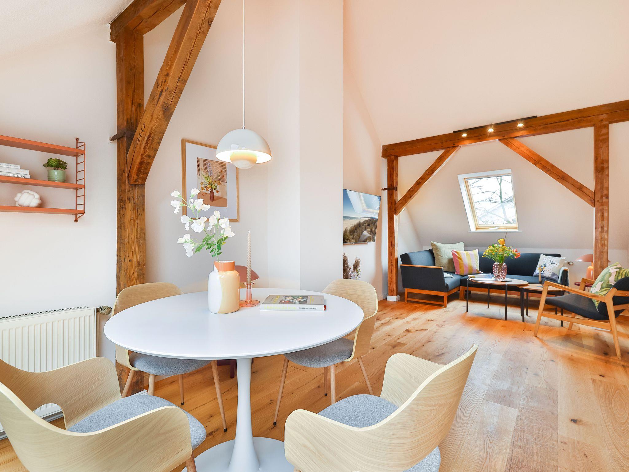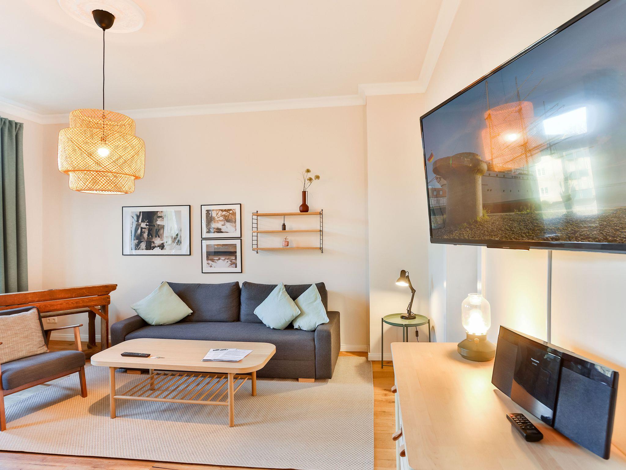 Einkaufsmöglichkeiten (Supermarkt) und Bushaltestelle sind 2 Gehminuten entfernt. Bis in das Zentrum (Markt) benötigt man 5 Gehminuten. Die Wohnung liegen im 1.OG und 2.OG eines komplett sanierten Apartmenthauses und verfügen über einen großen Garten im Hof. Die Gemeinschaftsterrasse und die Rasenflächen dürfen gerne von den Gästen genutzt werden.
