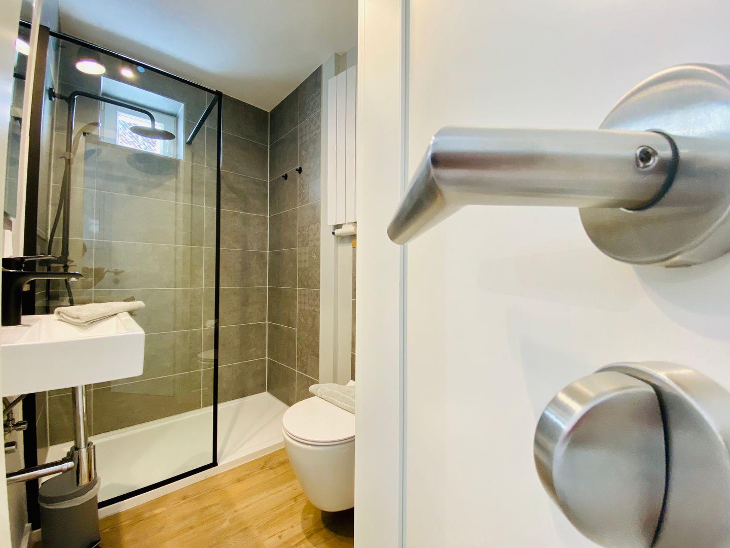 Das schicke Badezimmer verfügt neben ebenerdiger Regendusche, Waschtisch und WC über Föhn und Kosmetikspiegel. Im Wohn-/Schlafzimmer befinden sich zwei Kleiderschränke mit Kleiderstange und genügend Stauraum für das Gepäck von 2 Personen. Nachttischlampen und ein großer TV sind im Wohn-/Schlafzimmer neben einem komfortablen Doppelbett vorhanden. Bücher, kostenfreies Internet, ein großer Flachbild-TV, Sofadecke und tolle Dekoration sorgen für einen angenehmen Aufenthalt. Die Küche besticht mit einer sehr guten Ausstattung. Neben Nespresso-Kapselmaschine, Backofen, Geschirrspüler, 4-Feld-Induktionskochfeld, Kühlschrank mit Gefrierfach sind auch weitere Kleingeräte wie Wasserkocher, Toaster und Kaffeefiltermaschine vorhanden. Für einen tollen Kochabend oder ein entspanntes Frühstück vor einem schönen Tagesausflug ist alles vorhanden.