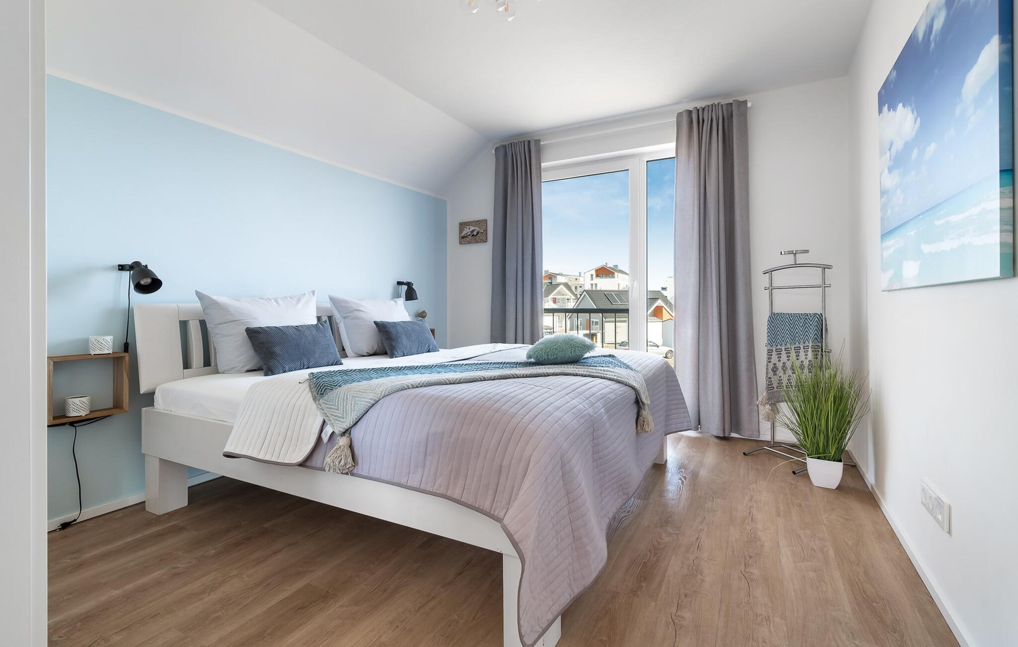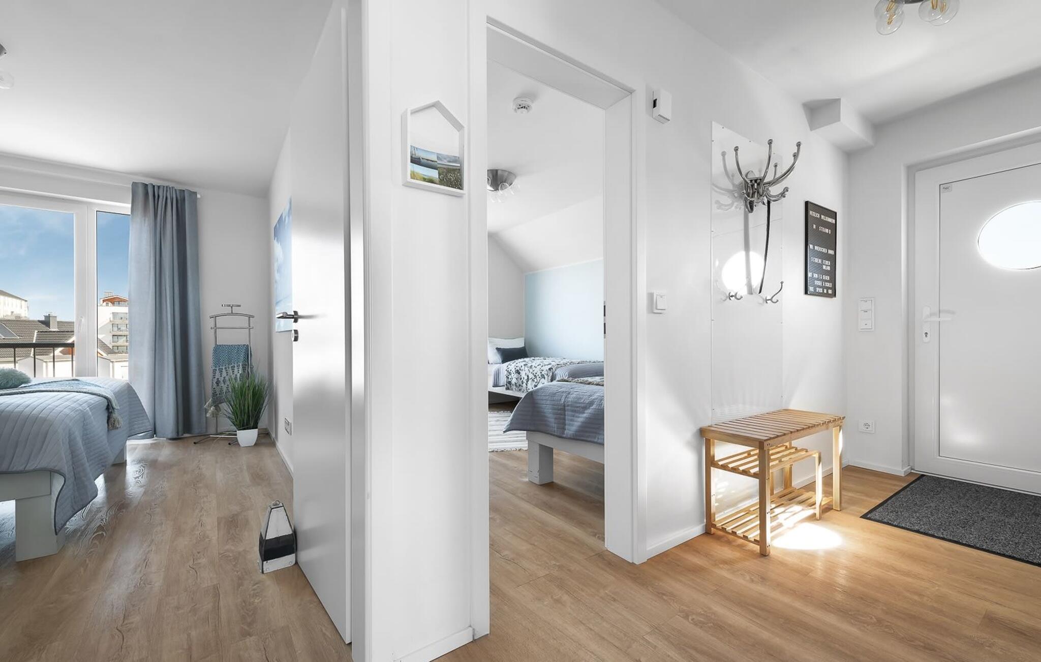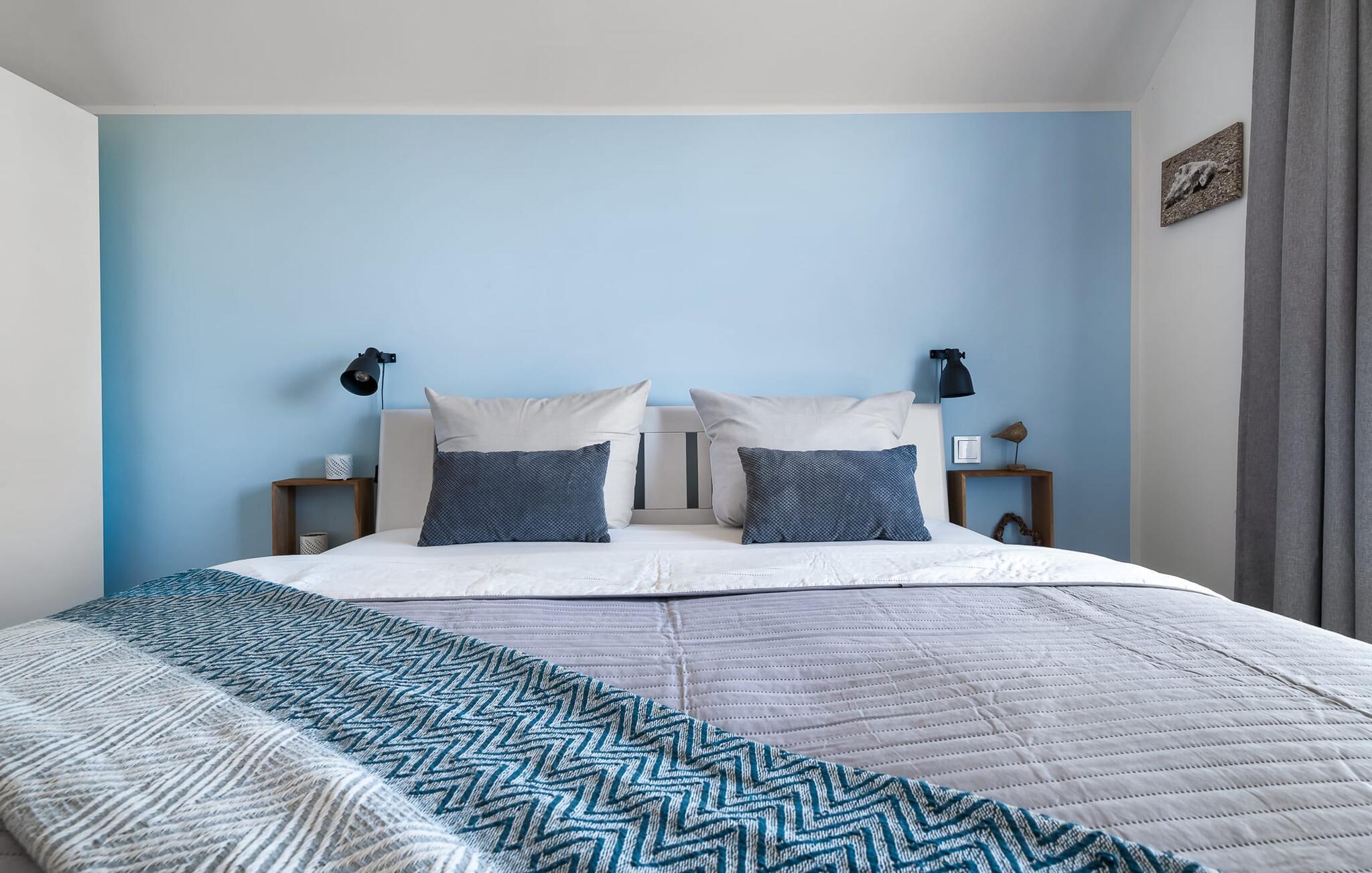 To komfortable soveværelser lægger op til at nyde afslappende nætter. Til de små er der en dejlig tremmeseng med en praktisk puslemåtte. Der er også en sengehest til rådighed for at forhindre børn i at falde ud. Der er også en højstol, hvilket gør lejligheden perfekt til familier. Det lille, men stilfulde klapbord er en anden praktisk funktion, der giver jer mulighed for nemt at omdanne det andet soveværelse til et strandkontor med udsigt over havnen.