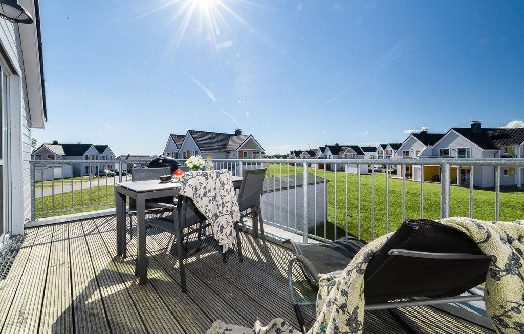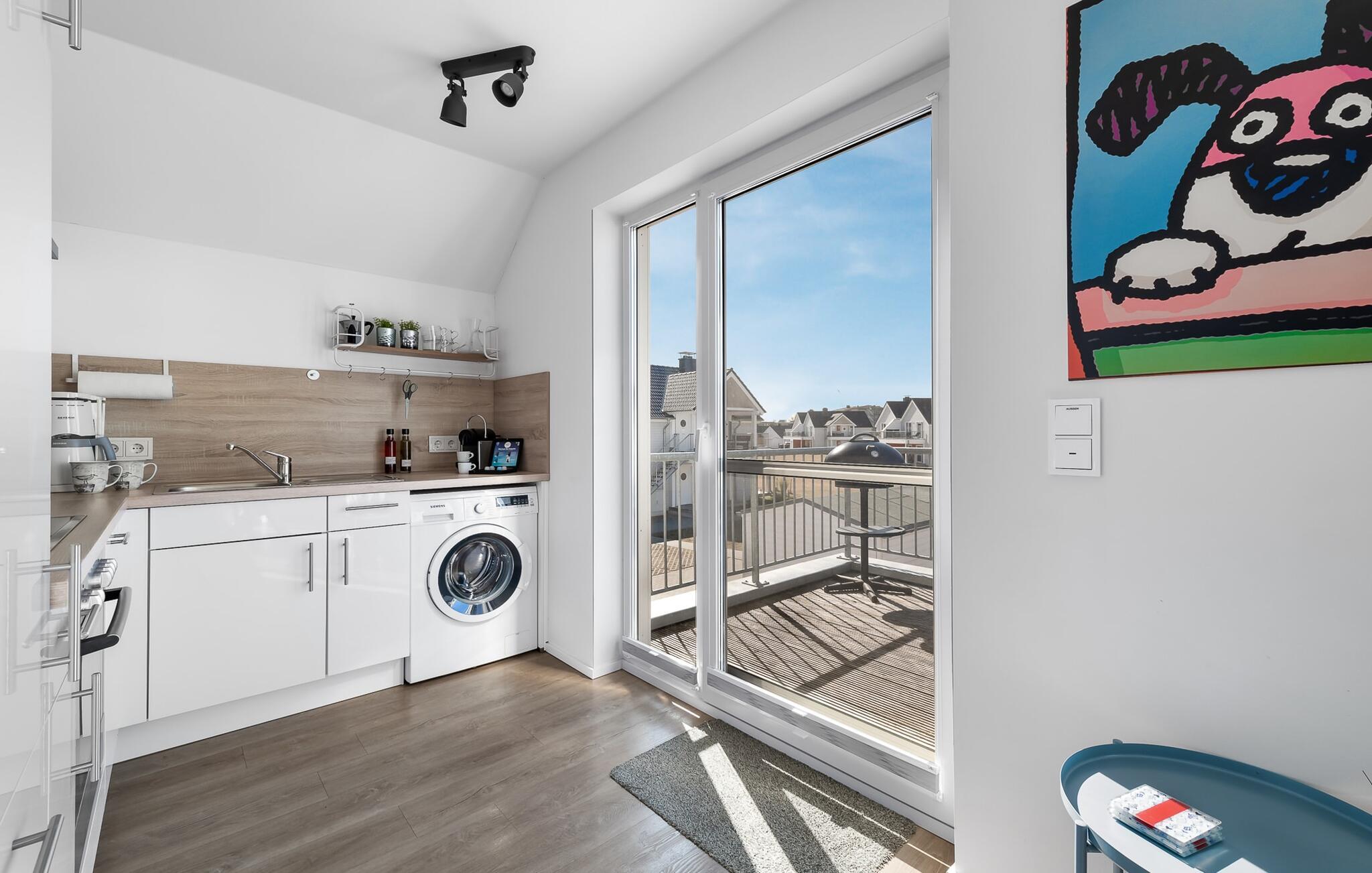 Wellness-elskere vil nyde den infrarøde sauna eller det afslappende spabad efter en slentretur langs stranden. På ferien er der tid til kreativ madlavning, og det fuldt udstyrede moderne køkken lader intet tilbage at ønske. Spiseområdet åbner direkte ud til den rummelige terrasse, perfekt til afslapning og at lytte til mågernes susen i Østersøbrisen. En anden overdækket terrasse ligger nær indgangen.