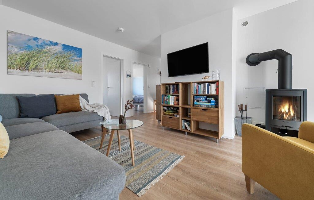 Høj kvalitet. På de triste nordiske dage har Strand 11 gulvvarme. Komfort er garanteret i denne velindrettede ferielejlighed, uanset årstiden. To terrasser med panoramaudsigt gør feriedrømme til virkelighed, mens den rummelige græsplæne lige ved siden af ??huset lægger op til at lege, boltre jer og slappe af. En strandvogn og et udvalg af strandlegetøj er til rådighed for nem adgang til stranden, og efter en saunatur kan I nyde en grill om aftenen.