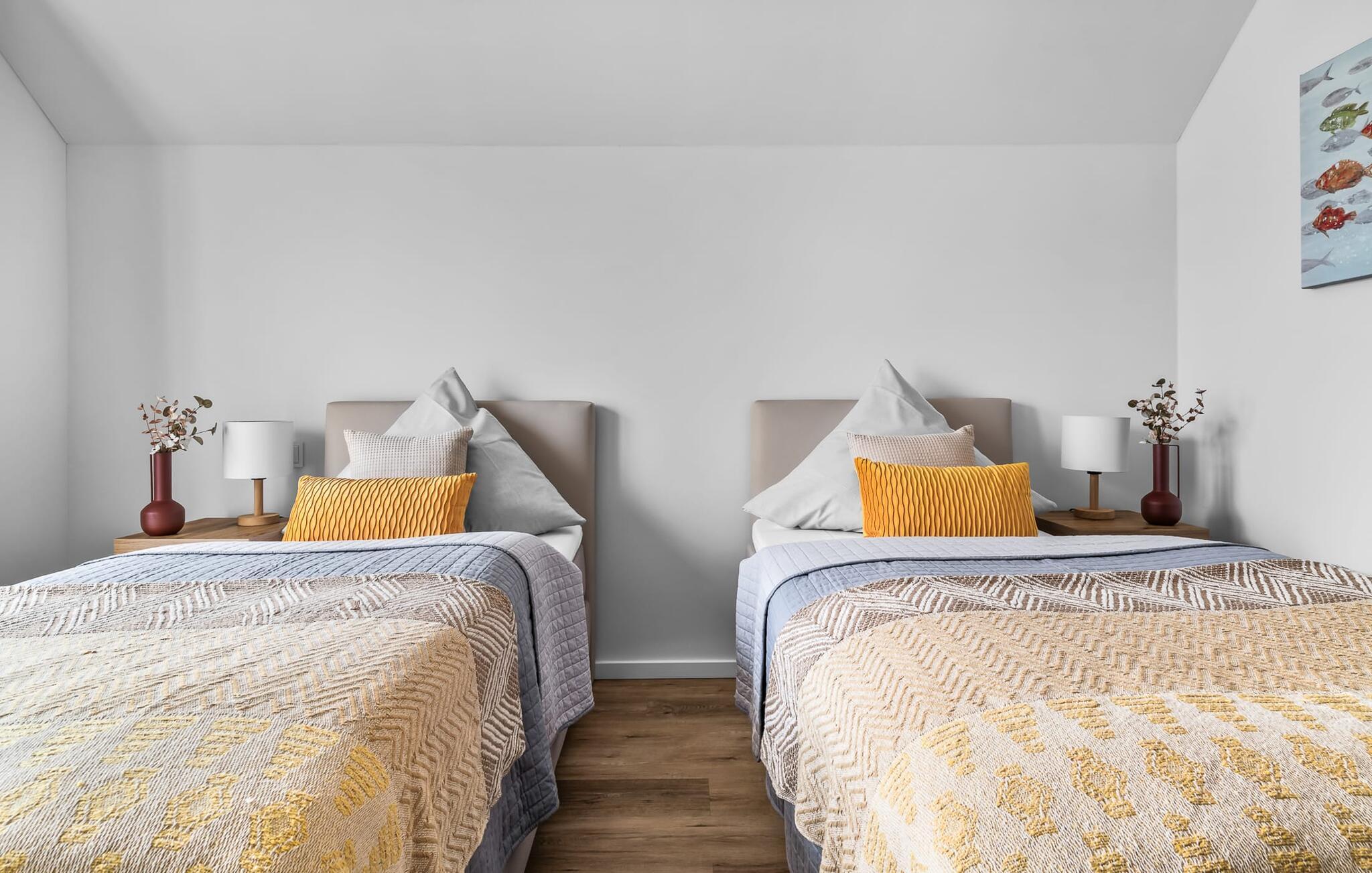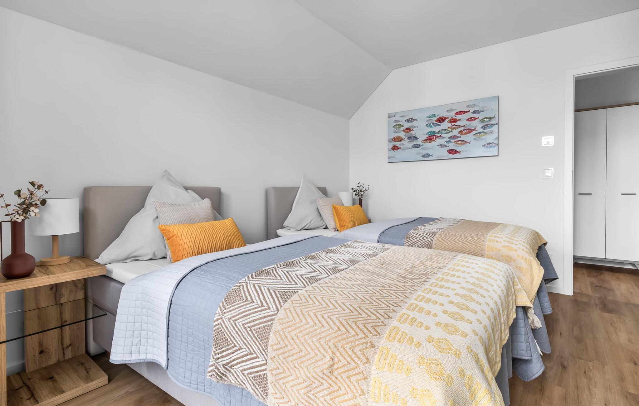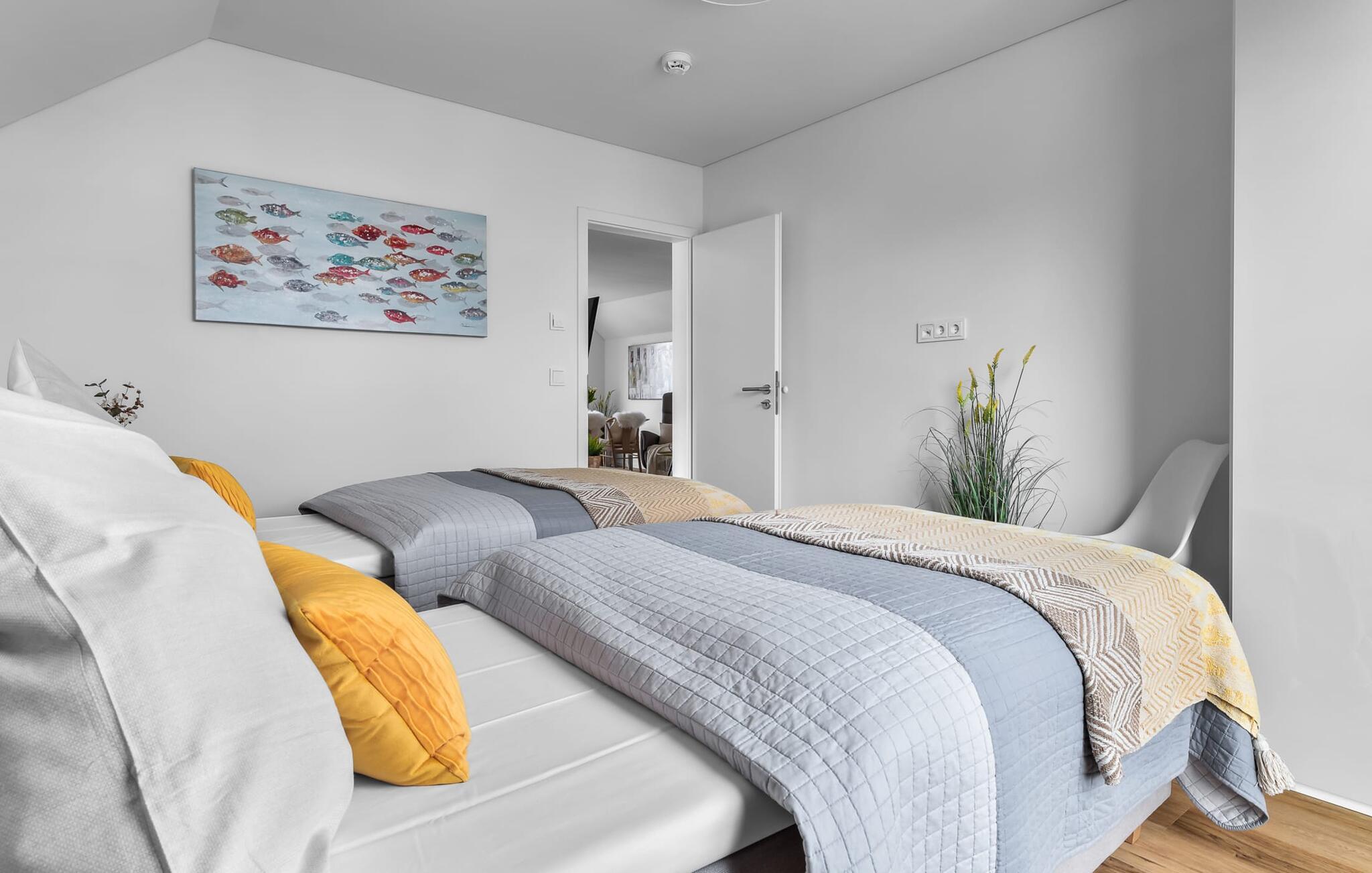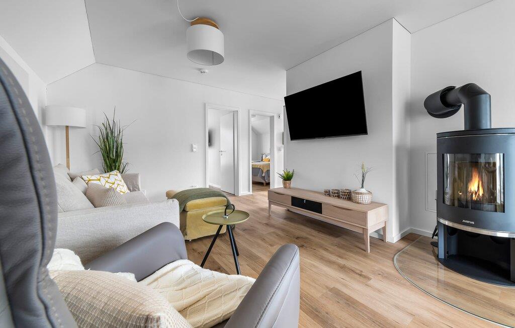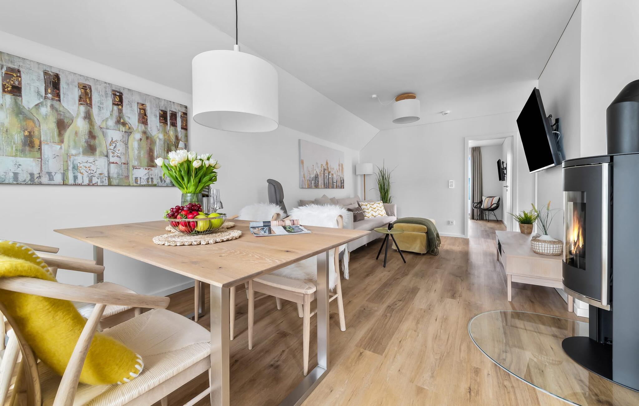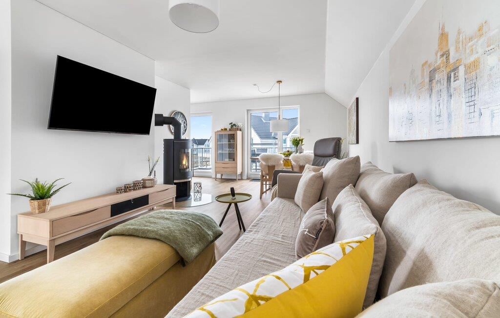 Strandoasen, hvor feriedrømme laver bølger og hverdagen er nedsænket i sjovens bølger! Strandoasen inviterer jer til en uforglemmelig ferie ved Østersøen og Slien. Denne rummelige ferielejlighed på første sal kan rumme op til 4 personer og imponerer med sin moderne og skandinaviske indretning. Indkvarteringen er ideelt beliggende, kun få minutters gang fra Weidefelders sandstrand, som er et attraktivt rejsemål på alle tider af året. Den indbydende opholdsstue byder velkommen med gulv til loft vinduer, der skaber en lys og venlig atmosfære. Nyd afslappende aftener i den hyggelige sofa foran den knitrende pejs, mens I synker ned i en god bog. Fjernsynet i stuen sørger for underholdning for hele familien. Det åbne køkken er udstyret til en høj standard og får amatørkokkenes hjerter til at slå hurtigere. Her kan I tilberede kulinariske delikatesser og nyde måltider sammen. Når vejret er godt, venter den rummelige terrasse med havemøbler og grill på jer. Alternativt kan I tilbringe dagen på stranden, som ligger kun få minutters gang væk. En liggestol er også tilgængelig. Der er to soveværelser til rådighed for en afslappende søvn. Det første soveværelse har en komfortabel dobbeltseng med boxmadrasser og eget fjernsyn. I det andet soveværelse finder I to enkeltsenge med springmadrasser. Alle rum kan mørklægges helt takket være læg og gardiner. Badeværelsets højdepunkt er bruseren i gulvniveau og den infrarøde sauna, som sikrer afslappende øjeblikke efter en begivenhedsrig feriedag. Til faciliteterne hører også en privat parkeringsplads og et cykelskur foran huset. Vores yndlingssted: Strandoasens rummelige terrasse, som inviterer jer og jeres familie til at nyde Østersøluften og skabe minder sammen i en afslappet atmosfære. Bemærk venligst: OstseeResort Olpenitz er meget populært, og der bygges fortsat i parken. Ikke desto mindre kan I se frem til en 5-stjernet standard og et førsteklasses ophold. Byggeaktiviteterne kommer ikke til at forstyrre jer på ferien, og derfor gives der ikke yderligere afslag i prisen.