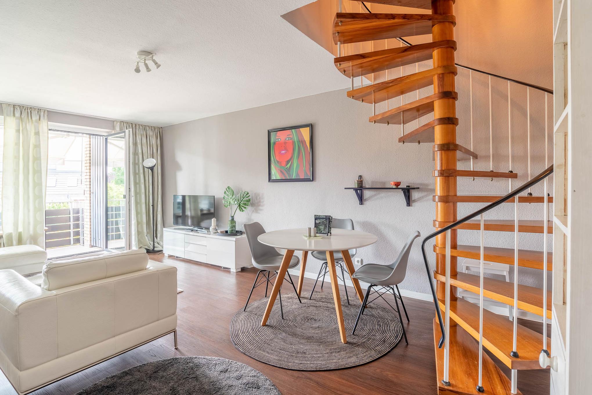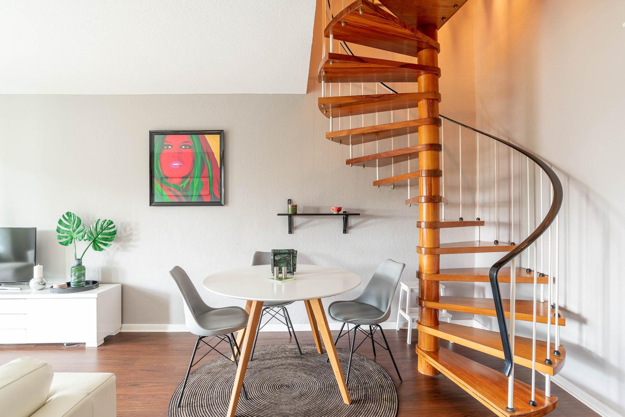 Der Name Beach Side macht der Wohnung alle Ehre. Die Unterkunft liegt in direkter Lage zum Sandstrand und zur Promenade von dem Ostseebad Strande. Der Eingang befindet sich im 1. Obergeschoss in einer kleinen Hausanlage. Die Ferienwohnung ist mit einer offenen Wendeltreppe auf zwei Geschosse aufgeteilt.