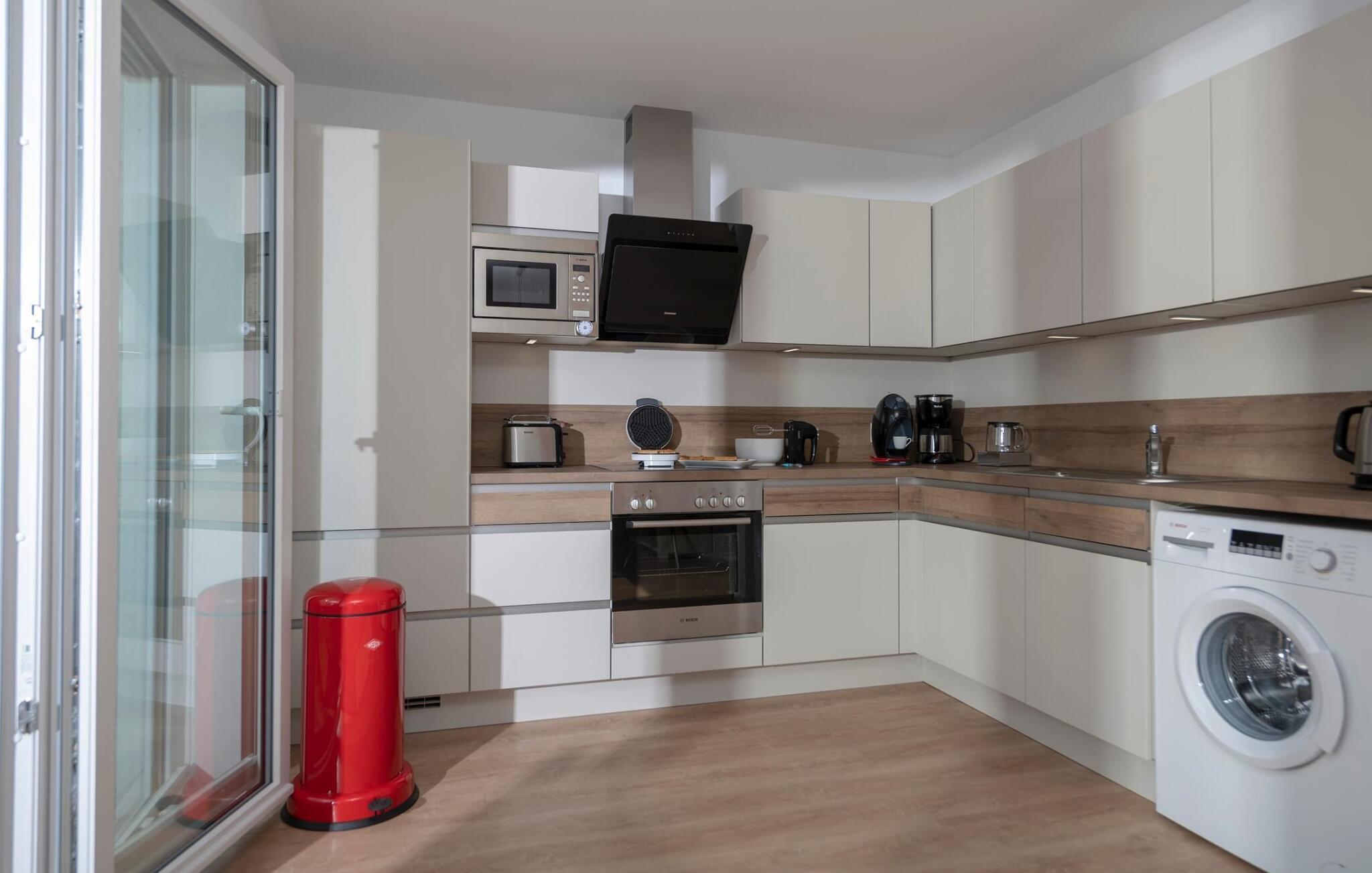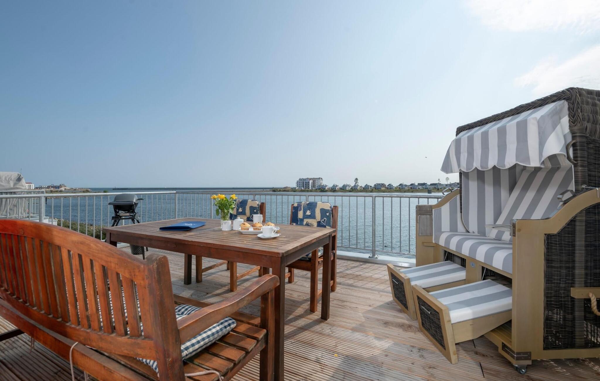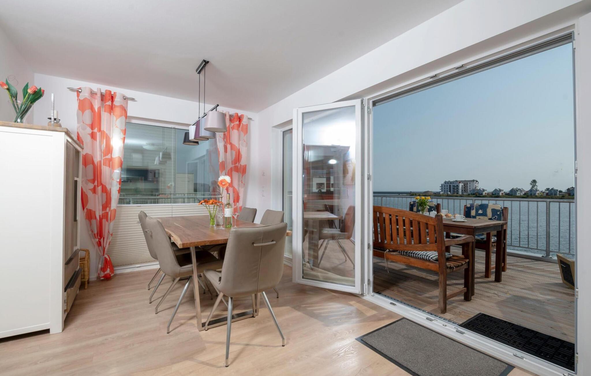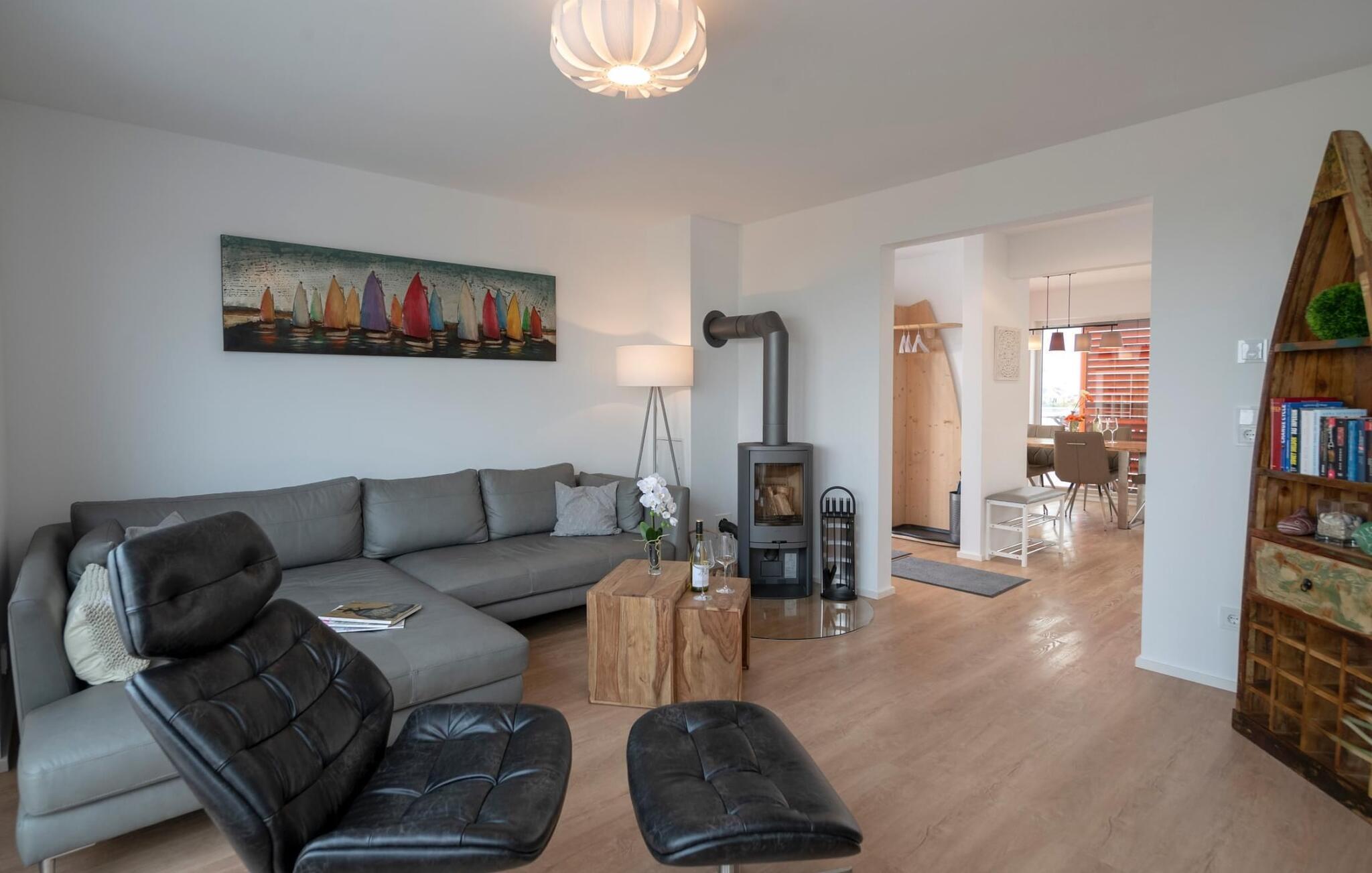 Sommerhusets opholds- og spisestue er oversvømmet med lys og har panoramavindue fra gulv til loft, der fører til de tilstødende terrasser på begge sider. En fantastisk udsigt åbner op på terrassen ved siden af ??spisepladsen med udsigt over sejler- og sportsbådhavnen i OstseeResort Olpenitz. Uanset om det er en romantisk middag i levende lys eller en hyggelig grillfest, er en havnebiograf og en fantastisk solrig udsigt garanteret. På ferien er der tid til kreativ madlavning, det fuldt udstyrede køkken-alrum lader intet tilbage at ønske. Udstyret ned til mindste detalje, fra det rummelige køleskab med BioFresh-rum til bagegrejet, er alt der.