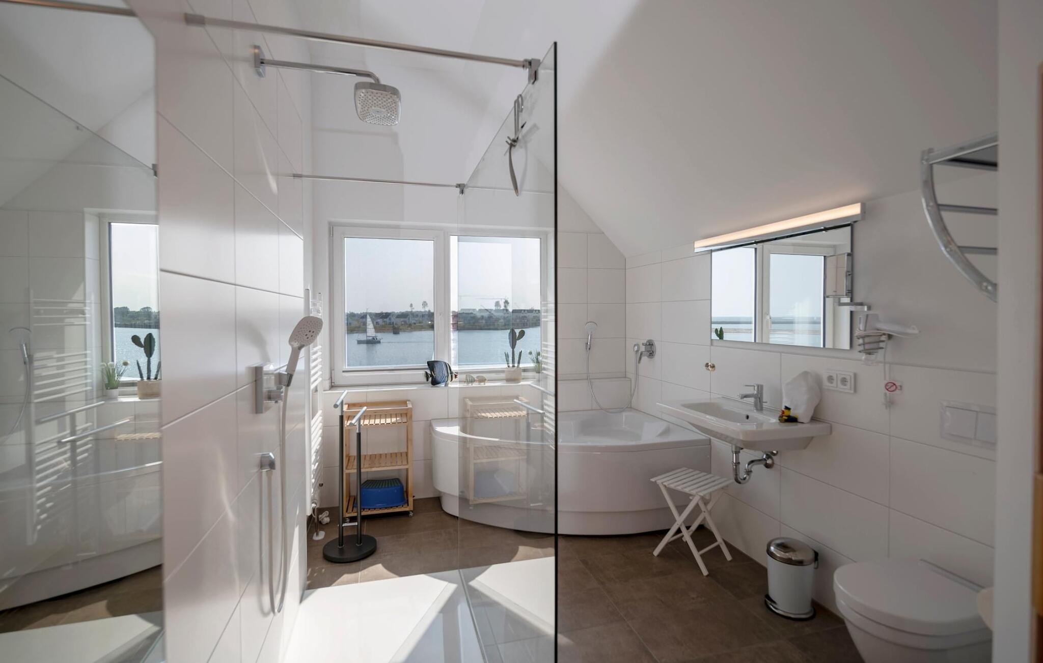 Strandelfe ferielejligheden imponerer med sin rummelighed, en fantastisk havudsigt (Østersøen/Schlei) og sol hele dagen på den sydvendte terrasse. Det private wellness-område inviterer til afslapning: en infrarød sauna (varmekabine) med hi-fi lydsystem og LED farvelysterapi samt et stort afslapningsboblebad med havudsigt (Østersøen/Schlei) er til rådighed for afslapning ind efter en gåtur på stranden.