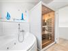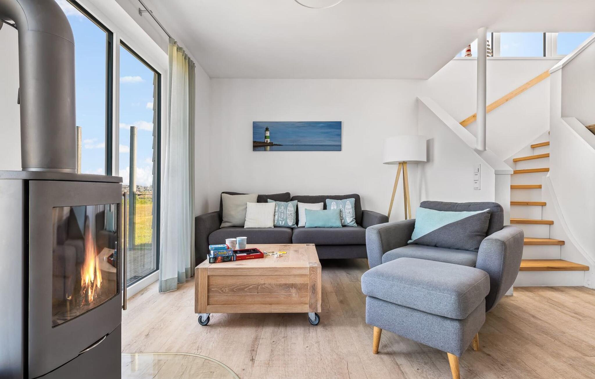 Oplev uforglemmelige feriestunder i sommerhuset Strandkorb. Den højkvalitets ferielejlighed i maritim og strandhusstil byder på en fantastisk beliggenhed lige ved vandet i første række og egen have. Weidefelder Strand, regionens mest kendte strand for svømning, surfing og kitesurfing, ligger blot et par minutters gang derfra. Opholds- og spisepladsen i stueetagen, indrettet i lyst træ, fører til en smuk, rummelig panoramaterrasse og haven lige ud til vandet. Mens I solbader, griller eller læser afslappende, kan I nyde den betagende udsigt over vandet og havnebiografen med de sejler- og sportsbåde, der passerer forbi. Maritim flair er garanteret. Og når Østersøvejret er til det, giver en hyggelig aften ved pejsen eller hjemmeunderholdningsprogrammet på den indbydende sofa den rette balance. Den ekstra terrasse på sydsiden af huset med dens komfortable strandstol inviterer jer til at slappe af, nyde solen og slappe af og sikrer, at alle solskinstimer nydes fuldt ud. Det spisekøkken er udstyret til en høj standard og lader intet tilbage at ønske. Også i stueetagen er der et rummeligt brusebadeværelse med vaskemaskine. På øverste etage ligger de to soveværelser, som ligeledes er maritim, lyst og venligt indrettet: bagerst, med rummeligt indbygget klædeskab, kan I nyde udsigten over vandet fra dobbeltsengen. Den forreste har to enkeltsenge og udsigt til OstseeResort og Weidefelder Strand. Børnebøger og en samling af spil inviterer jer til at blive hængende, slappe af og lege på sovesofaen, der også er tilgængelig. Om natten tilbyder sofaen to børn ekstra plads til at sove. Det fuldt udstyrede badeværelse er også placeret på denne etage: en oase af velvære med boblebad, ekstra bruser og infrarød sauna. Indretningsstilen svarer til sommerhusets eksklusive beliggenhed. Den pastelfarvede, venlige og elegante atmosfære giver straks alle en følelse af ro, sindsro og generøsitet. Mere end ferie. To parkeringspladser foran huset og WiFi fuldender tilbuddet. Et ophold i sommerhuset Strandkorb bliver en ekstraordinær og afslappende ferieoplevelse. Bemærk venligst: OstseeResort Olpenitz er meget populært, og der bygges fortsat i parken. Ikke desto mindre kan I se frem til en 5-stjernet standard og et førsteklasses ophold. Byggeaktiviteterne kommer ikke til at forstyrre jer på ferien, og derfor gives der ikke yderligere afslag i prisen.