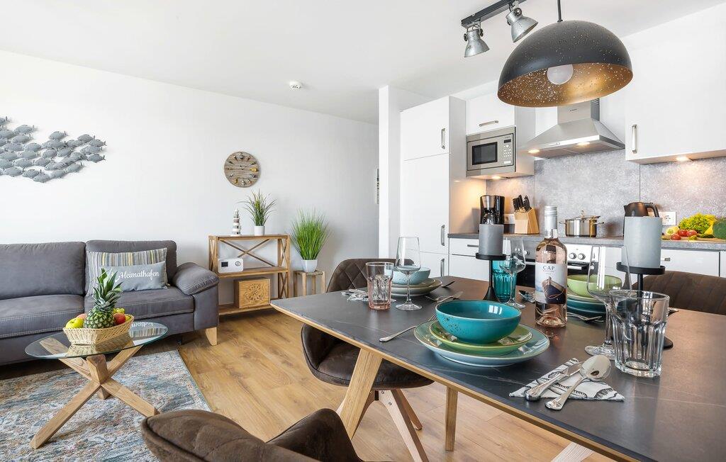 Lille og fin, central og alligevel stille, parret med en fantastisk udsigt over lystbådehavnen, Slien og Østersøen - det er BEACH RUNNER i nøgleord. STRANDLÄUFER-ferielejligheden til 3 personer ligger direkte på havnepromenaden i feriestedet Olpenitz ved Østersøen og byder på alt, hvad I kan forestille jer til en afslappende ferie ved vandet. Promenaden med sine små fristende butikker og et velassorteret EDEKA-marked med bageri ligger bogstaveligt talt for gæstens fødder og indbyder til slentretur og indkøb. Weidefelder sandstrand med kiosk og restaurant ligger i umiddelbar nærhed og er et MUST for enhver BEACH RUNNER! Her er smukt på alle tider af året, ikke kun når strandstolene kalder om sommeren. I kan gå på endeløse gåture eller LØB her på den åbne Østersø og lægge hverdagen bag jer. Minigolfbanen med maritimt tema kan også nås på få skridt og byder på sjov for hele familien. Så snart I træder ind i STRANDLÄUFER, føler du, at I er i feriehumør. Udsigten fra den kombinerede stue-spisestue med tekøkken falder direkte over altanen ud til lystbådehavnen med skibene og deres farverige travlhed. Og udsigten fortsætter med at feje over de flydende huse, østersøfjorden Slien, hele vejen til Schimmelünde fyrtårn og derefter ud til Østersøen. At ankomme kunne ikke være bedre! Moderne, høj kvalitet og komfortabelt indrettet, gæsten føler sig godt tilpas fra første øjeblik og kan give slip. Uanset om I slapper af på den komfortable sovesofa eller ser tv, sidder ved spisebordet eller laver mad i det veludstyrede køkken, er udsigten til skibe og vand der altid. I soveværelset garanterer en dobbelt boxmadrasser en afslappende søvn, og et fjernsyn giver alternativ underholdning. Badeværelset lader heller intet tilbage at ønske og tilbyder enhver BEACH RUNNER en behagelig forfriskning med sin brusekabine på gulvniveau. Der er en parkeringsplads til rådighed foran huset. En elevator bringer gæsterne komfortabelt til deres ferielejlighed på første sal. Det er en ferielejlighed på første sal. Havnepromenaden ligger under ferielejligheden og er ideel til slentreture. Særligt værd at nævne her er restauranten Ciao Bella, som ligger under lejligheden og giver tiden på altanen et middelhavspræg. Vores yndlingssted: Lidt over tingene på balkonen, se travlheden... Bemærk venligst: OstseeResort Olpenitz er meget populært, og der bygges fortsat i parken. Ikke desto mindre kan I se frem til en 5-stjernet standard og et førsteklasses ophold. Byggeaktiviteterne kommer ikke til at forstyrre jer på ferien, og derfor gives der ikke yderligere afslag i prisen.