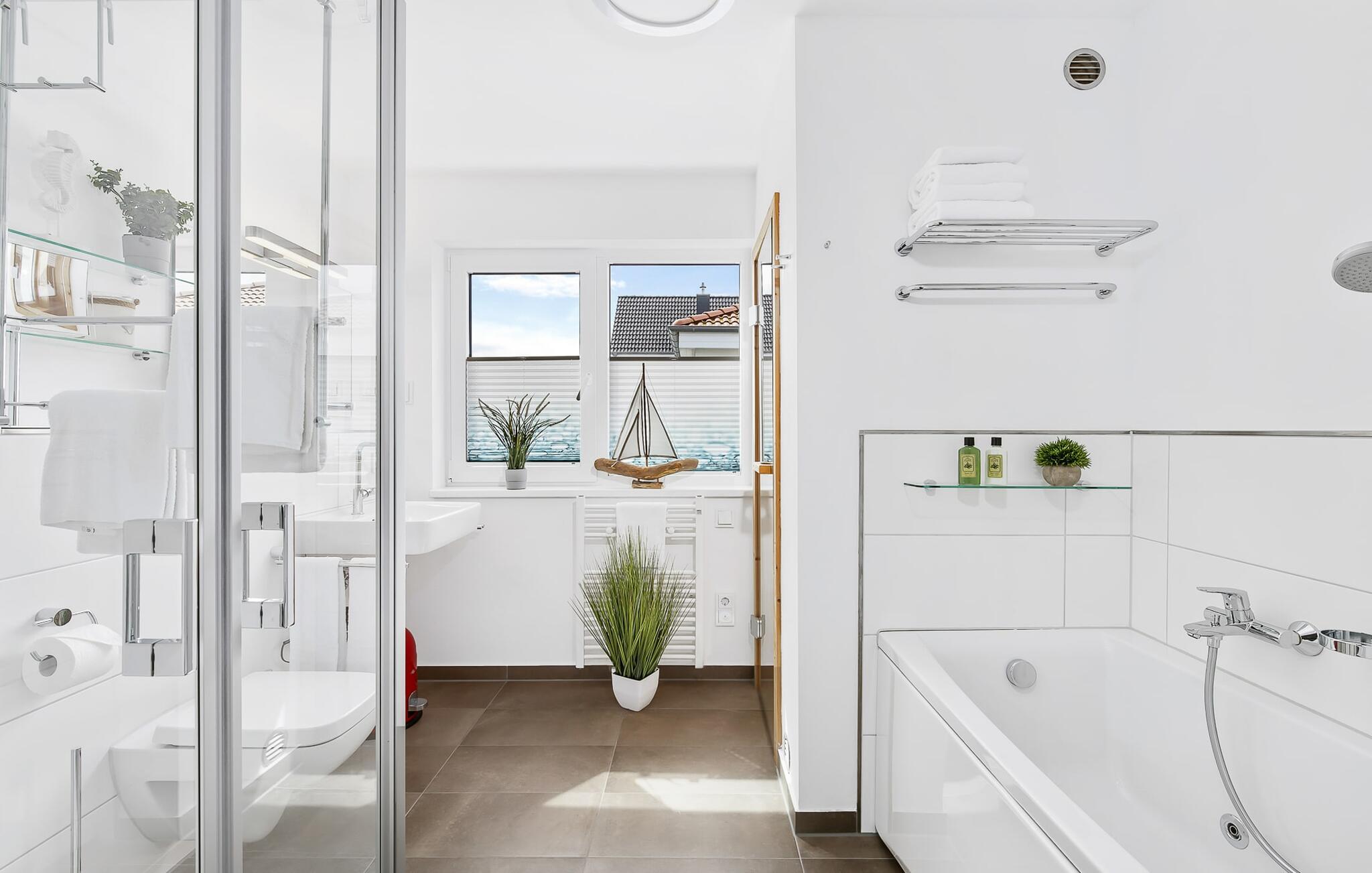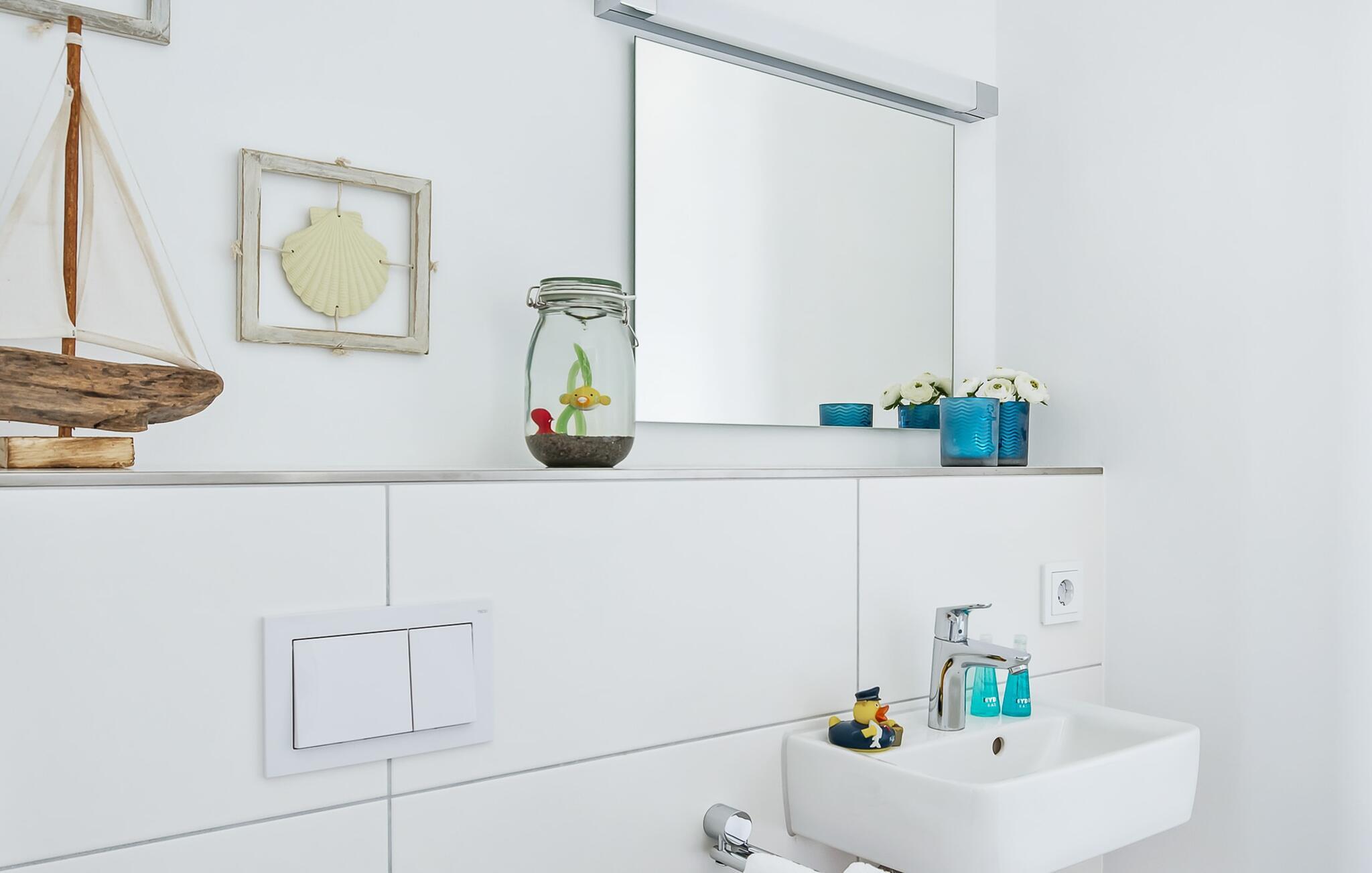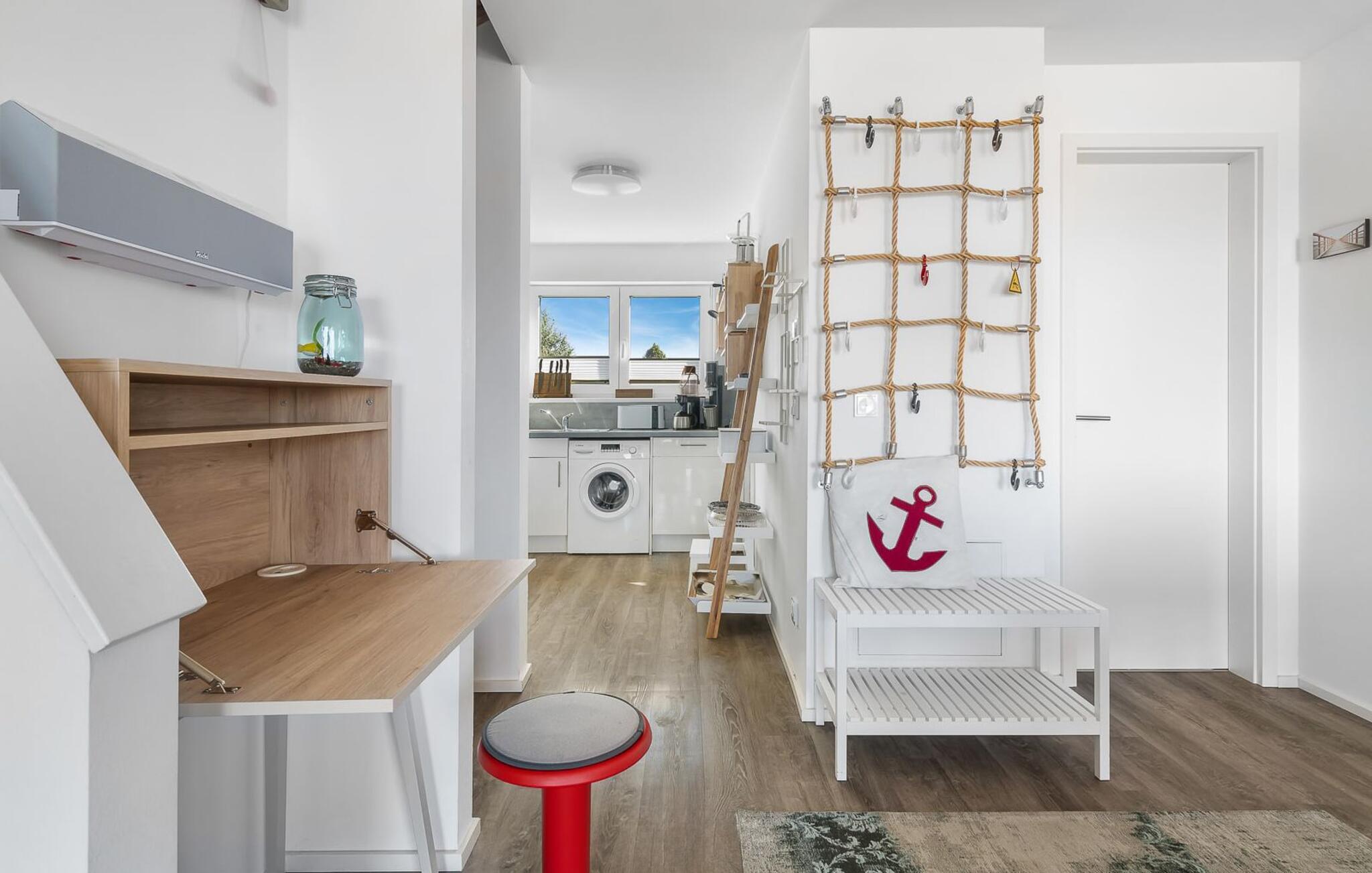 STRANDRÄUBER trives i dette feriehus på alle tider af året. Dette sikres af en finsk sauna og et spabad i det rummelige badeværelse, som I kun vil komme ud af med tungt hjerte. Men hvis I tænker på den brølende ild i pejsen og den komfortable sovesofa, hvor yderligere to STRANDRÄUBER kan overnatte, er det nemt at tage af sted.