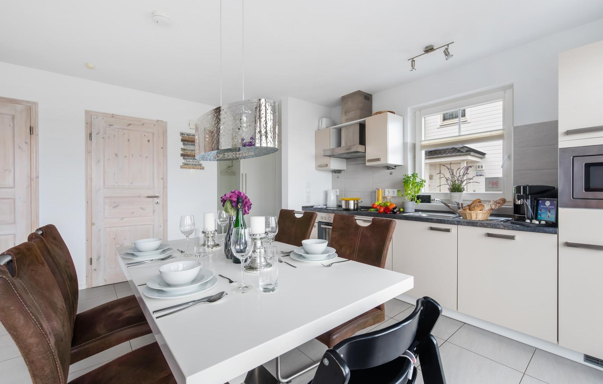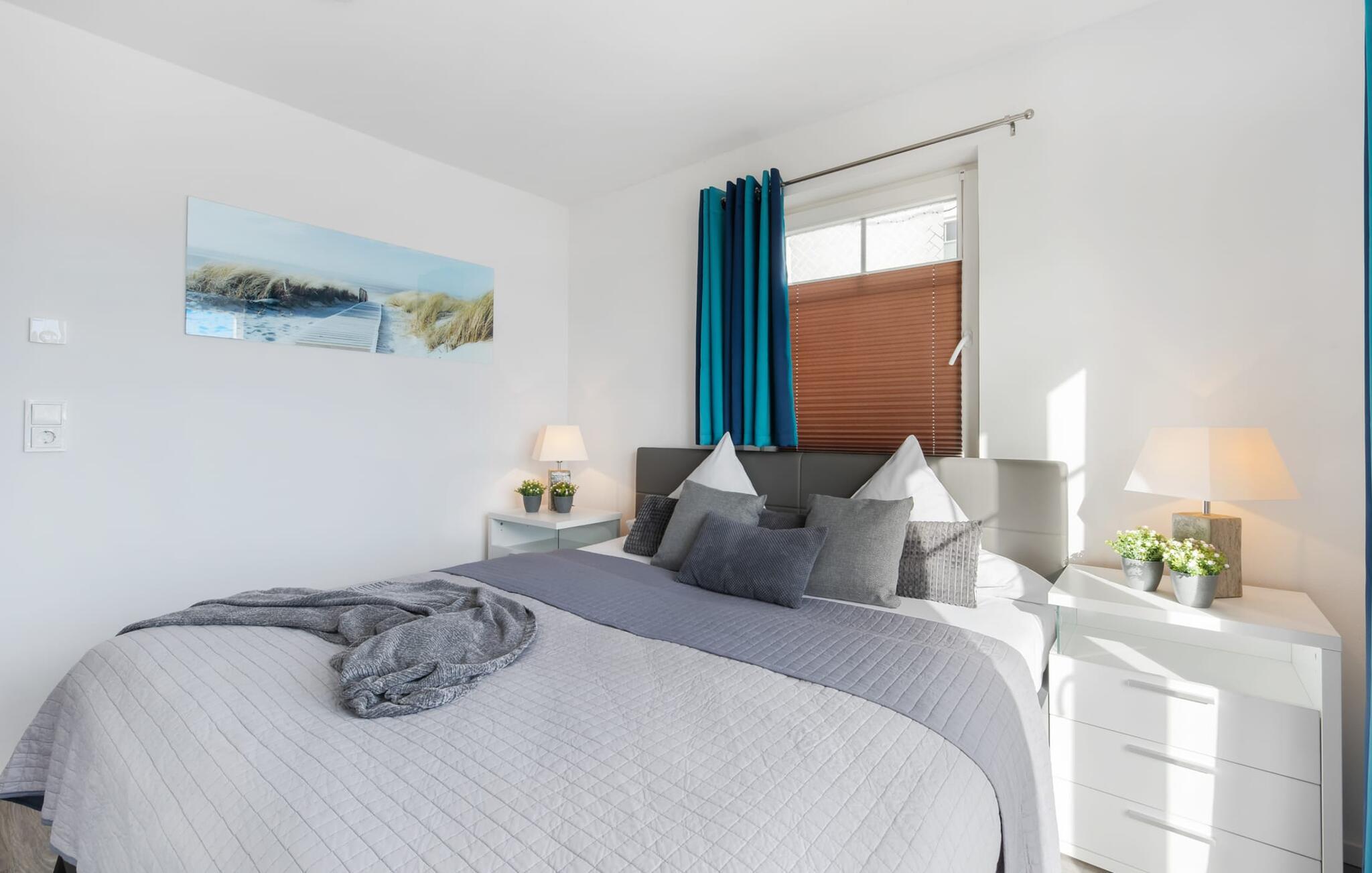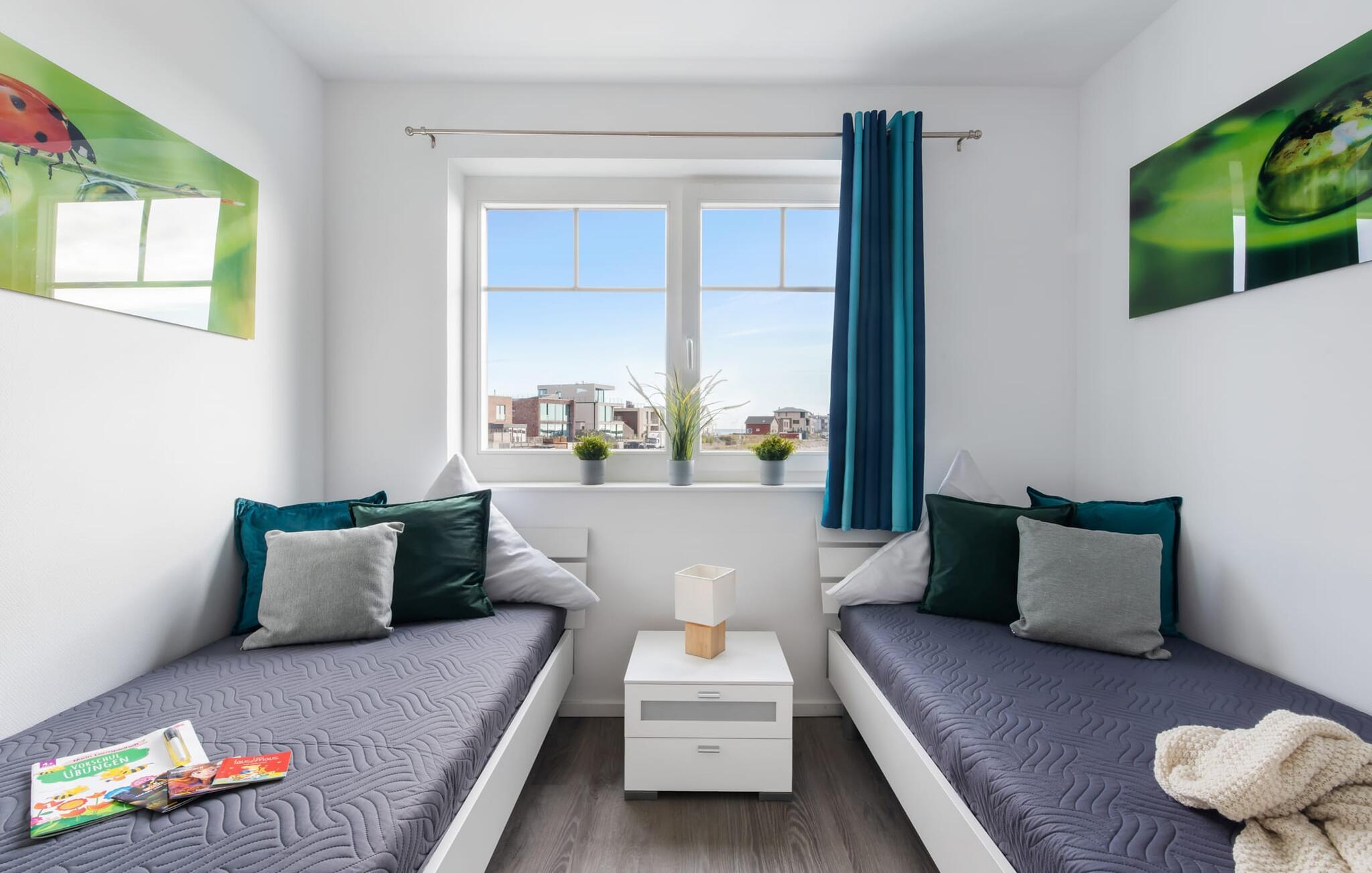 BEACH VILLA: Hvis I er så heldig at kunne leje BEACH VILLA til jeres familieferie, har I ramt jackpotten. Denne ejendom imponerer ikke kun med sin førsteklasses beliggenhed, men også med sin højkvalitets og børnevenlige indretning. Beliggende direkte ved lystbådehavnen, i første række til stranden i feriestedet ved Østersøen, med en uhindret udsigt over Østersøen og Slien, tilbyder STRANDVILLA en perfekt beliggenhed til en afslappet ferie med eller uden børn. Den åbne stue/alrum med integreret tekøkken oversvømmes af lys, lyst og venligt takket være vinduesfronten fra gulv til loft. Udsigten falder ud over den tilstødende terrasse på stranden og havet (Østersøen/Schlei). Et overvældende øjeblik og feriefølelsen sætter ind med det samme. Den moderne indretning med nogle få udvalgte, subtile maritime detaljer udstråler komfort, og det veludstyrede tekøkken glæder ethvert hjerte. At tilberede et måltid her og derefter spise det enten ved det stilfulde spisebord eller på terrassen er sjovt, for alt er ledsaget af udsigt til stranden og vandet. I opholdsområdet inviterer den rummelige L-formede sofa jer til at slappe af og se tv, og Wii-spillekonsollen sikrer variation og sjov for unge og gamle og hele familien, ikke kun på regnvejrsdage. På første sal byder det store soveværelse på en komfortabel dobbeltseng og en lille balkon. Det andet soveværelse er indrettet med to enkeltsenge. Begge værelser har udsigt til stranden og hvad kunne være dejligere end at falde i søvn og vågne ved siden af. I tror måske, I stadig drømmer. Ud over alt det nyttige byder det komplette badeværelse på et boblebad med bruser, som garanterer starten på en vellykket ny feriedag. Højdepunktet i STRANDVILLA er uden tvivl 3. sal, der præsenterer sig som en privat wellness-oase med finsk sauna med udsigt til stranden og bruser i gulvniveau. Når I først er på toppen, byder relaxområdet jer velkommen med gulv til loft-vinduer og en fænomenal udsigt hele vejen rundt til stranden og vandet. På den tilstødende, store terrasse inviterer en hyggelig dobbelt liggestol jer til at drømme og slappe af efter en saunasession. En ferie kunne ikke være bedre. Udover et gæstetoilet i stueetagen tilbyder STRANDVILLA også en parkeringsplads direkte ved huset. Vores favoritsted: Vi kan ikke bestemme os for denne lejlighed, den er smuk overalt. Bemærk venligst: OstseeResort Olpenitz er meget populært, og der bygges fortsat i parken. Ikke desto mindre kan I se frem til en 5-stjernet standard og et førsteklasses ophold. Byggeaktiviteterne kommer ikke til at forstyrre jer på ferien, og derfor gives der ikke yderligere afslag i prisen.