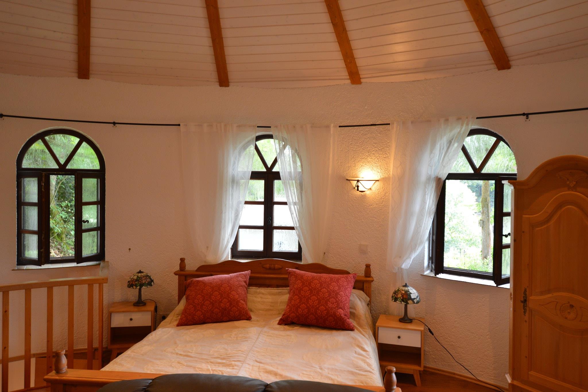 Dette hyggelige feriehus i Strotzbüsch er et fredeligt landligt tilflugtssted for par eller små familier, kun 100 meter fra en frodig skov i hjertet af den vulkanske Eifel-region. Huset har en stue/soveværelse med dobbeltseng og tv, centralvarme og en sauna (mod betaling), der tilbyder komfort og afslapning året rundt. Haven og terrassen byder på en smuk udsigt og inviterer dig til at nyde et glas Moselvin udendørs. Højdepunkter inkluderet: Alle forbrugsbaserede energiomkostninger og håndklæder Wi-Fi I nærheden kan gæsterne svømme i Pulvermaar-søen (1 km), vandre gennem vulkanske landskaber eller udforske charmerende byer som Daun (21 km), Trier og Luxembourg, alt sammen inden for rækkevidde. Bådture til Cochem og Zell samt besøg i Koblenz tilbyder en række aktiviteter. Der er fornødenheder i nærheden: restauranter ligger kun 300 meter væk, og et supermarked ligger 5 km væk. Offentlig transport er 5 km væk. Op til to kæledyr er velkomne for EURO20 pr. kæledyr pr. ophold.