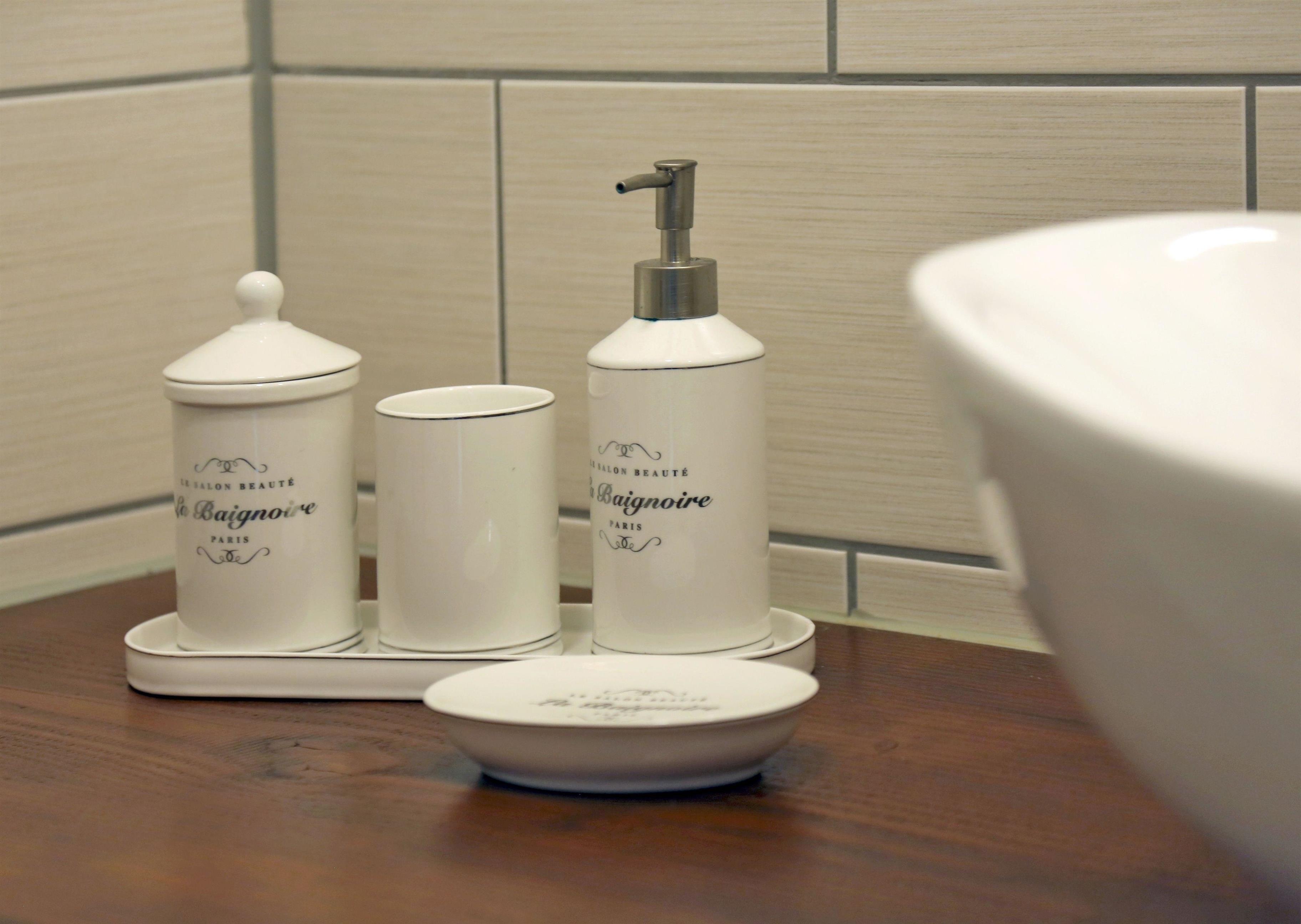 Im Bad nutzen wir Produkte von „ Stop the Water“ und in der Küche sind Produkte von „Ecover“ und „Kiss my Kitchen“ zu finden.