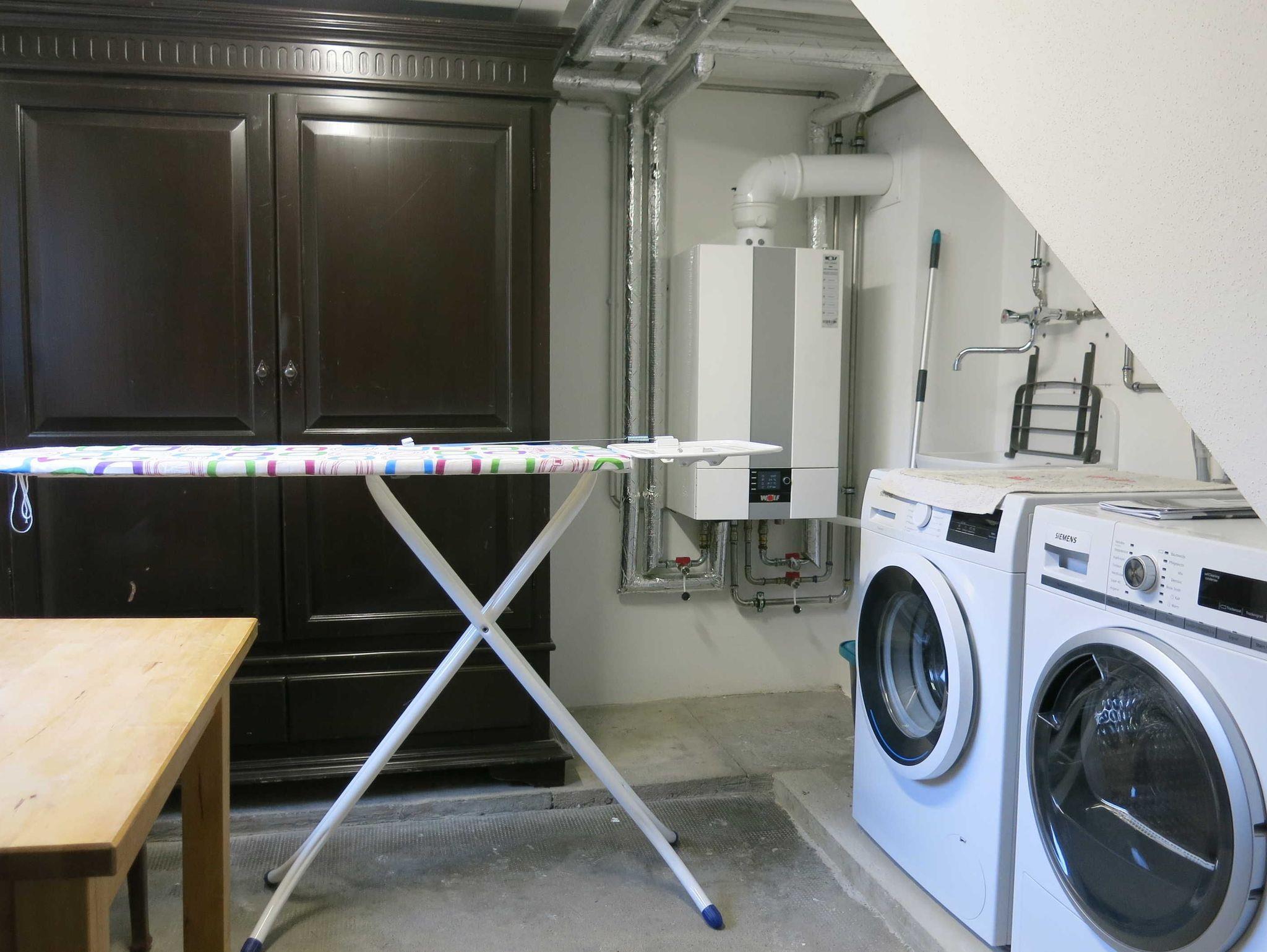 Im Erdgeschoss des Gebäudes befindet sich die Waschküche, der Hauswirtschaftsraum für das Ferien-Apartment. Dort finden Sie Waschmaschine, Trockner und Bügelbrett sowie größere Reinigungsgeräte wie Staubsauger, Wischer etc. Die Benutzung der Waschmaschine ist für Sie kostenfrei, den Trockner können Sie gegen eine kleine Gebühr nach Rücksprache ebenfalls gerne benutzen. Die Waschküche dient auch als Trockenraum für feuchte Kleidung oder Wanderschuhe.