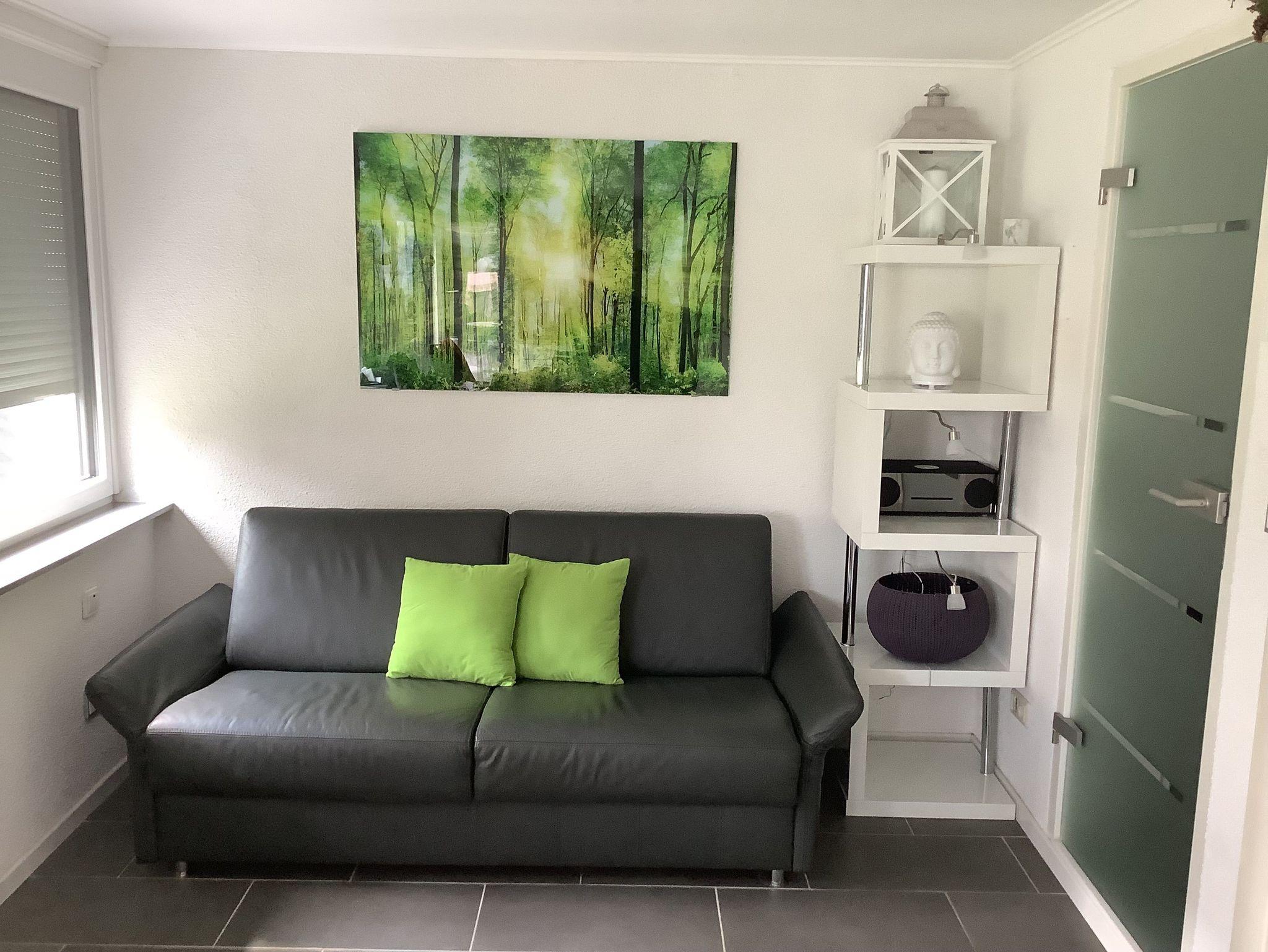 Das helle und geräumige Wohnzimmer ist mit bequemen Möbeln ausgestattet, die zum Entspannen einladen. Hier können Sie nach einem ereignisreichen Tag gemütlich die Füße hochlegen und den Abend bei einem guten Buch oder einem Glas Wein ausklingen lassen.