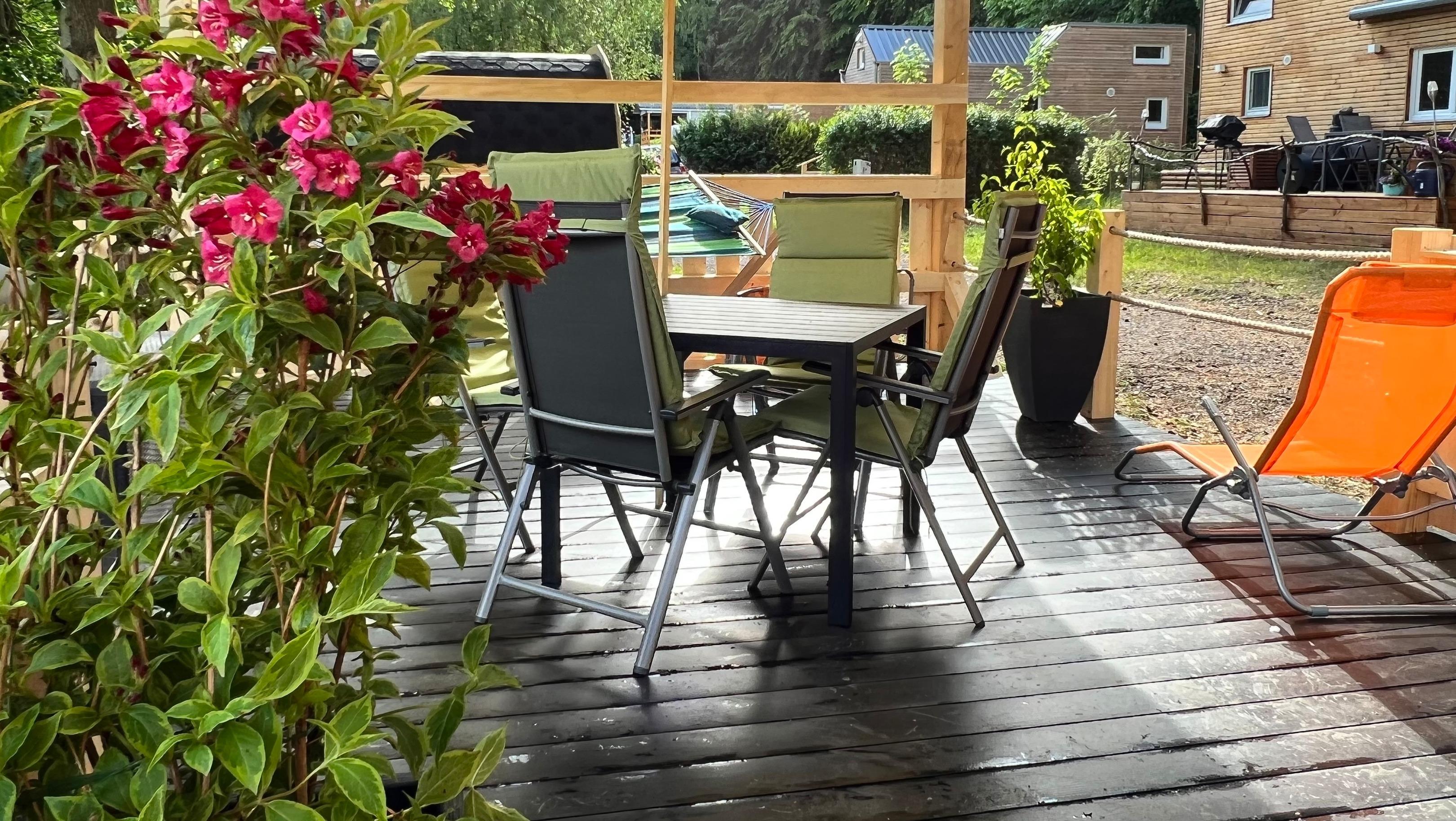 Bettwäsche, Hand- und Duschtücher fürs Haus sind vorhanden, auch kuschelige Decken und reichlich Kissen fürs gemütliche Abhängen sind da. Vor eurem zauberhaften Domizil steht für Euch eine großzügig bemessene teilüberdachte (falls der Regengott mal gewinnt) Terrasse zur Nutzung bereit, mit Tisch und 4 bequemen Stühlen. Gasgrill für euer BBQ vorhanden sowie zwei Liegen verstellbar.
