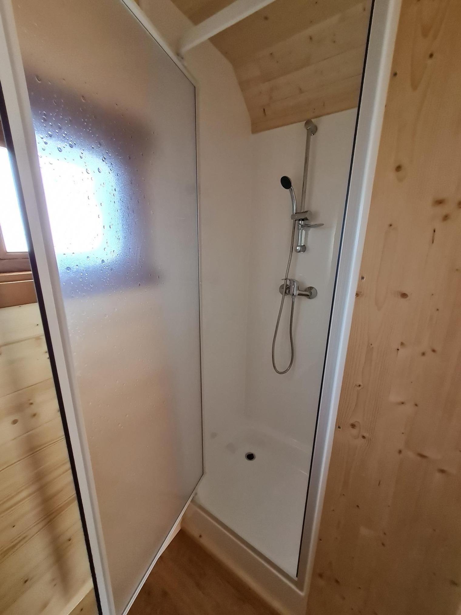 Neben einem Wohn-Schlafbereich für 2-4 Personen (Alkovenbett DB 1,40m und zwei EB 0,80m) gibt es ein eigenes kleines modernes Bad mit Waschbecken, Dusche und WC. Eine Teeküche ist mit Kochplatte und Pfanne für das Frühstücksrührei, Wasserkocher, Toaster, kleinem Kühlschrank und Kaffeemaschine sowie Mikrowelle ausgestattet, . Falls man mal drinnen essen möchte, ein Esstisch mit Platz für 4 ist auch da.