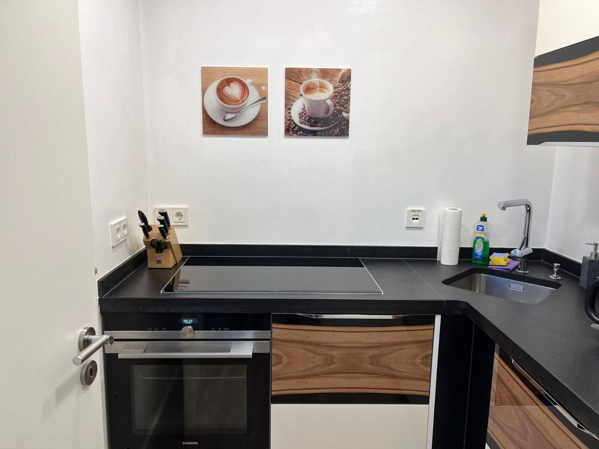 The kitchen is fully equipped and has a fully automatic coffee machine.