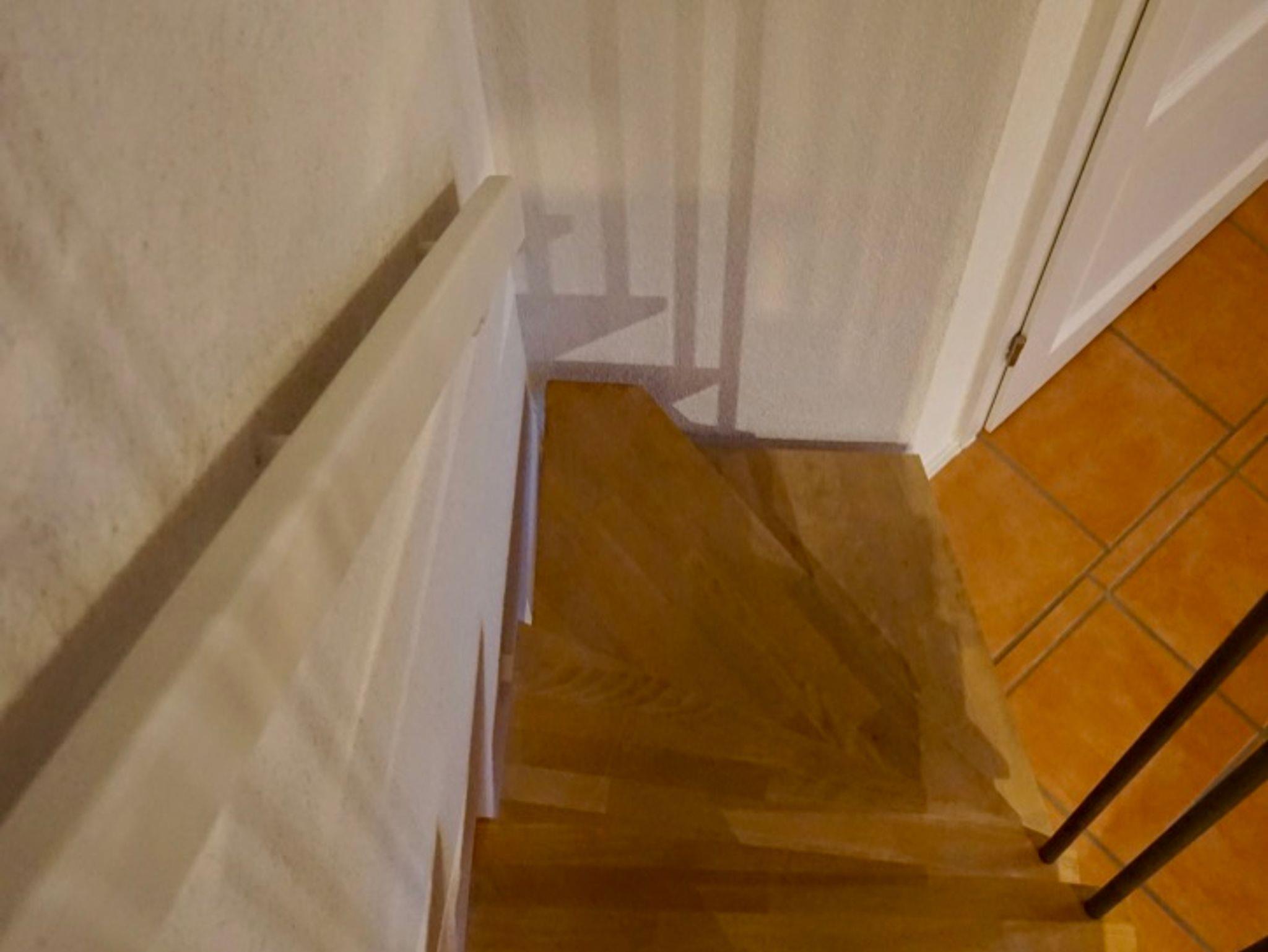 Durch die Eingangstür gelangt man direkt in das kombinierte Wohn-/Schlafzimmer mit Küchenzeile (mit Ausgang zum Balkon) und in das helle, freundliche Duschbad/ WC. Über eine Wendeltreppe gelangt man in den Spitzboden mit einer Schlafkoje. (1,80m x 2,00m).