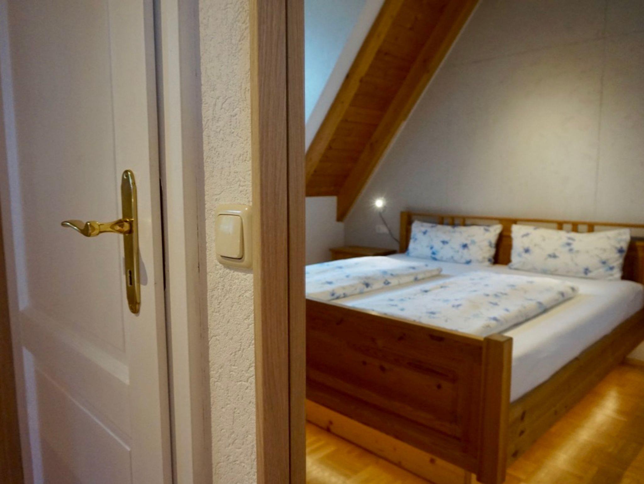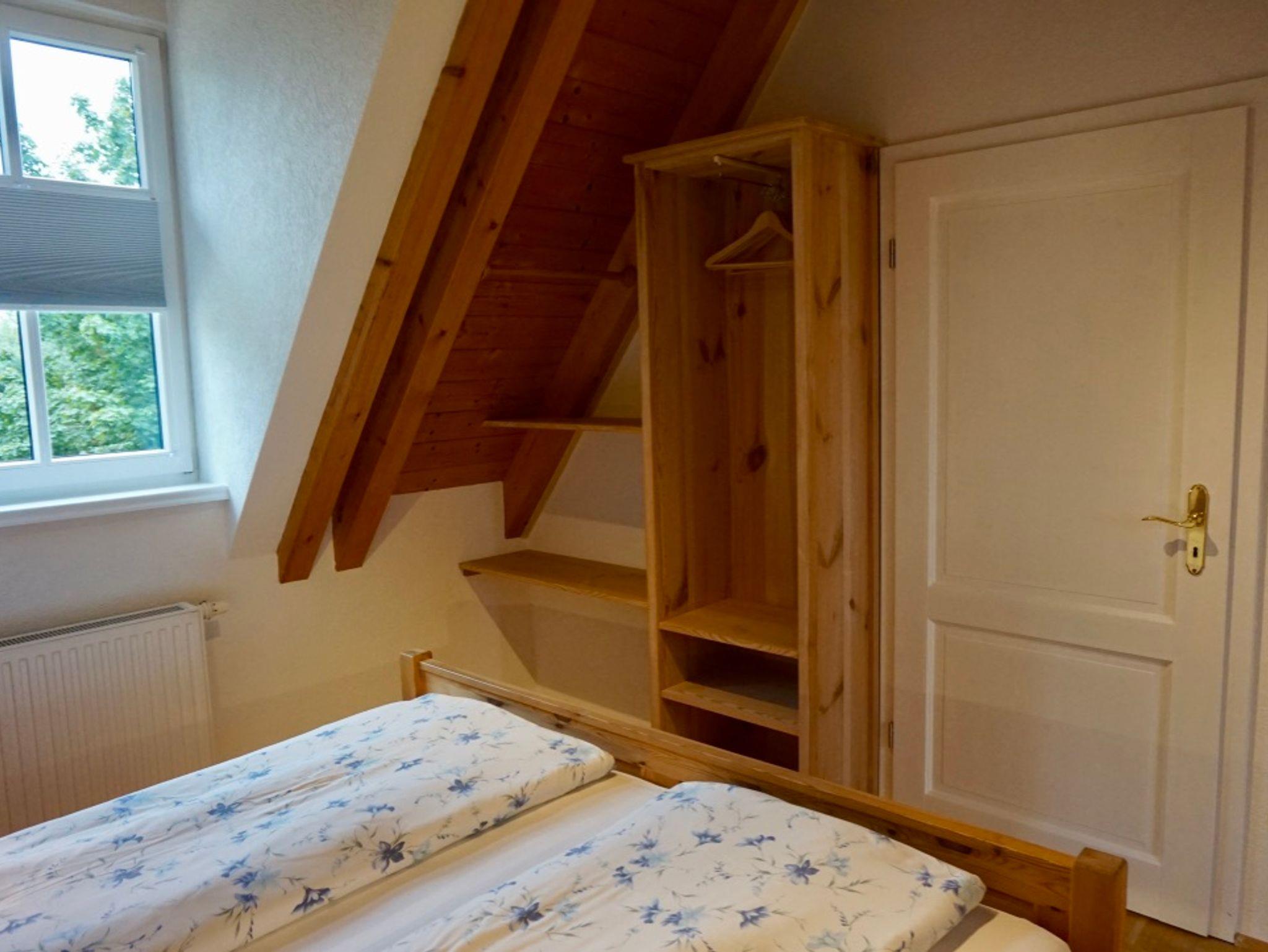 Das geräumige Doppel-Schlafzimmer hat ein gutes Bett (1,80m x 2,00m, mit 2 Einzelmatratzen), einen Kleiderschrank und 2 Nachttische.