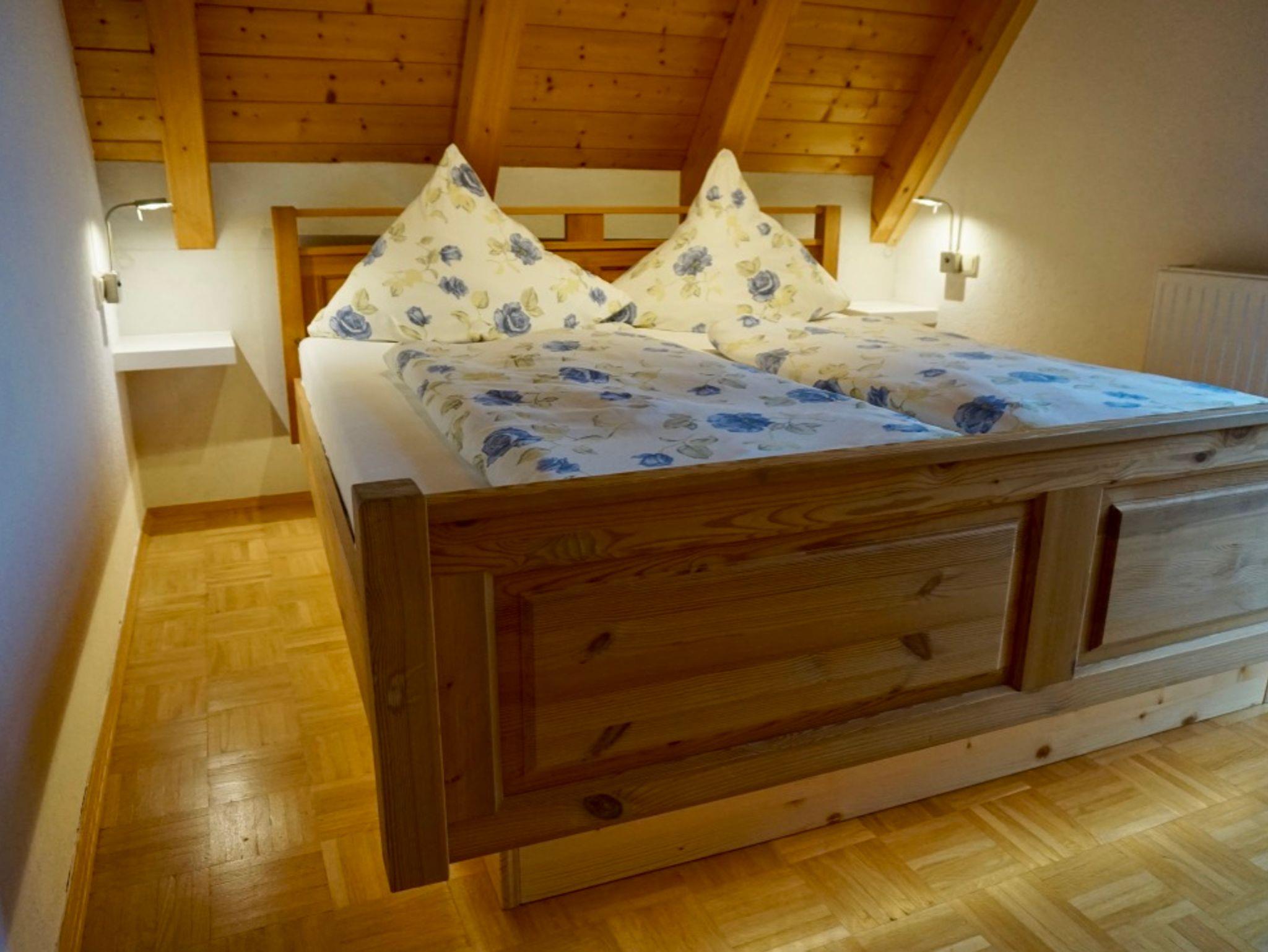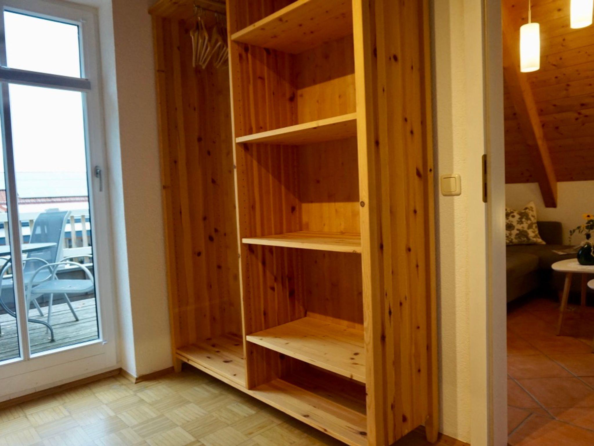 Im Spitzboden befinden sich zwei Einzelbetten (0,90m x 2,00m) und eine Kleiderstange.