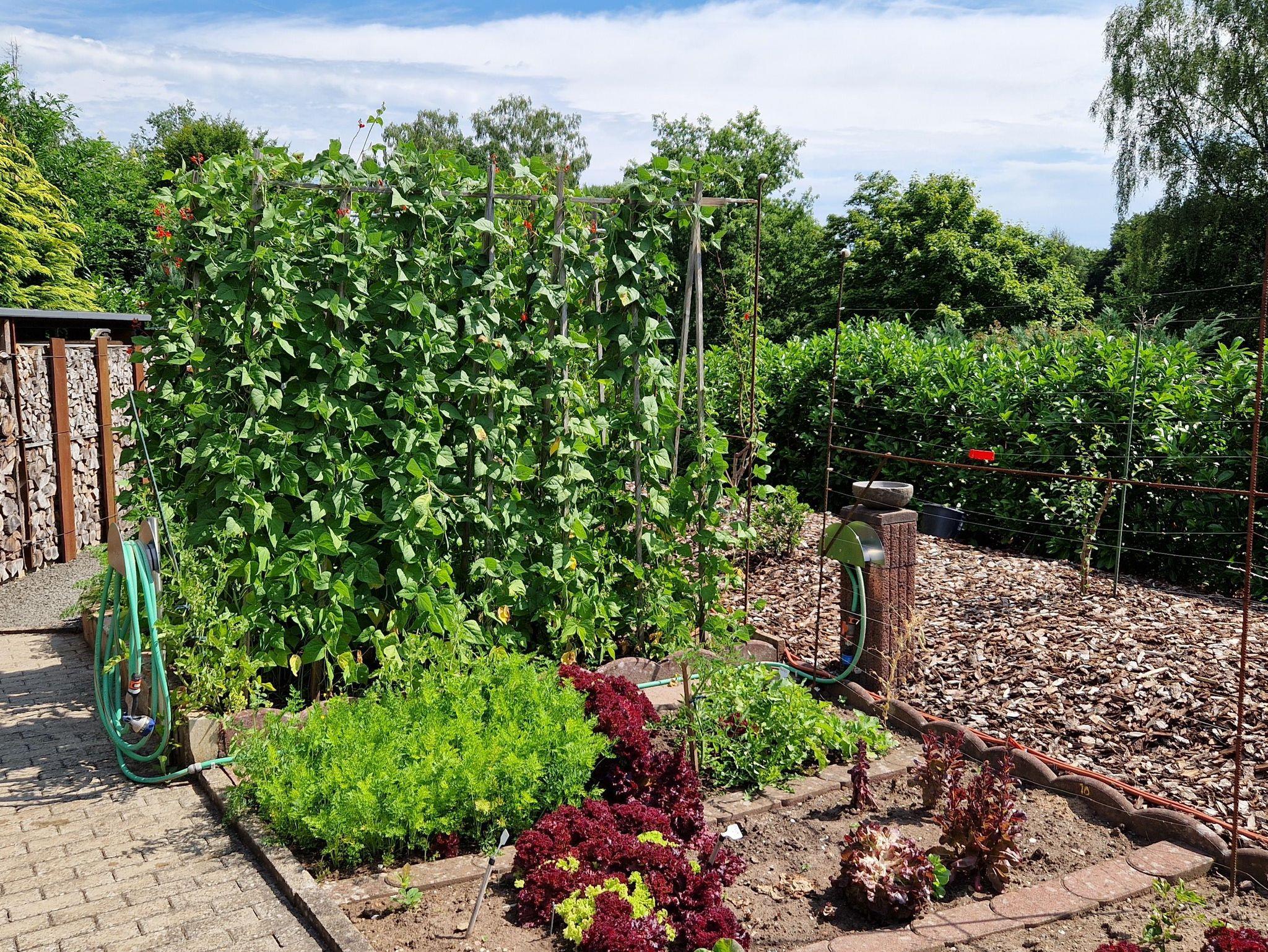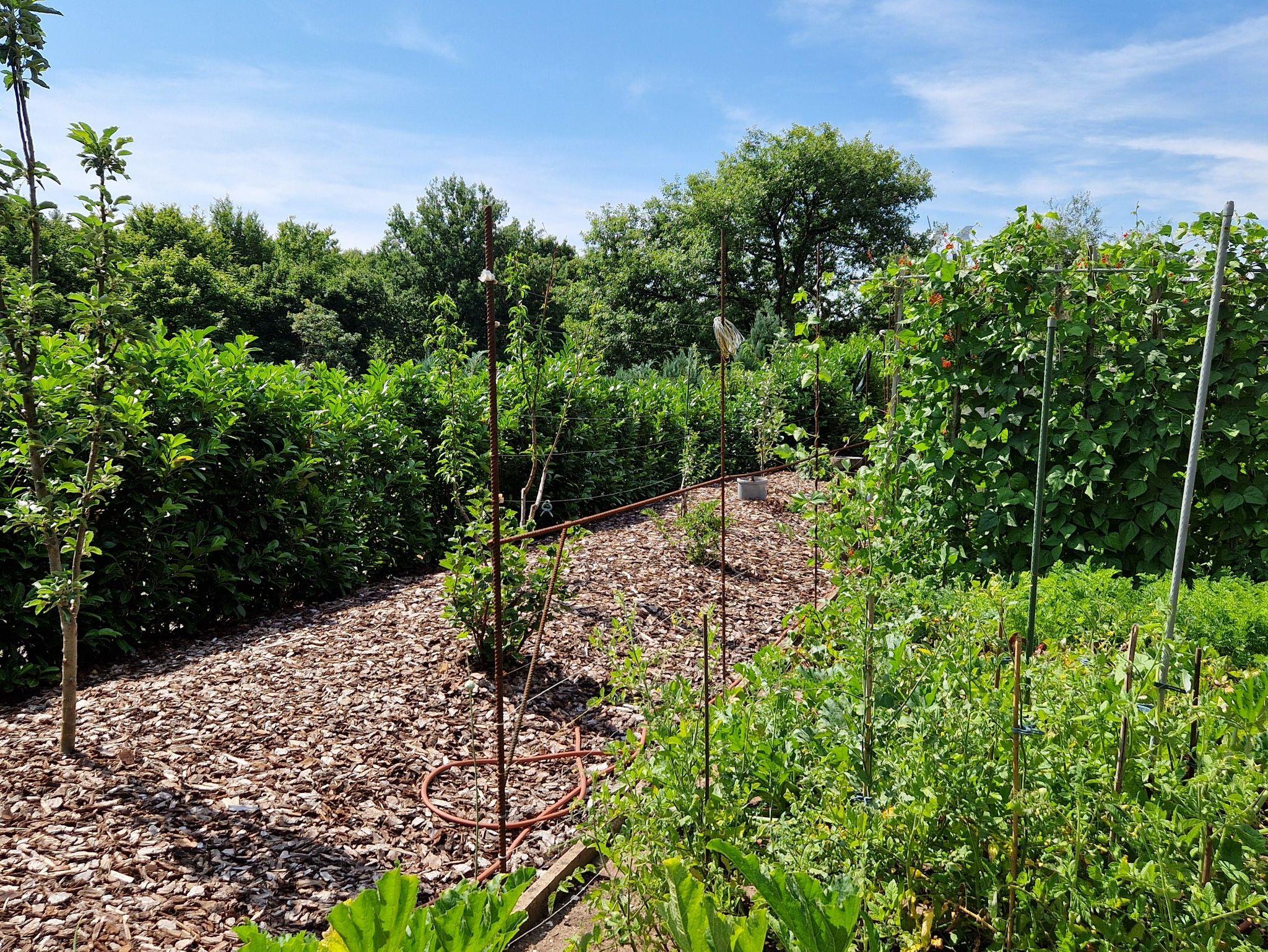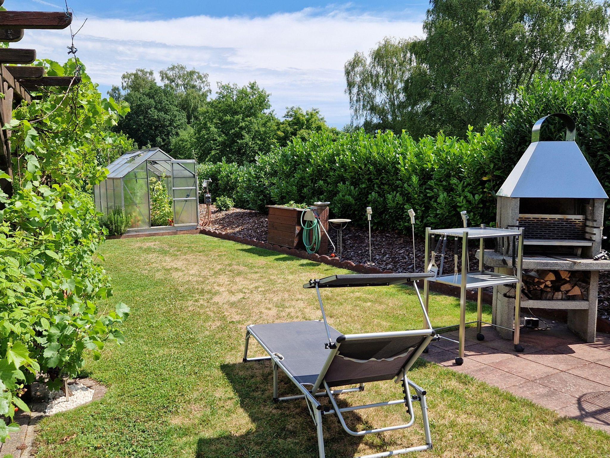 Auf dem 1100 m² großen Gelände befindet sich ein großer Bio-Gemüsegarten. Eine Grillstelle, die sie gerne Benutzen dürfen sowie Sitzecken zum verweilen.