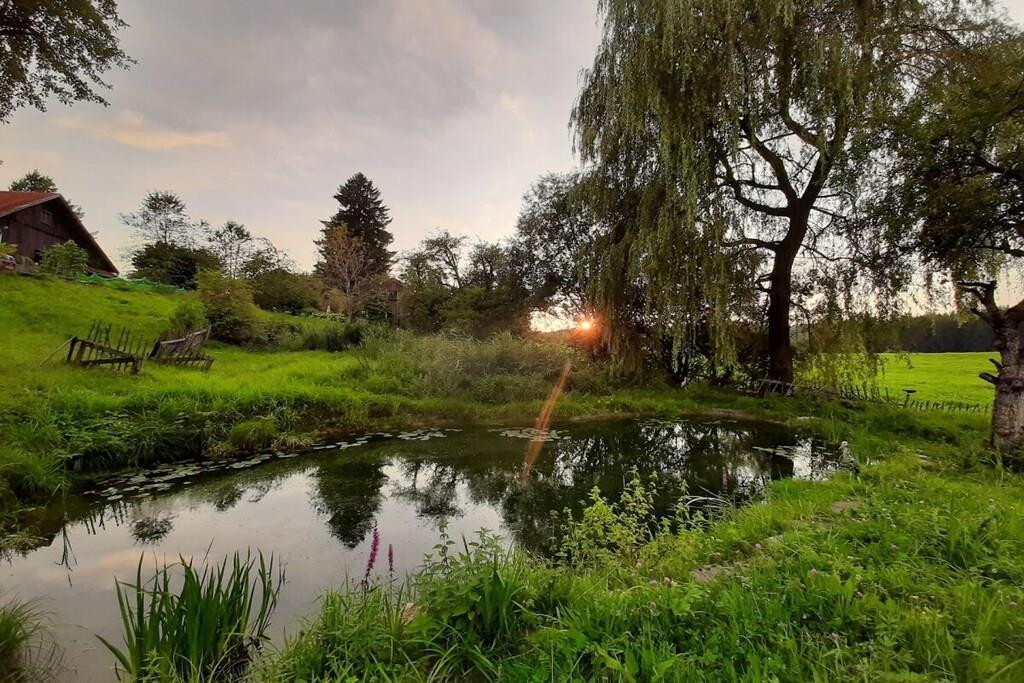 Farm in the Oberallgäu with a little eco-house, old trees and a pond; adjacent to the EU nature reserve with lake. Sole occupancy. Wellness area with spring water.
