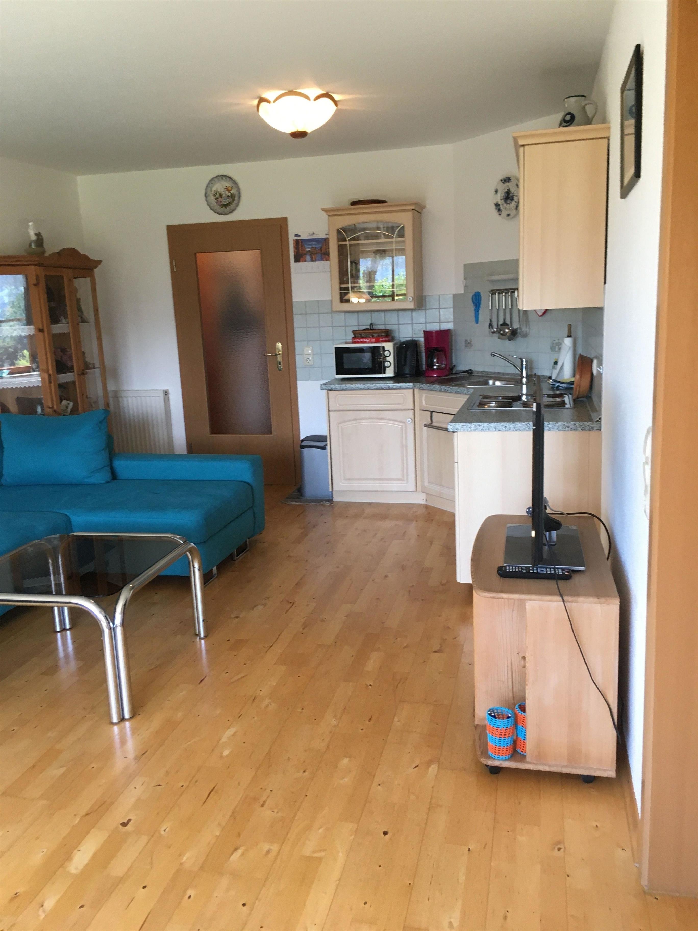 Die schöne, im Landhausstil eingerichtete Wohnung verfügt über ein Schlafzimmer, ein Wohn-/Schlafzimmer, eine voll ausgestattete Küche und ein Badezimmer mit Dusche. Sie ist mit WLAN, Flachbild-TV, Radio, Kinderhochstuhl und Kinderbett ausgestattet.