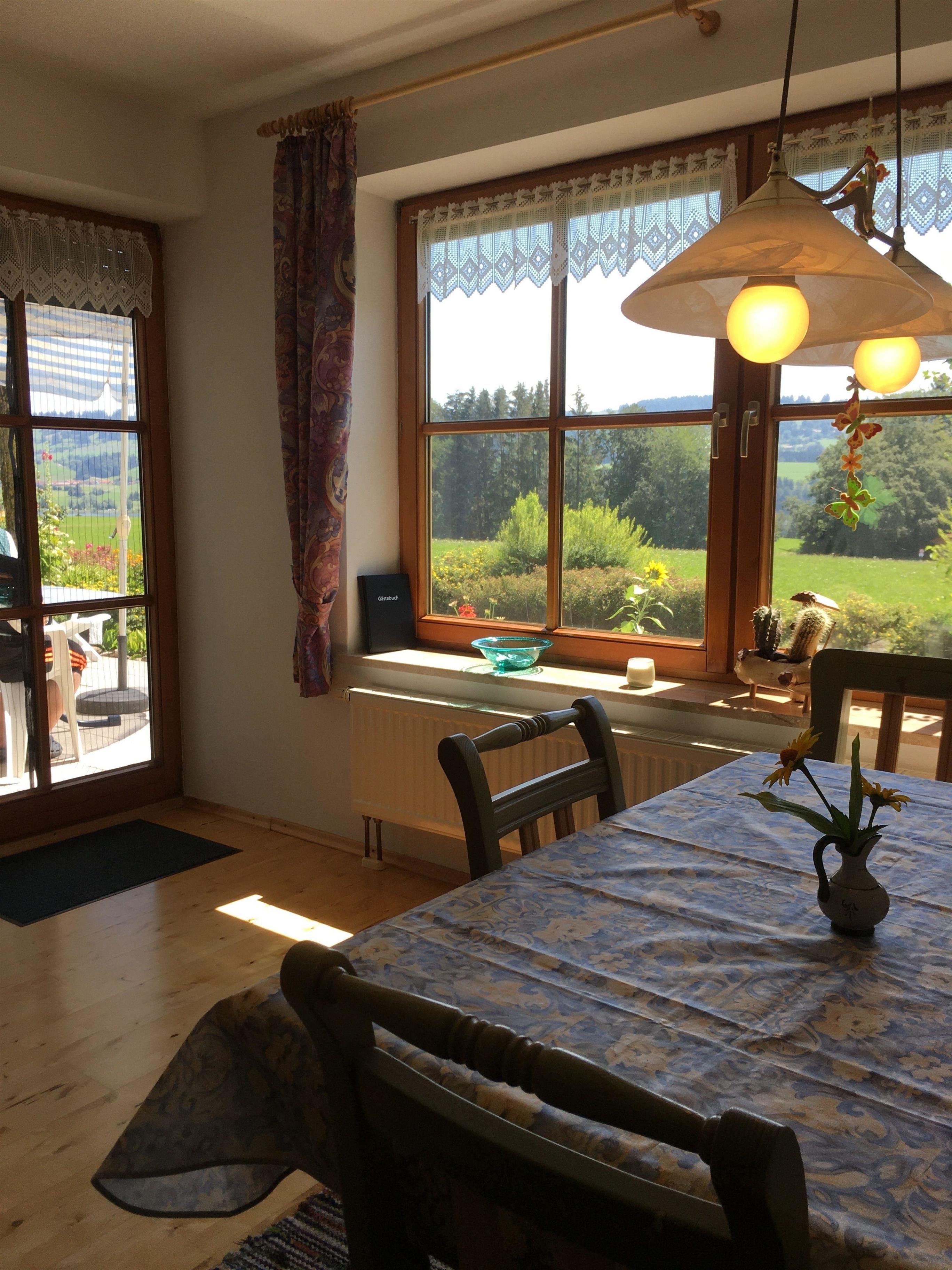 Schöne Ferienwohnung für 4 Personen mit Blick auf den Rottachsee. Genießen Sie beim Frühstück und von der Terrasse aus den Ausblick auf den Rottachsee und die Voralpen.