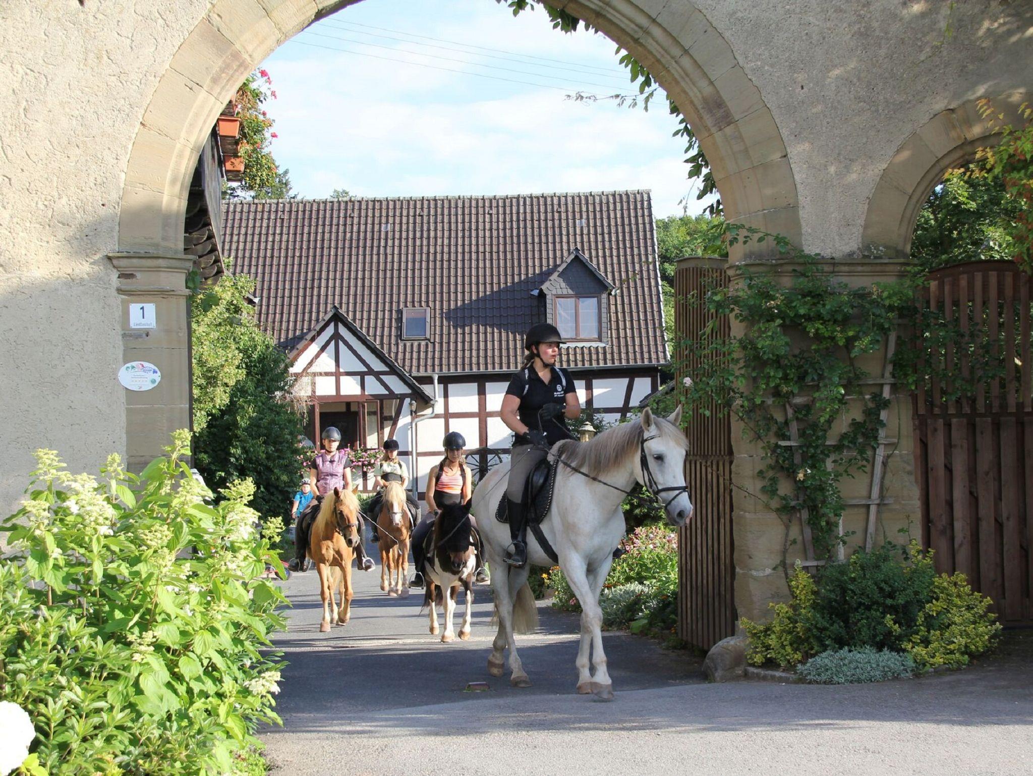 Ankommen und wohlfühlen auf unserem Ferienhof in idyllischer Einzellage. Die sanfte Hügellandschaft der Haßberge ist ideal zum Radeln, Wandern und Reiten. Beheiztes Schwimmbad, Reitpferde (für Anfänger und Könner), Angelweiher, Wellness-Angebote, Spielplatz, Fußballwiese, Beachvolleyball, Tischtennis, Sauna, Fahrzeugpark für Groß und Klein und viele Streicheltiere - Für jeden der richtige Urlaub! Unser Ferienhaus bietet Platz für 10 - 16 Personen.