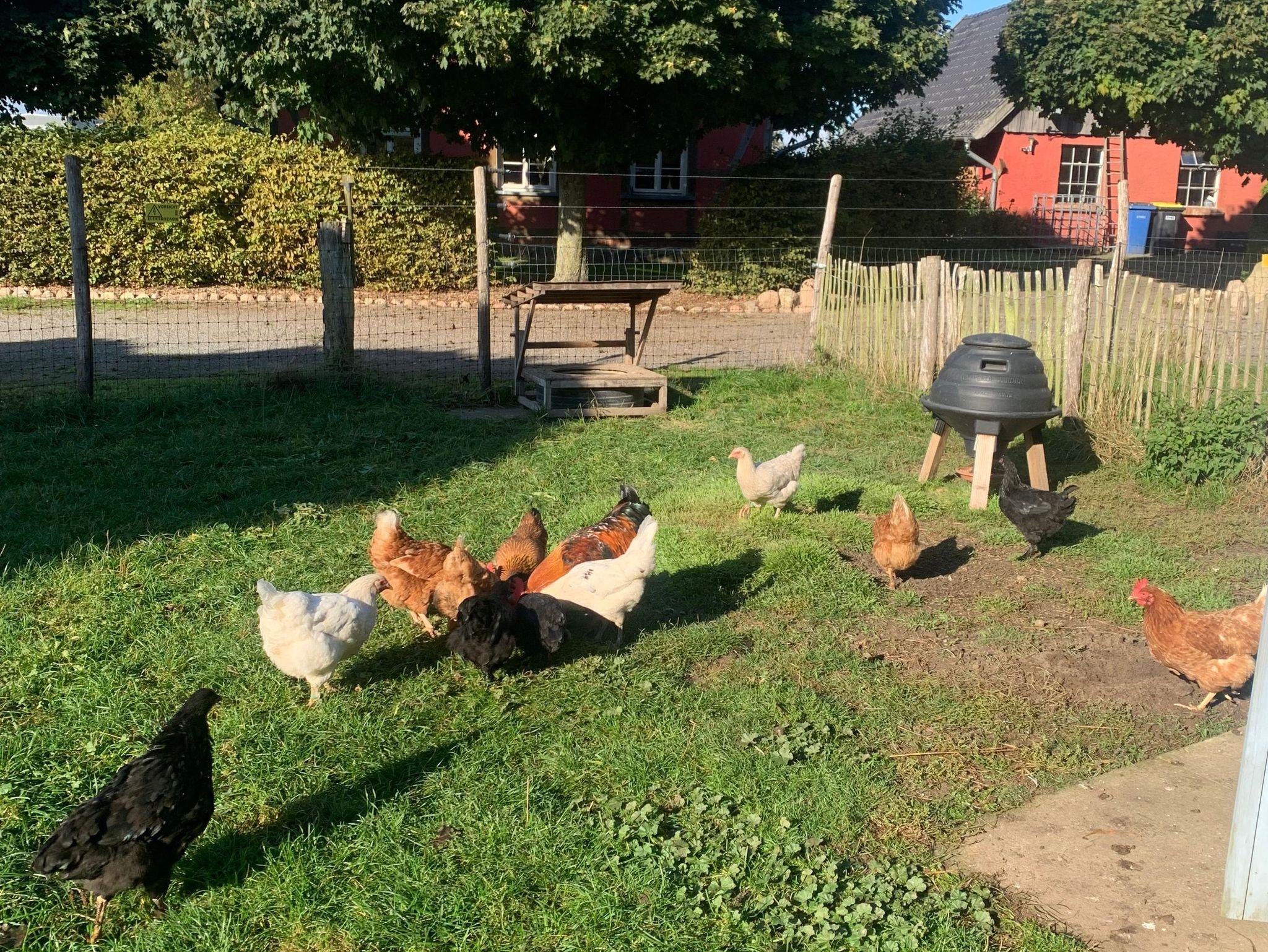 Im hinteren Bereich des Gartens gibt es eine kleine Spielecke, wir haben auch einen kleinen Streichelzoo mit Hühnern, niedlichen Kaninchen und dem Dackel Paule. Gern können wir Ihnen, je nach Vorrat, frische Eier zum Frühstück verkaufen.