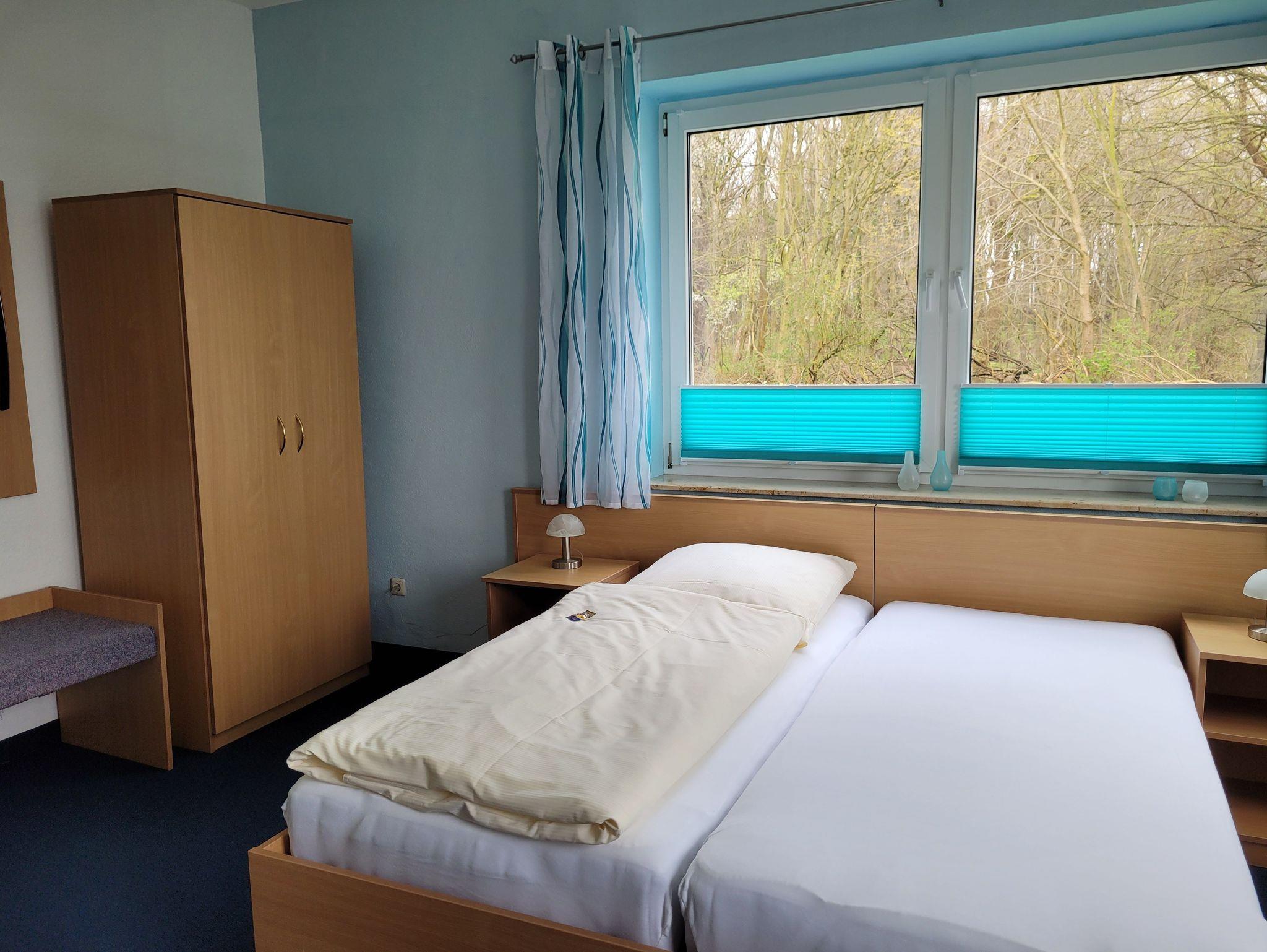 Unsere Doppelzimmer Seeblick liegen ruhig im Erdgeschoss und bieten einen wunderschönen Blick auf den Strelasund.