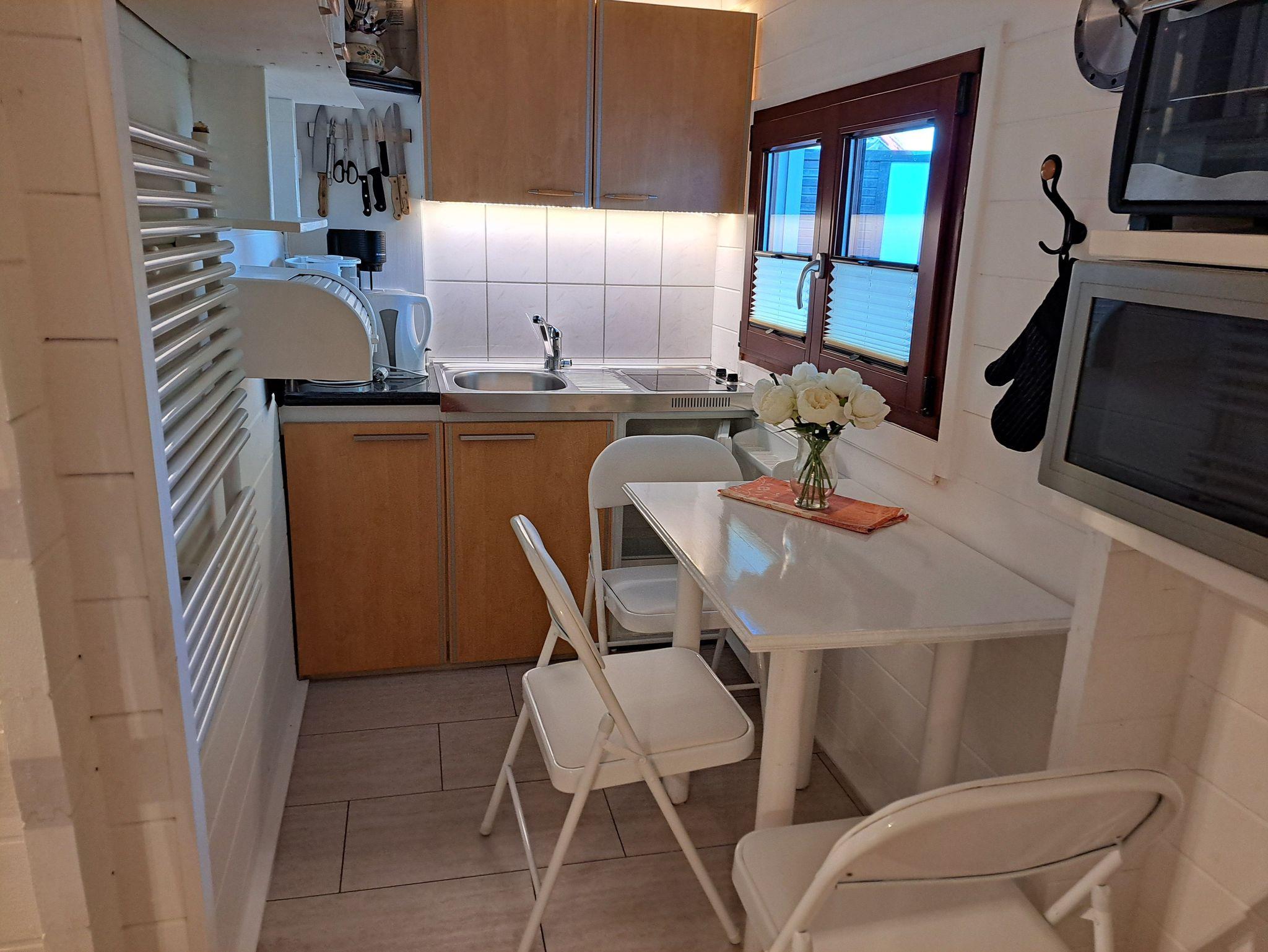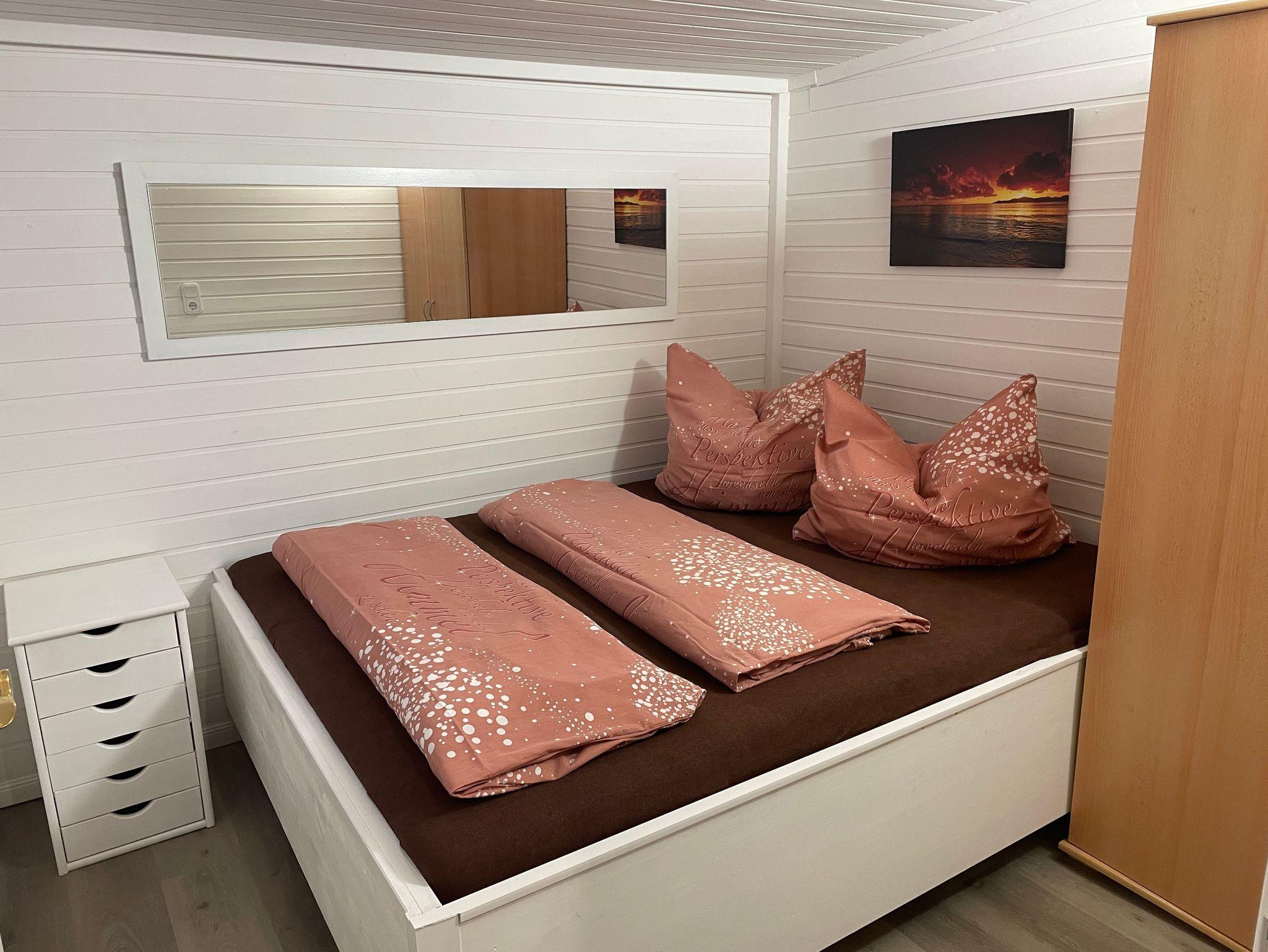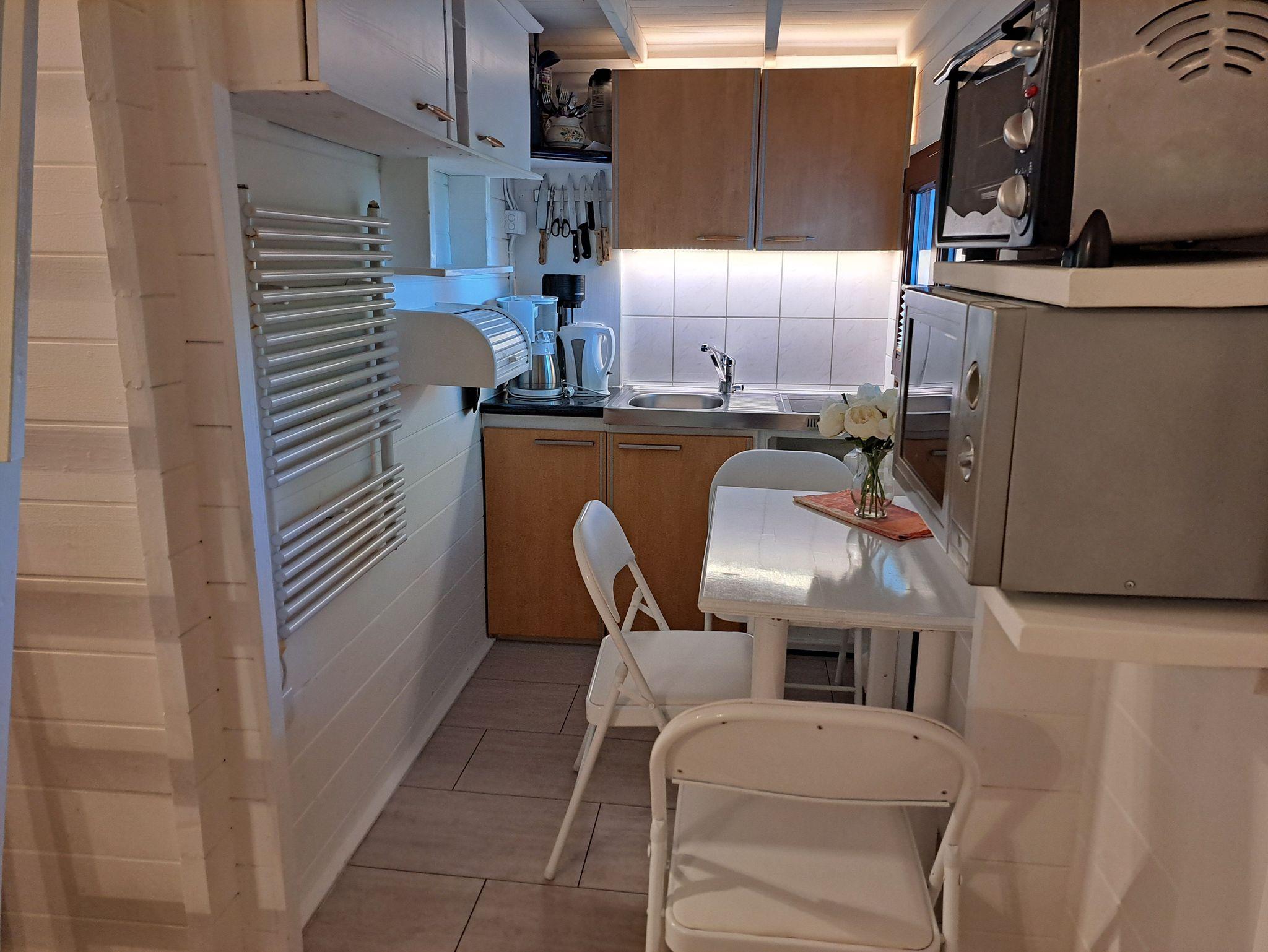 Die Besonderheit ist ein zusätzlicher offener Schlafboden (1,60m Liegefläche), der über eine stabile Leiter vom Wohnzimmer aus zu erreichen ist. Das Haus ist isoliert und gedämmt.