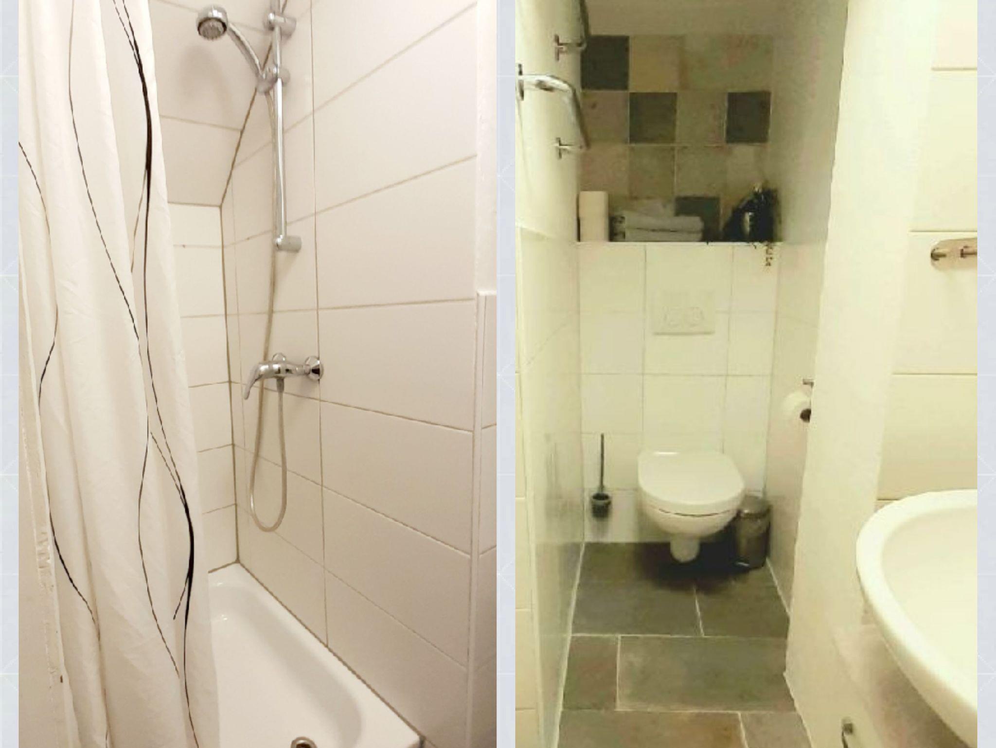 - Duschbad: innenliegend, gefliest, Dusche, Waschbecken und WC