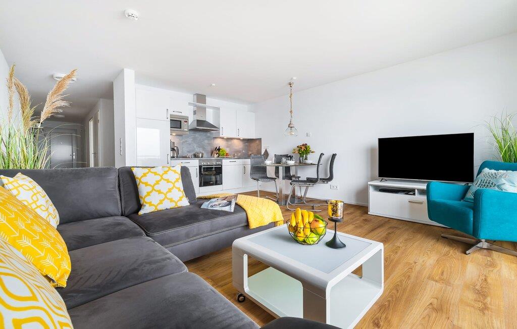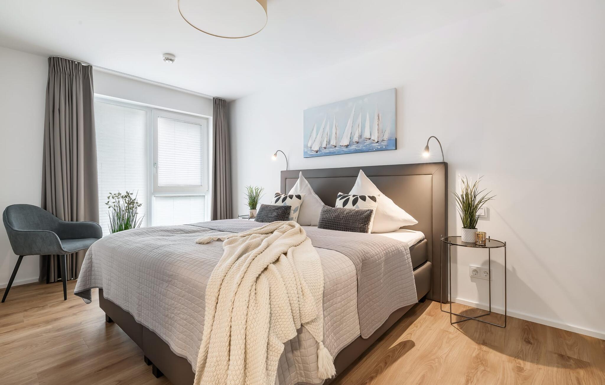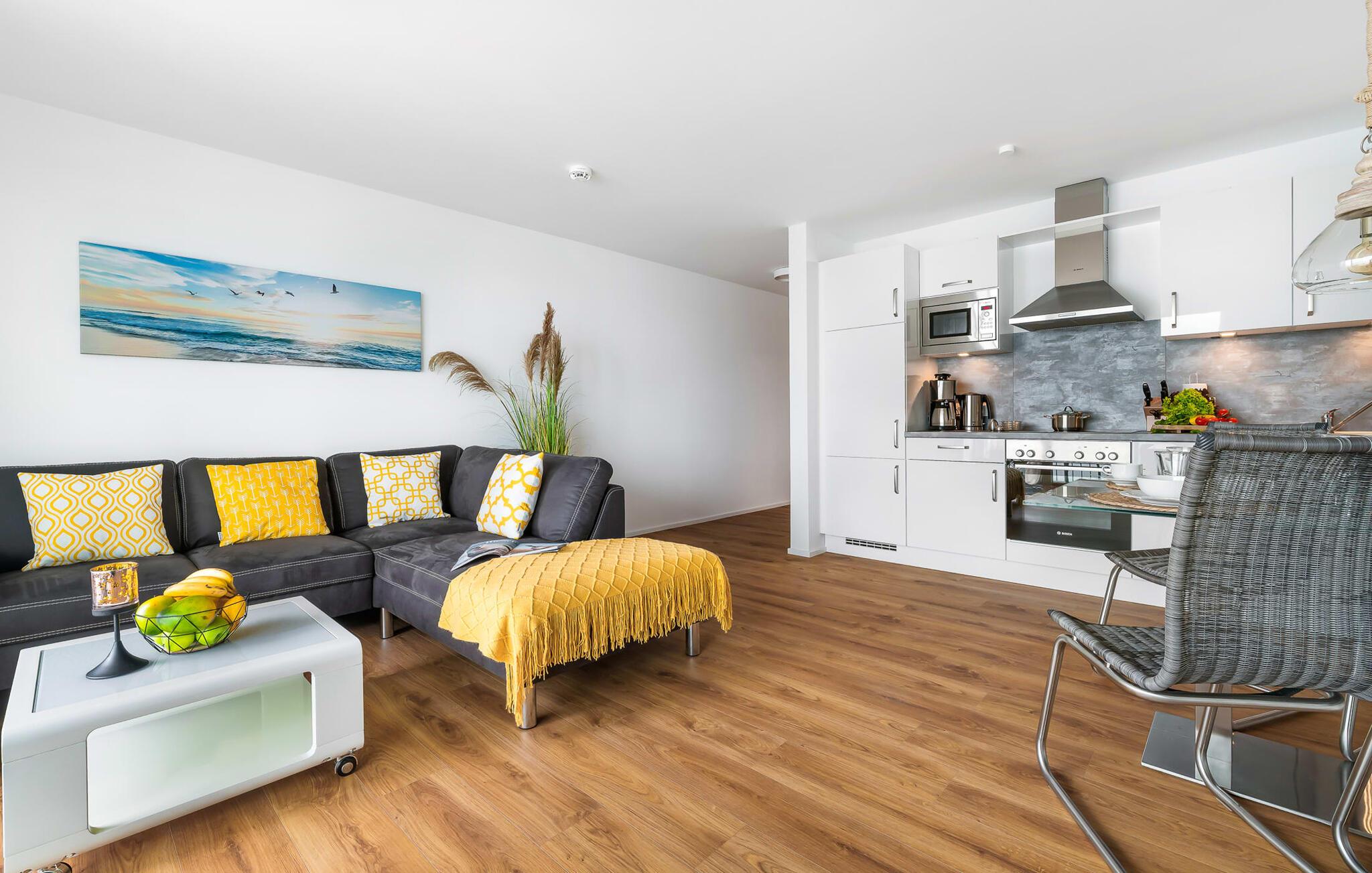 At se solen stå op er altid et helt særligt naturskue og en rigtig oplevelse. At nyde solopgangen på jeres egen altan og se ud over sejlhavnen, Sleien og Østersøen på samme tid er endnu bedre! SUNRISE tilbyder jer præcis det! Centralt, men alligevel roligt beliggende, ligger SUNRISE på første sal direkte på den populære havnepromenade med sine små, individuelle butikker og et EDEKA-marked, der er uden sidestykke. Weidefelder-stranden og minigolfbanen med maritimt tema ligger i umiddelbar nærhed og byder på sjov og variation for alle. Den lyse og åbne stue-spisestue med integreret tekøkken i SUNRISE emmer af en hjemlig atmosfære, og den feriefølelse sætter ind i det første øjeblik, I ankommer. Det klare udsyn fra gulv-til-loft vinduerne og fra den tilstødende altan falder på den farverige travlhed i sejl- og lystbådehavnen og hverdagen er glemt! Feriebiograf i frisk luft, hvor har I den fra? Ønsker I alligevel et andet program, er der fjernsyn i opholdsstuen. Det moderne køkken lader intet tilbage at ønske, og det er sjovt at lave mad sammen. Også her vil I blive ledsaget af udsigten over havnen og vandet. Det store soveværelse er udstyret med endnu et fjernsyn. I finder en dobbeltseng og to enkeltsenge i hvert værelse. Der er også masser af skabsplads. Så I har to fulde soveværelser til jeres rådighed. Bruserummet med brusekabine har alt hvad I behøver for at starte en vellykket dag på Østersøen. SUNRISE pakken inkluderer også en parkeringsplads foran huset og en elevator, der bringer jer komfortabelt til jeres ferieparadis. Vores foretrukne sted: at nyde en solid morgenmad på balkonen og hilse på den opgående sol... Bemærk venligst: OstseeResort Olpenitz er meget populært, og der bygges fortsat i parken. Ikke desto mindre kan I se frem til en 5-stjernet standard og et førsteklasses ophold. Byggeaktiviteterne kommer ikke til at forstyrre jer på ferien, og derfor gives der ikke yderligere afslag i prisen.